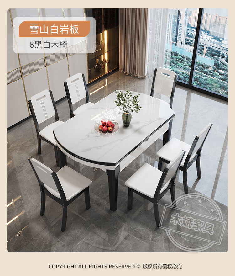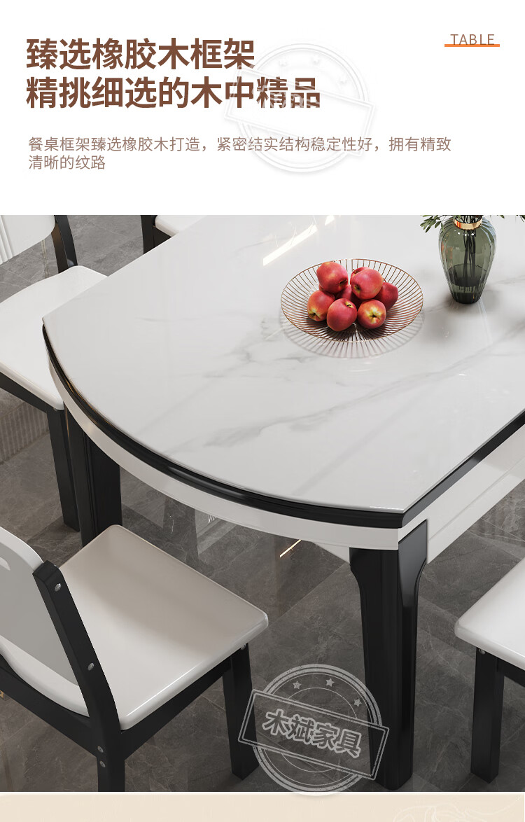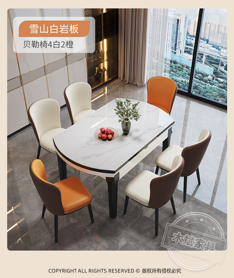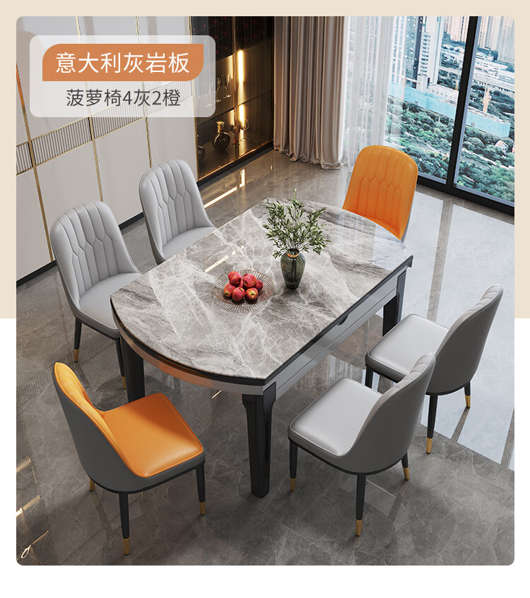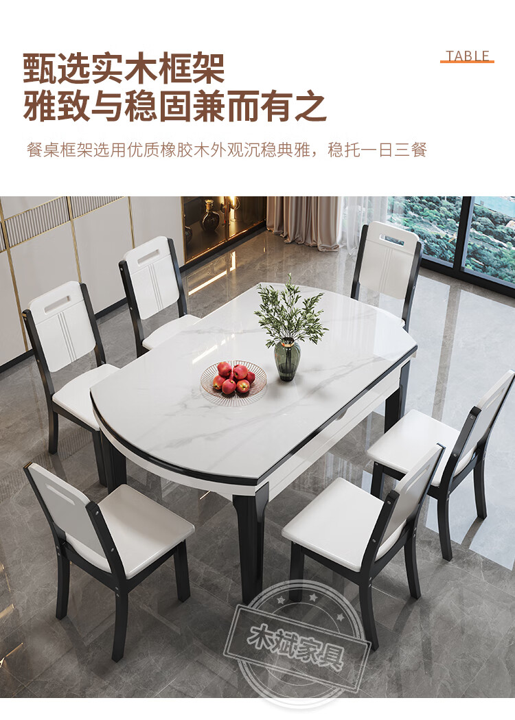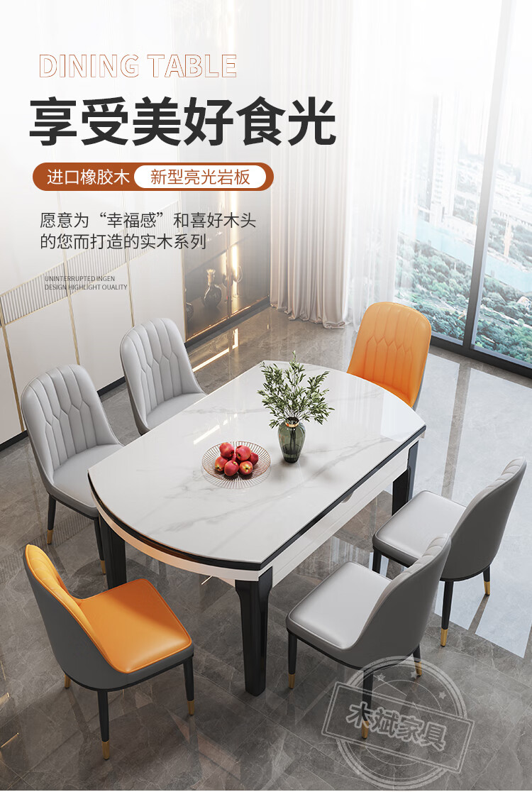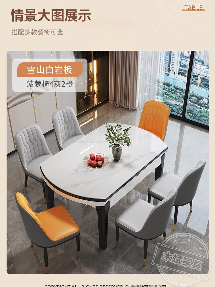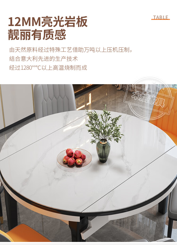 木斌岩板餐桌椅子全套轻奢现代简约家用小户型伸缩可折叠饭桌可变圆桌 【12MM岩板】 1桌6菠萝椅 (全国联保) 1.2米