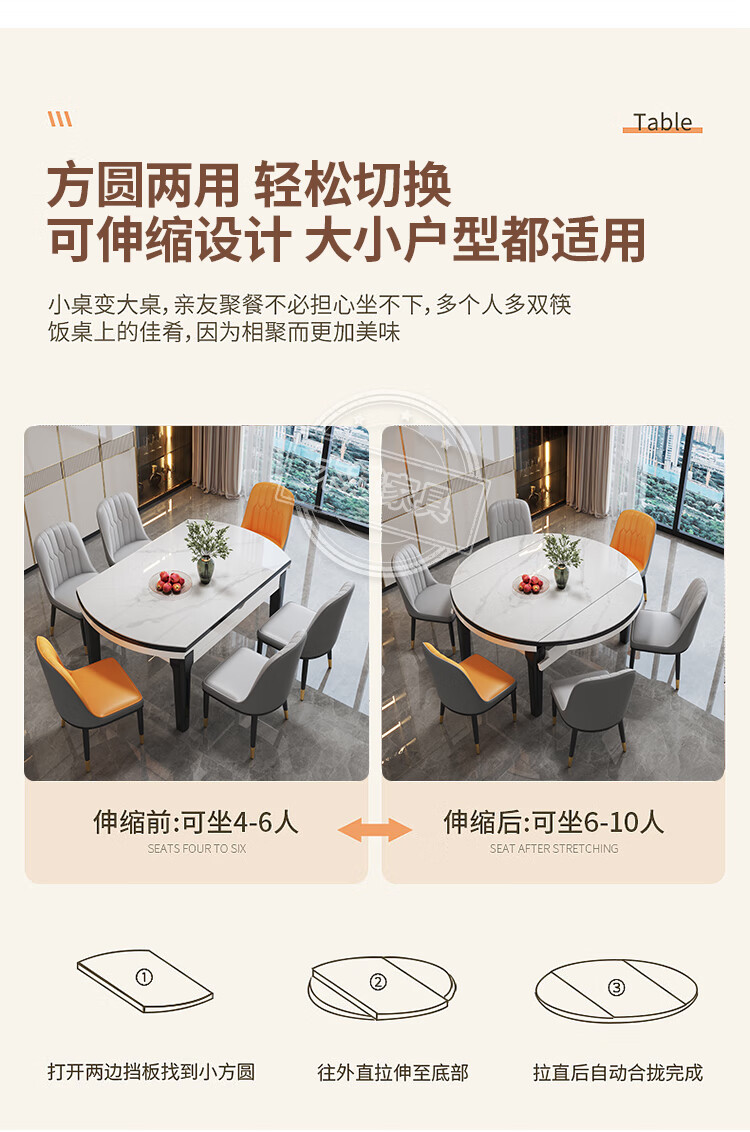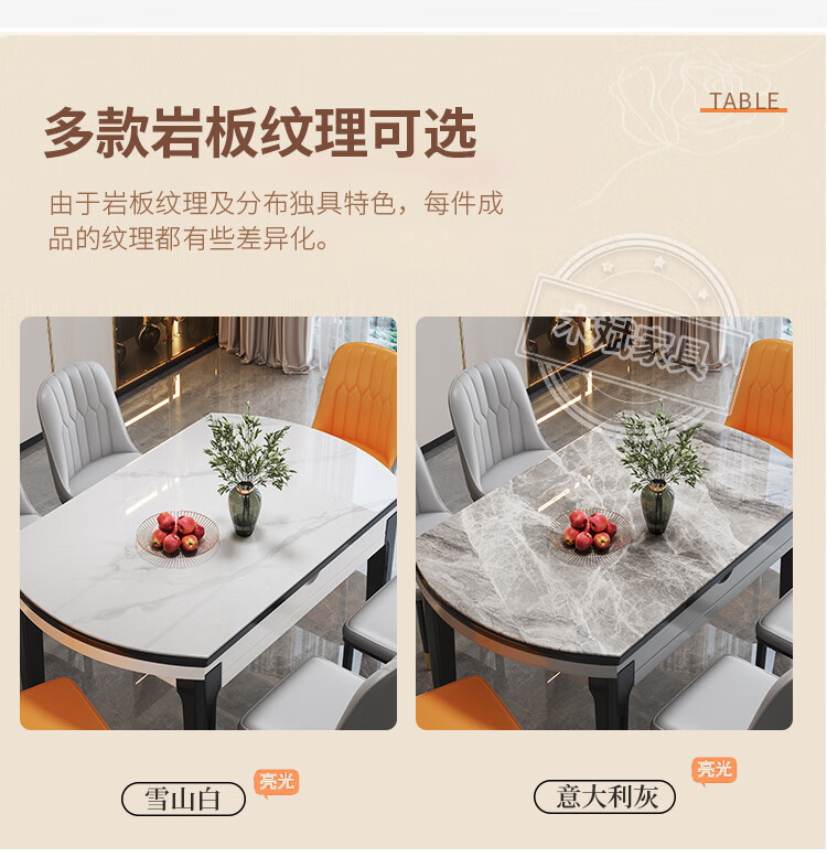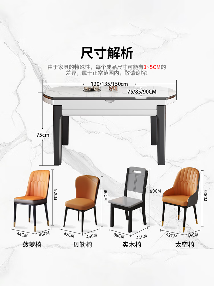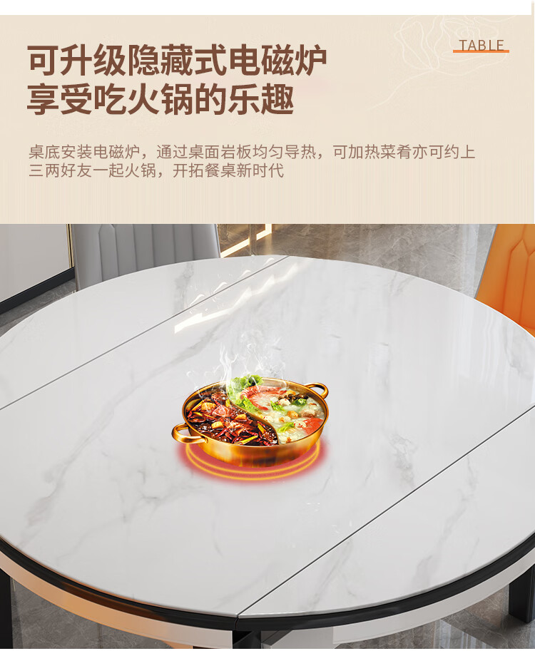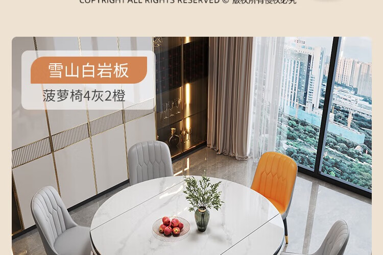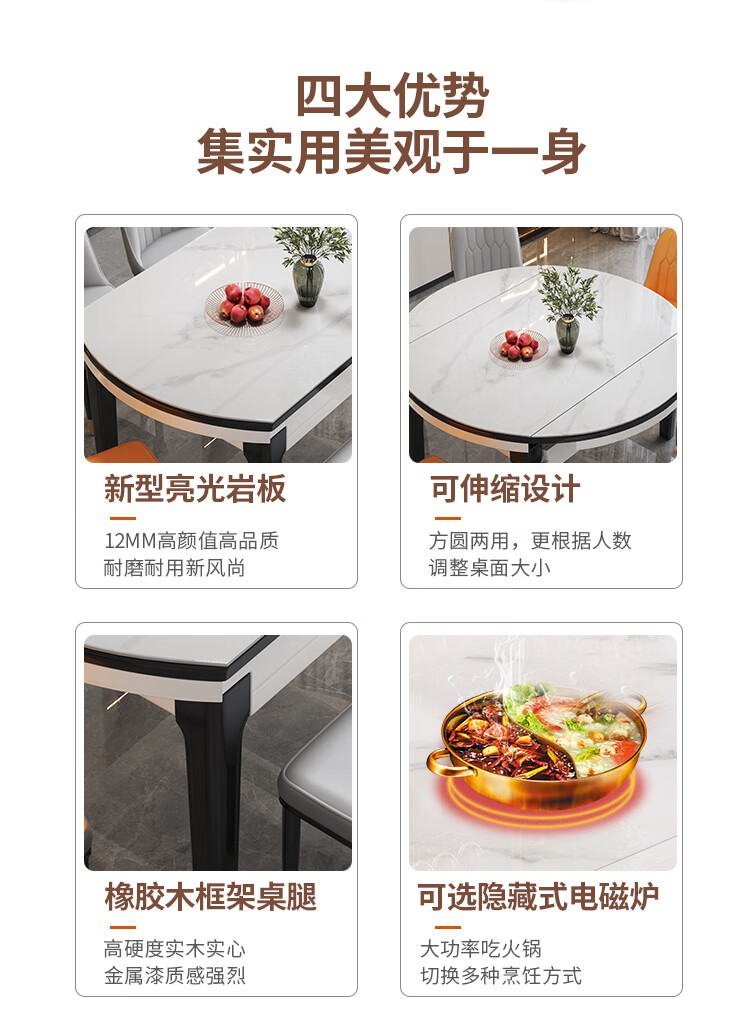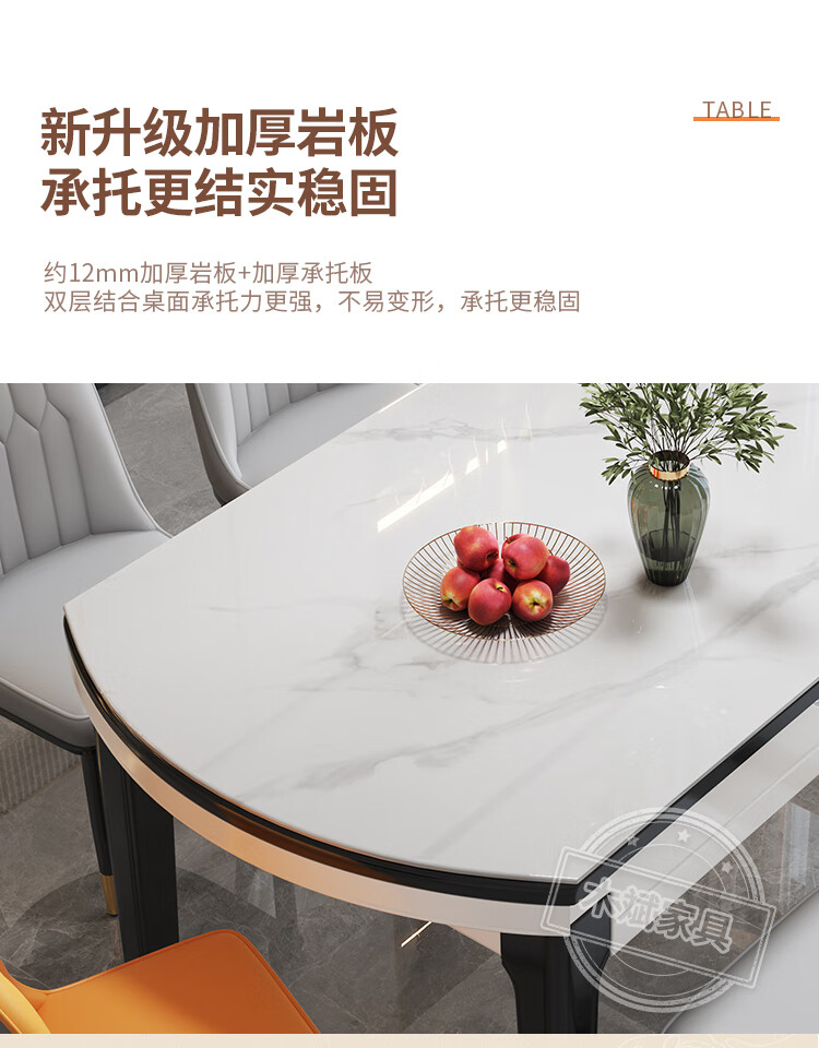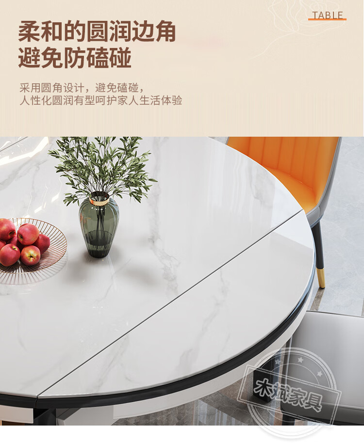 木斌岩板餐桌椅子全套轻奢现代简约家用小户型伸缩可折叠饭桌可变圆桌 【12MM岩板】 1桌6菠萝椅 (全国联保) 1.2米