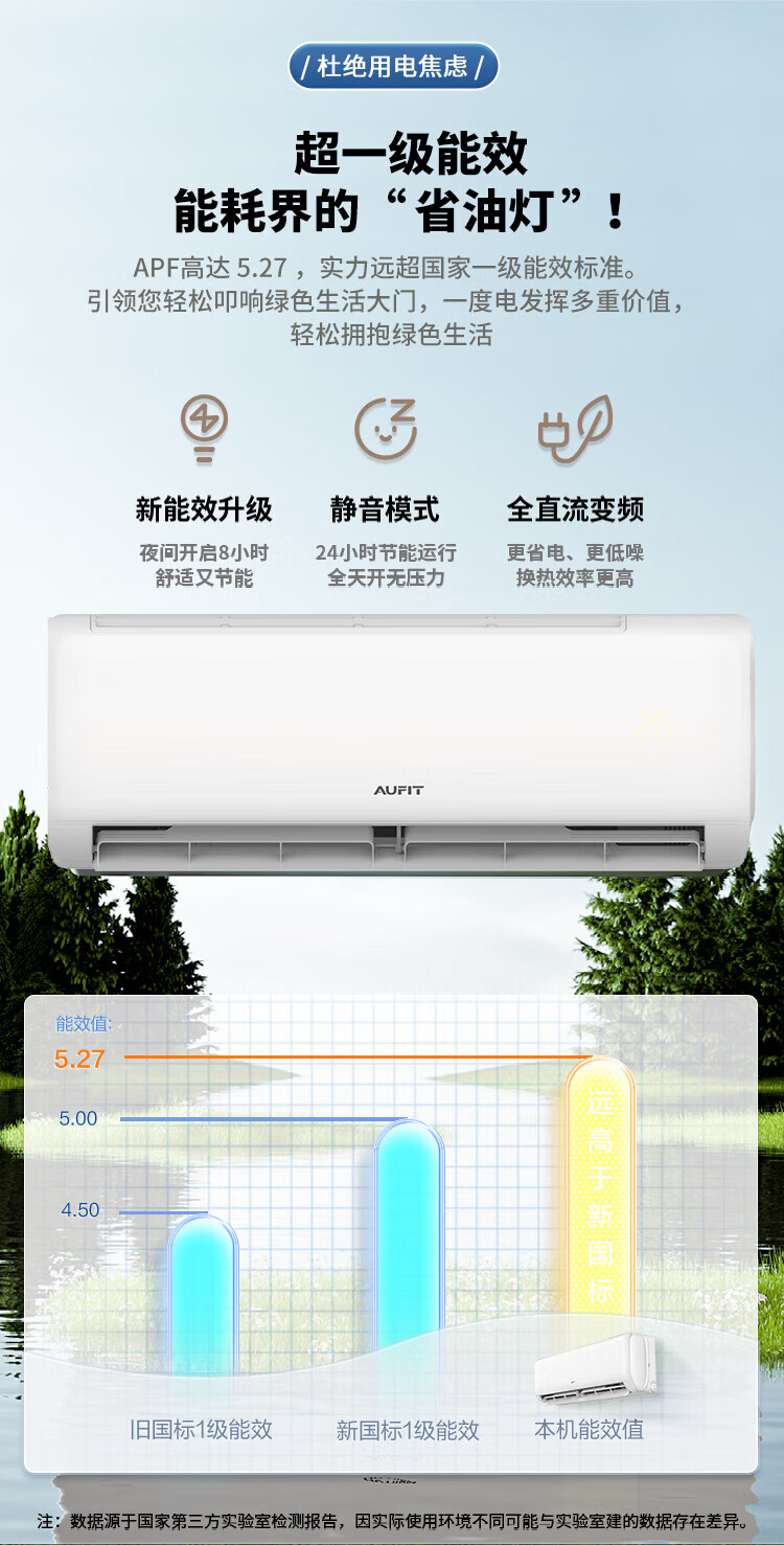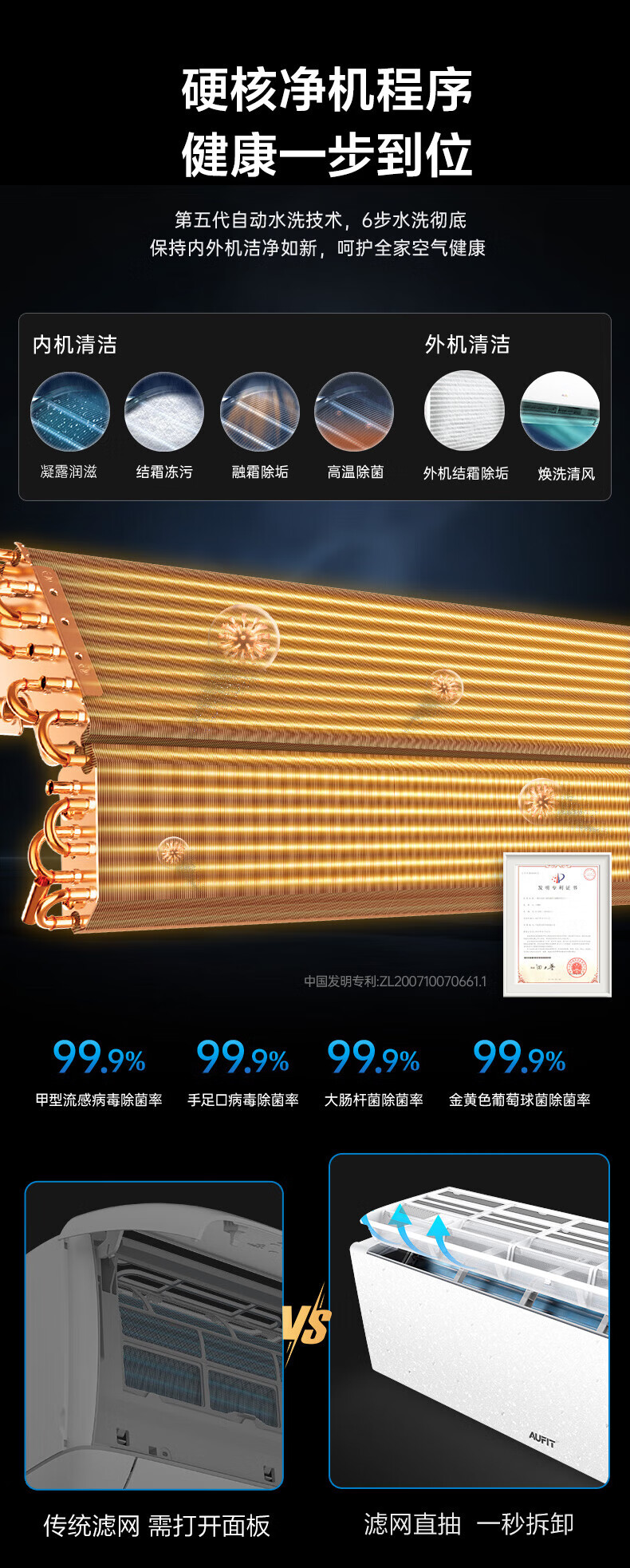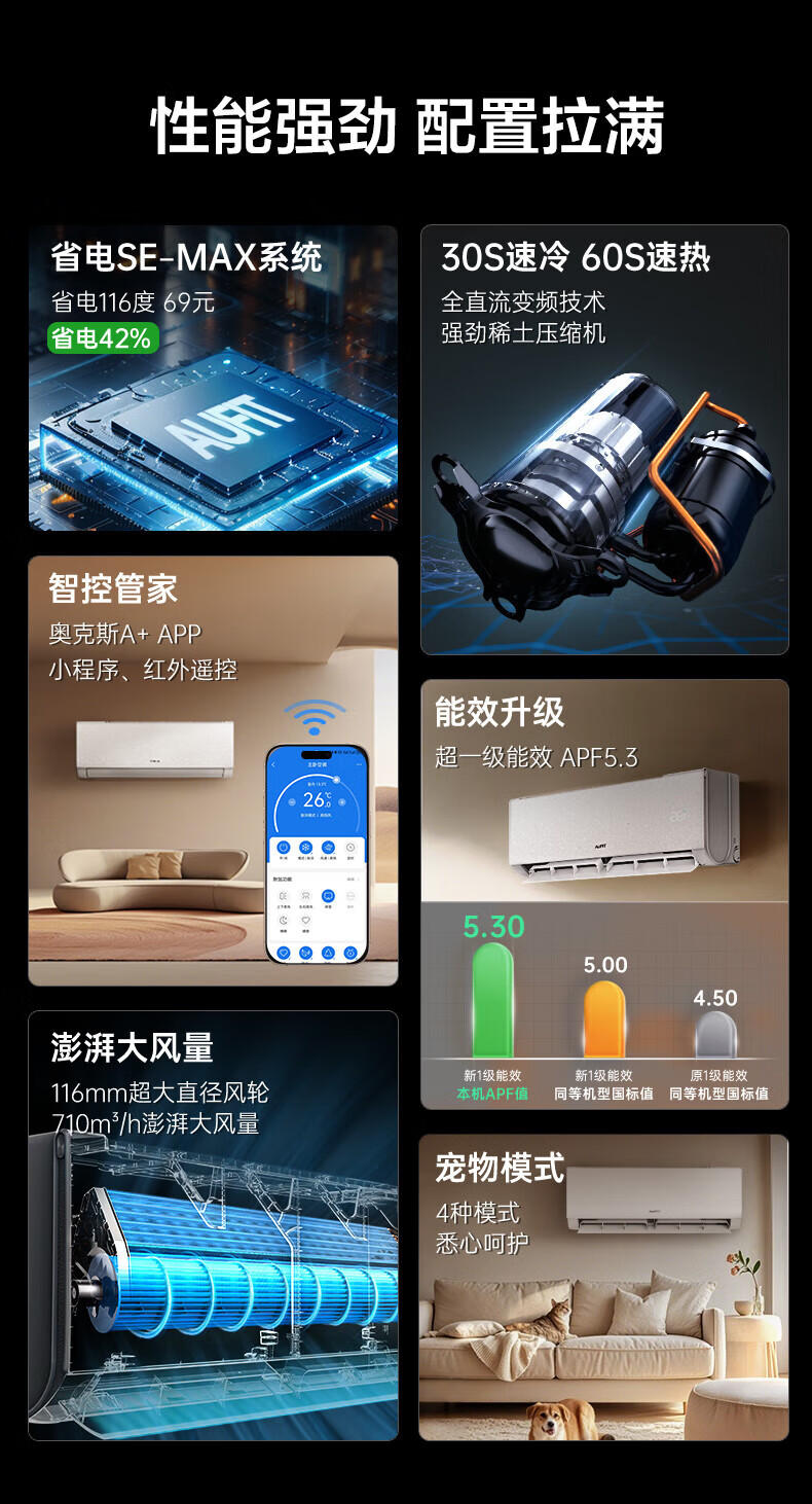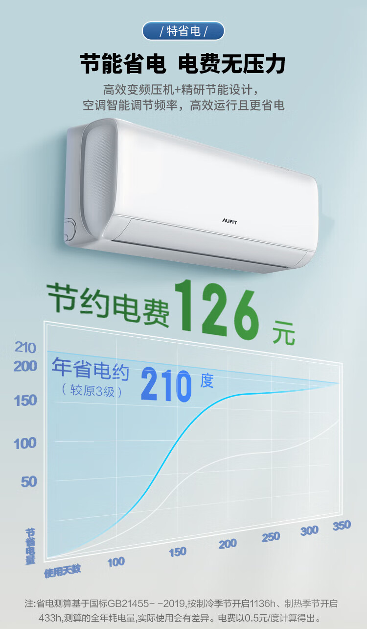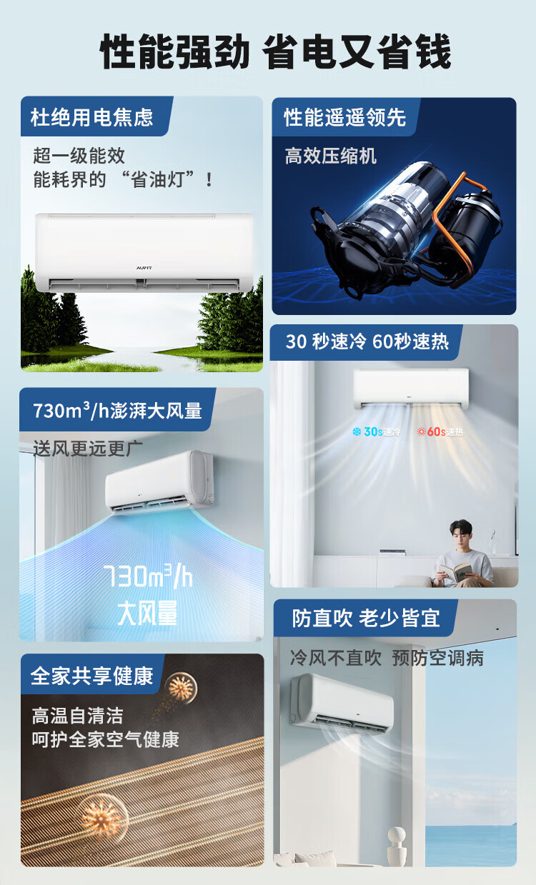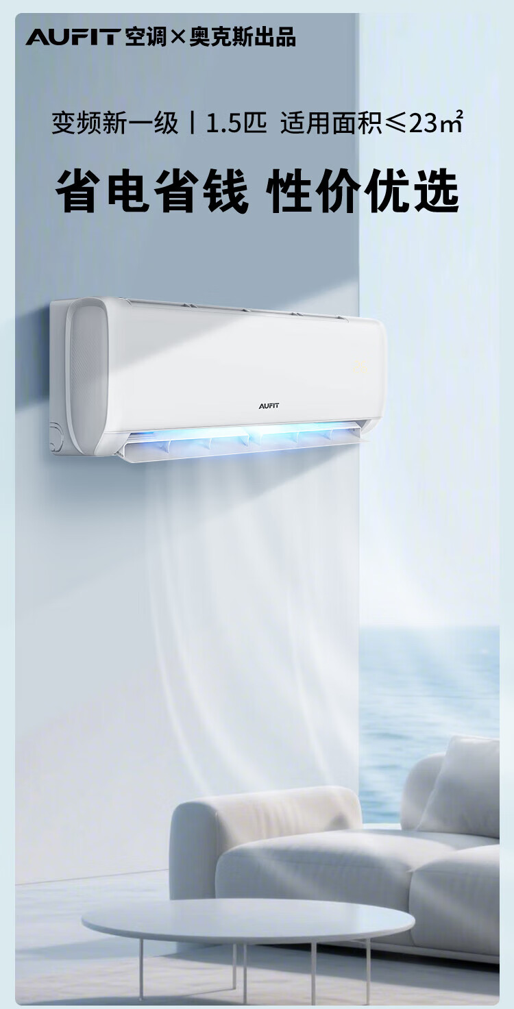 AUFIT空调奥克斯(AUX)出品1匹/大1.5匹/2匹家用新一级变频冷暖省电WIFI挂机自清洁以旧换新家电补贴 大1.5匹 一级能效【基础款】新一级变频