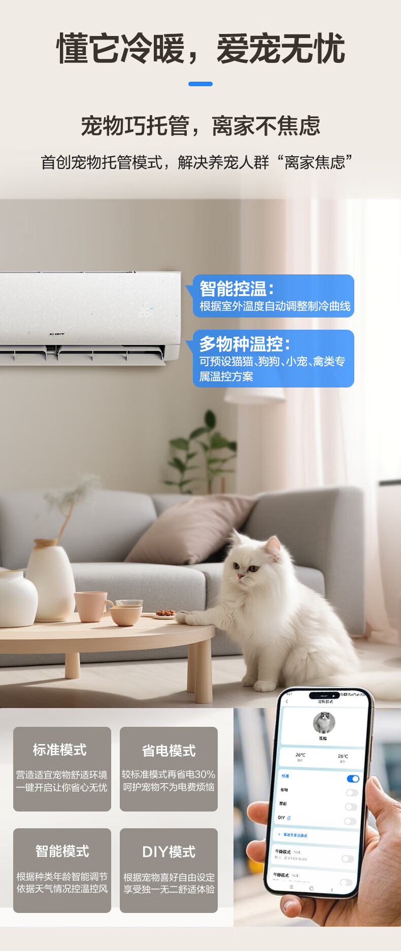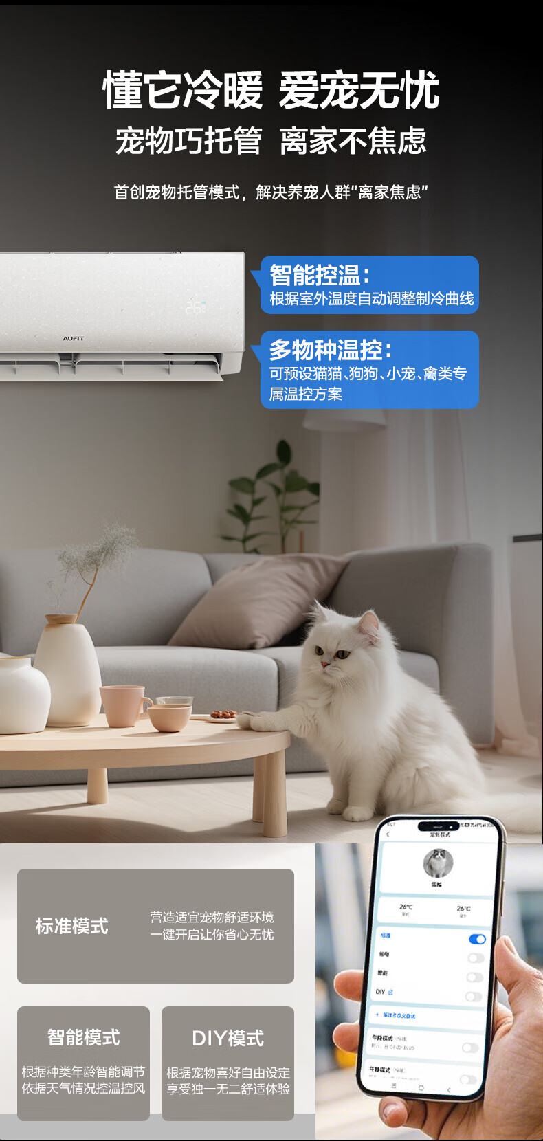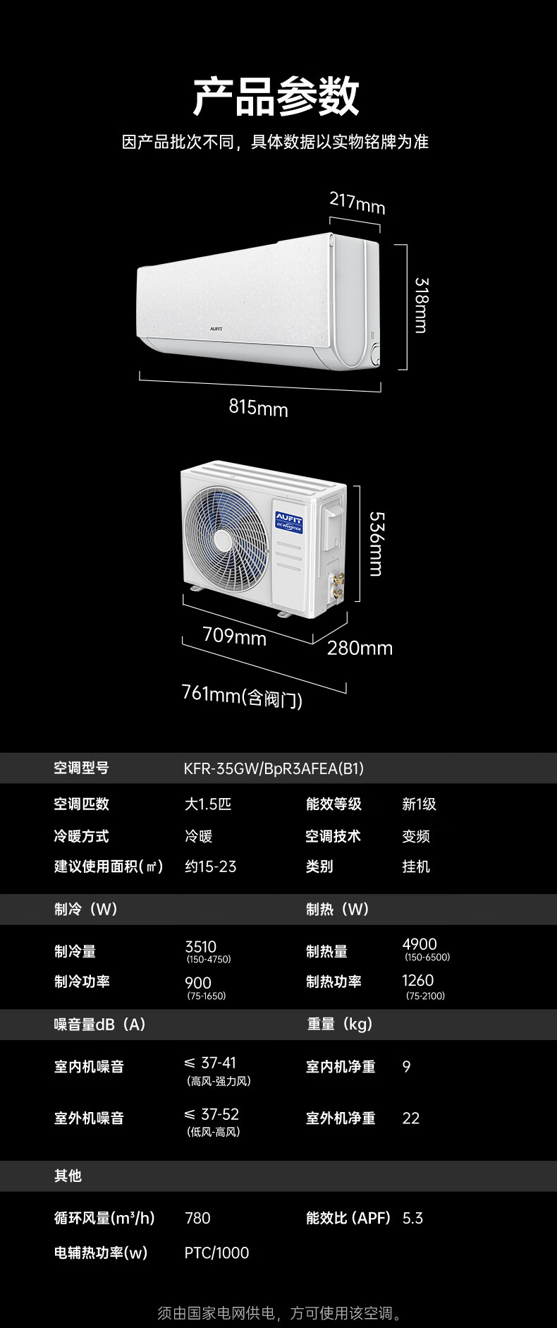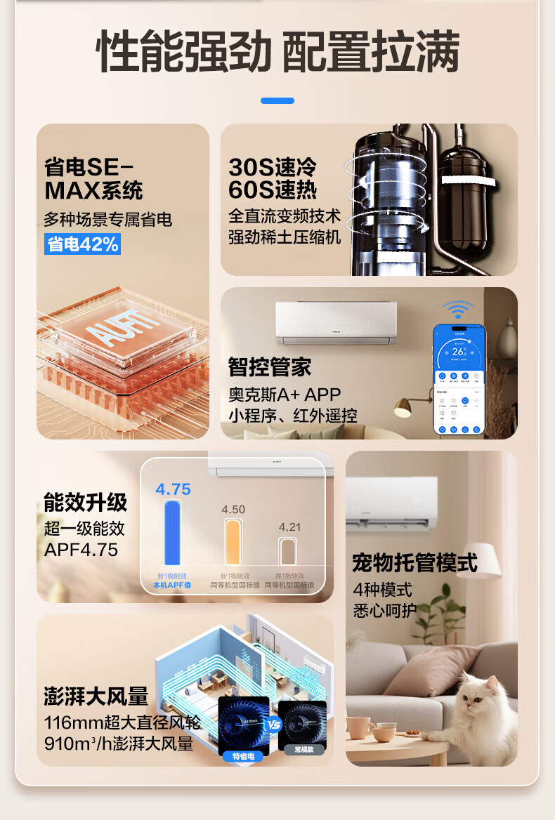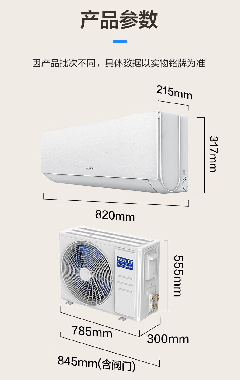 AUFIT空调奥克斯(AUX)出品1匹/大1.5匹/2匹家用新一级变频冷暖省电WIFI挂机自清洁以旧换新家电补贴 大1.5匹 一级能效【基础款】新一级变频