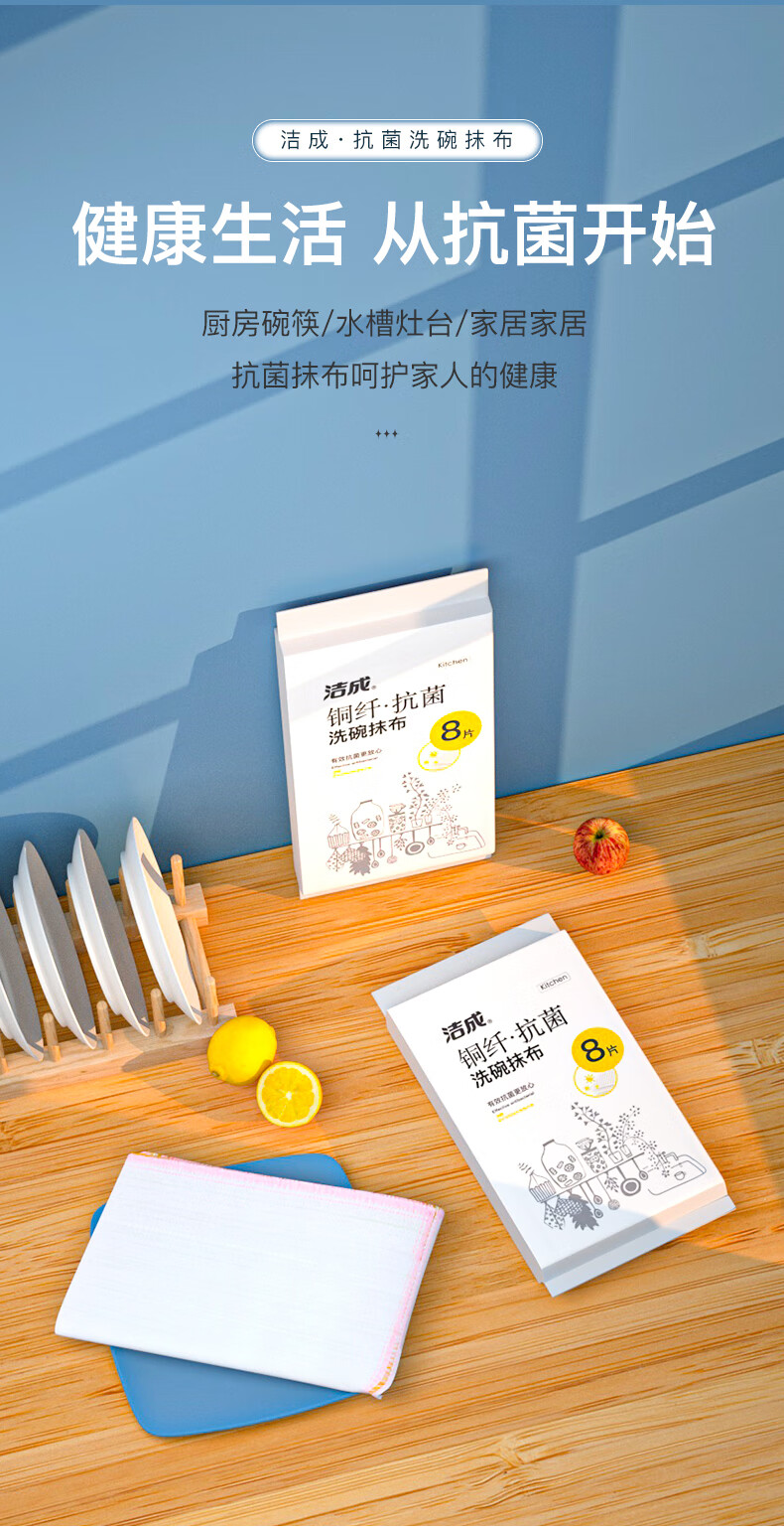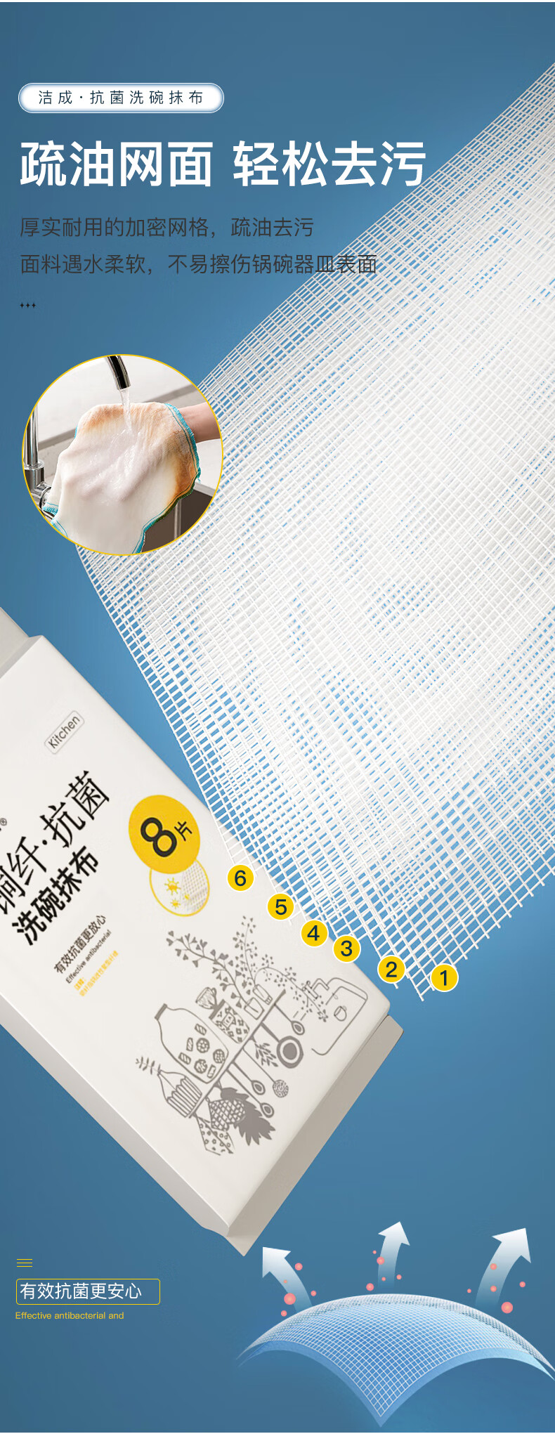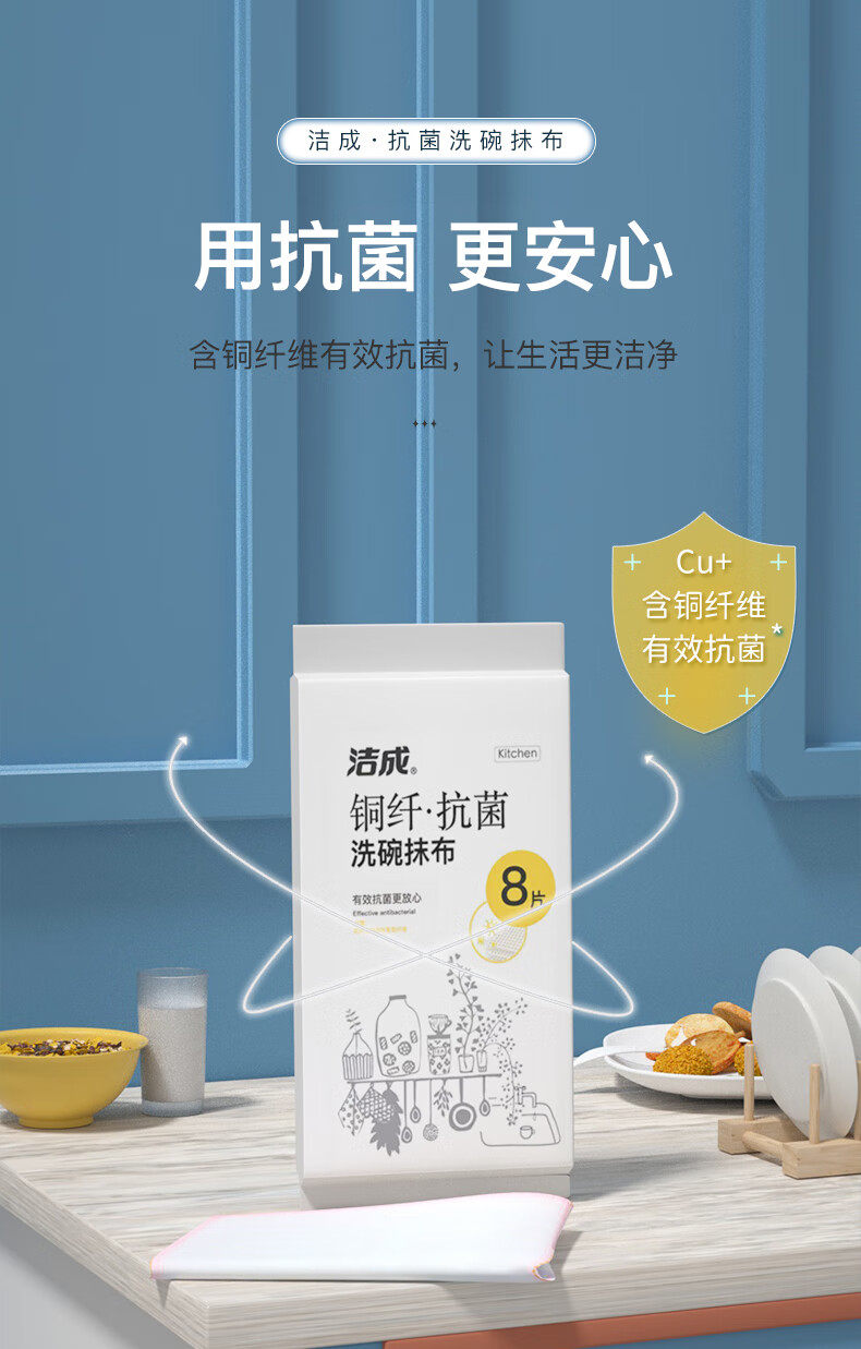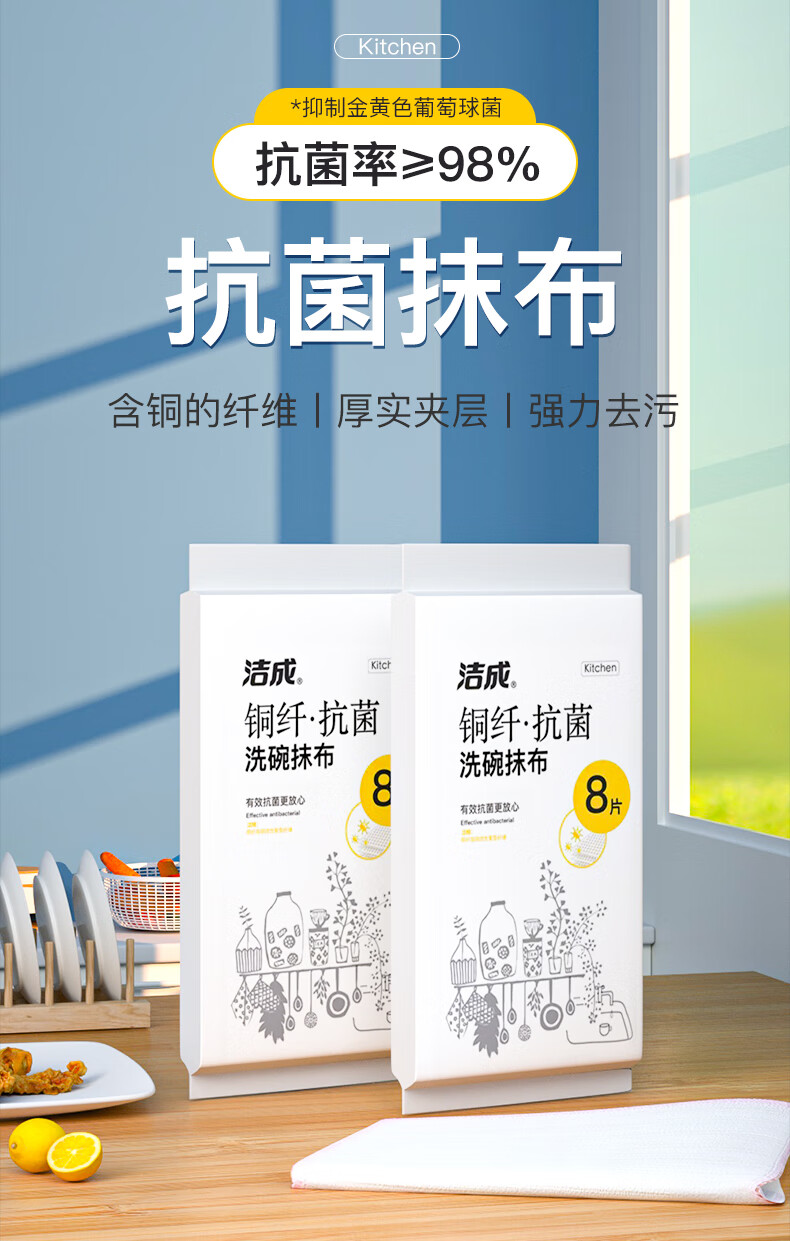 洁成抗菌抹布加厚洗碗布百洁布厨房清洁吸水不易掉毛 抗菌抹布8片装【30cm*30cm】