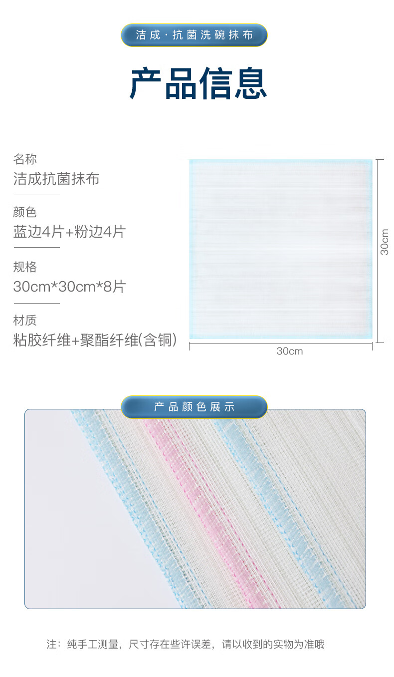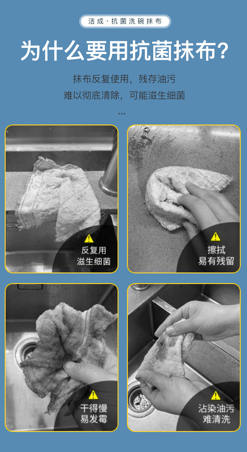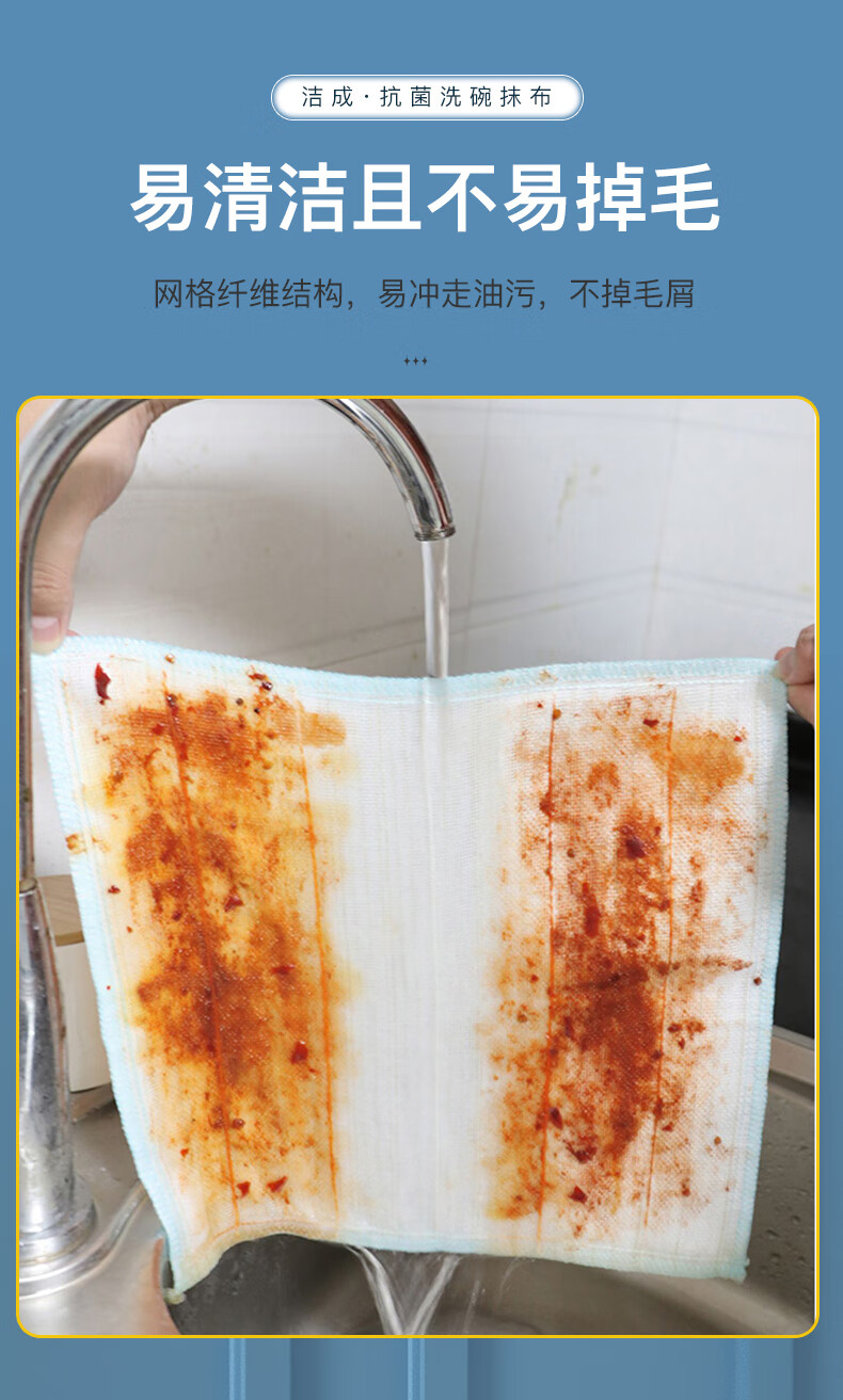 洁成抗菌抹布加厚洗碗布百洁布厨房清洁吸水不易掉毛 抗菌抹布8片装【30cm*30cm】