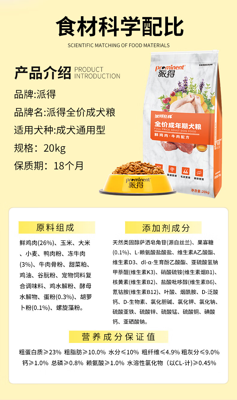 派得狗粮 金毛40拉布拉多阿拉斯加马犬萨摩耶德牧 中大型犬通用粮 牛肉味丨成犬狗粮40斤丨送狗粮2斤