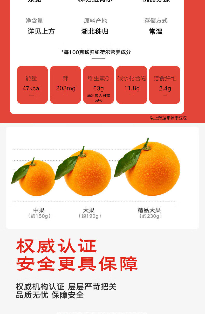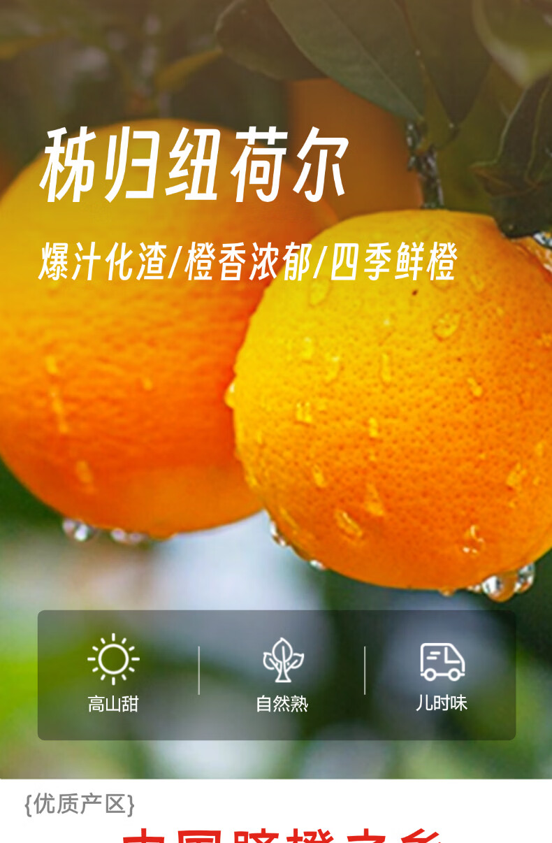 京觅秭归脐橙纽荷尔橙子净重7斤霸王橙单果230g+新鲜水果源头直发包邮