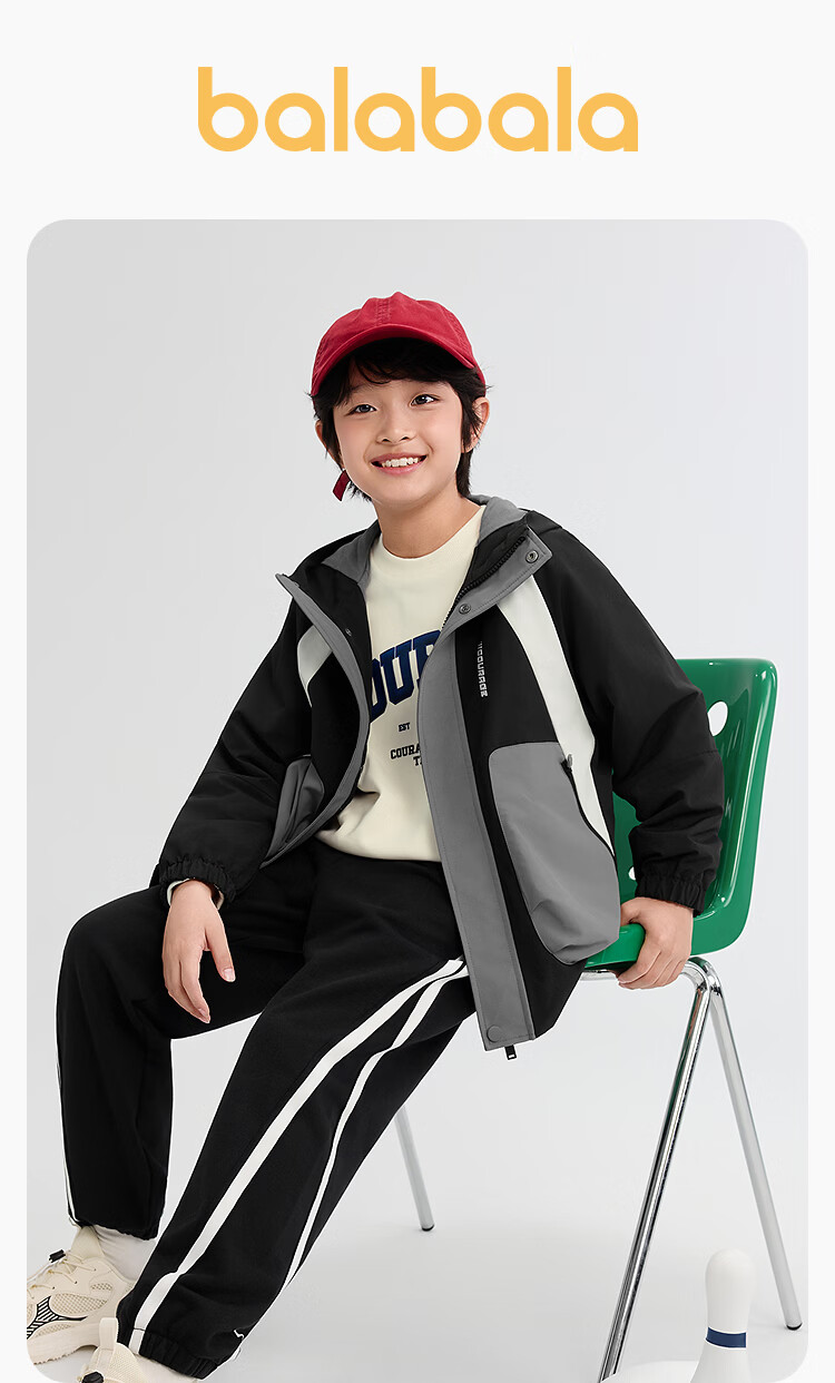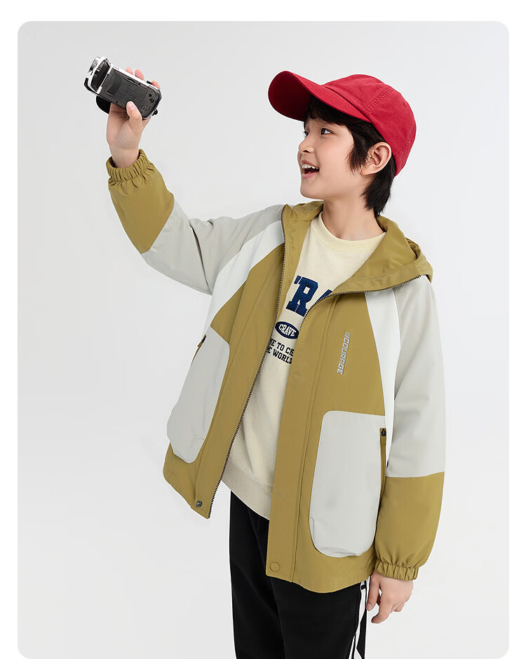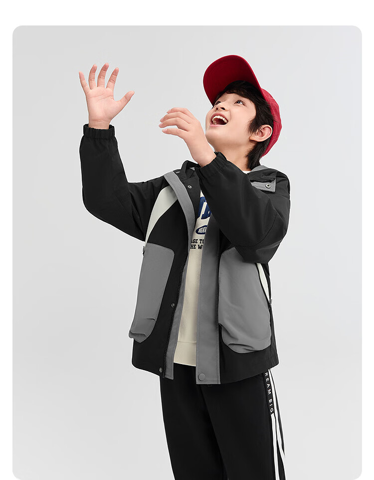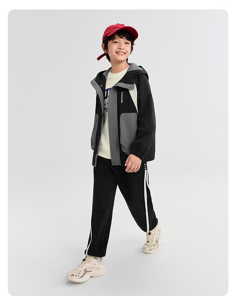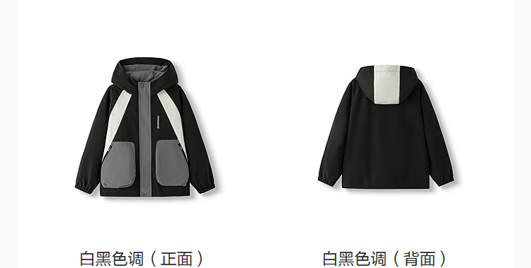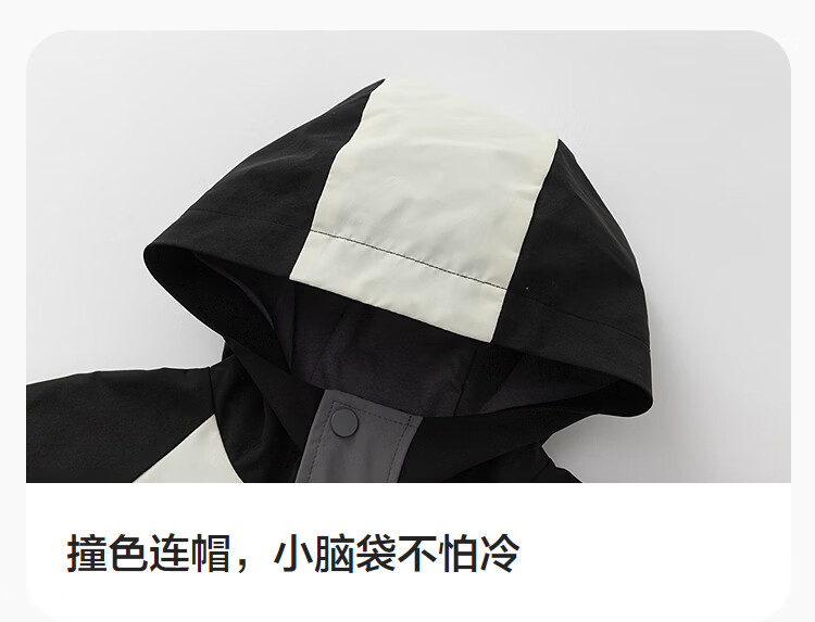 巴拉巴拉童装男童外套儿童上衣2026新款春秋装工装风衣撞色防风防泼水衣服 白黑色调00319 130