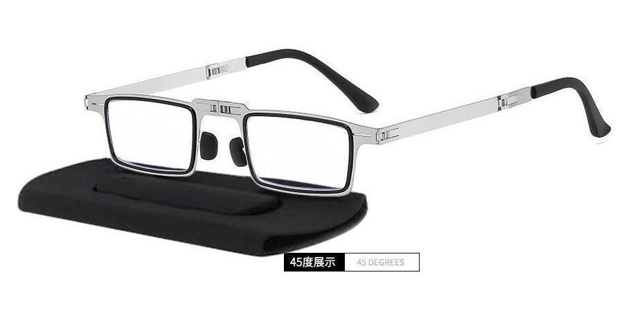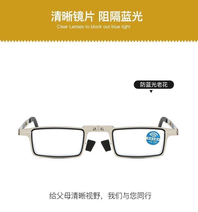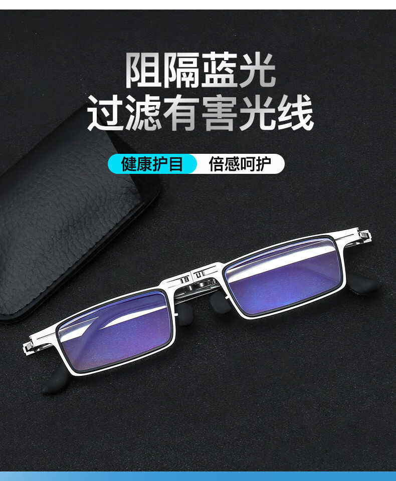 明雪菀绮 便携老花眼镜金属高清折叠老花镜男纸片超轻眼镜无螺丝防蓝光 老花镜200度(55-59岁) 经典黑【防蓝光】+两种镜盒