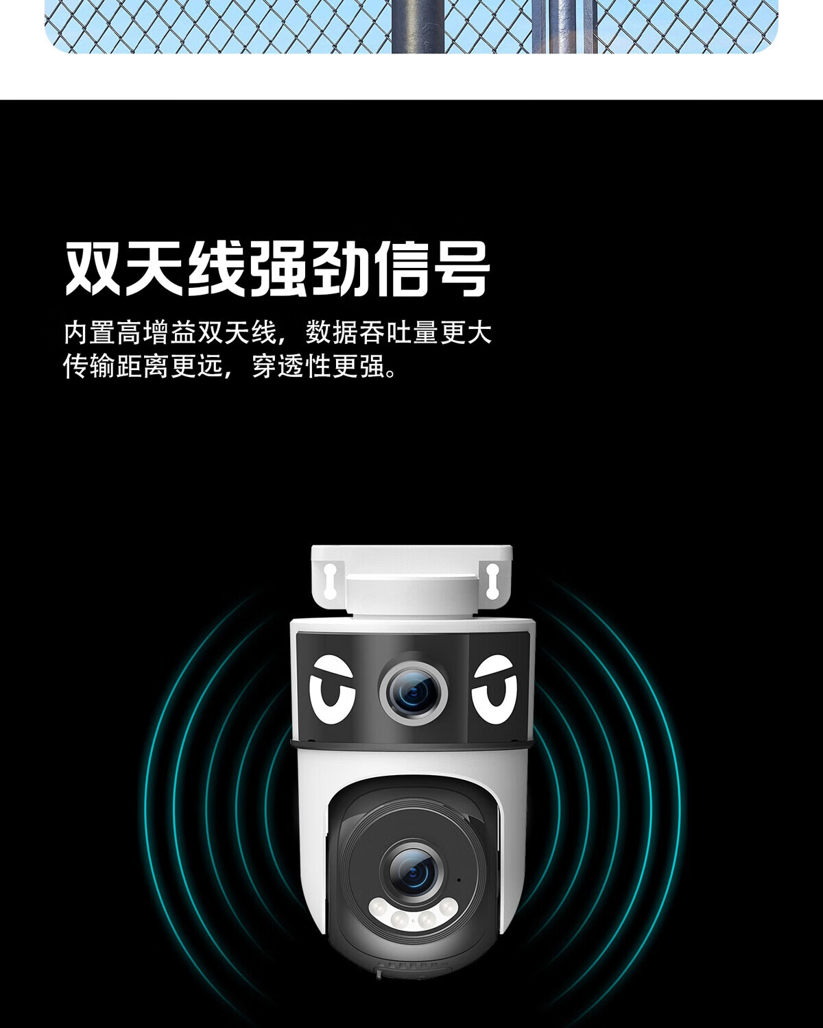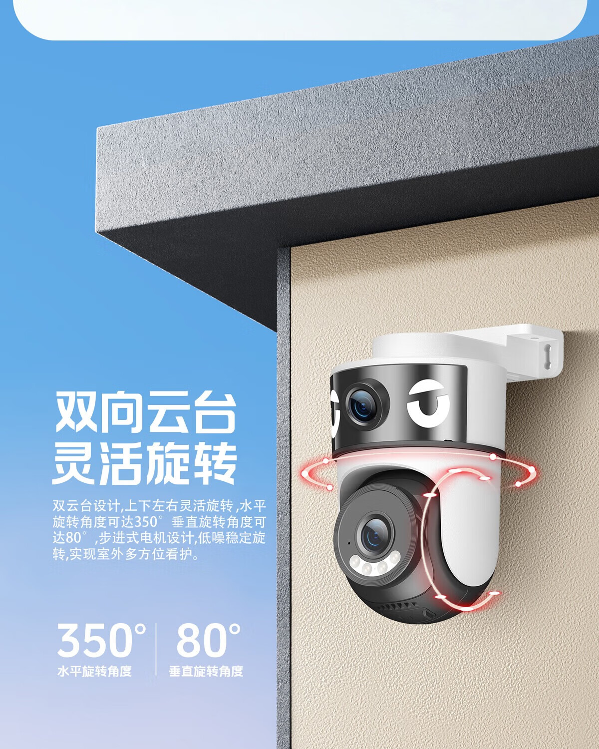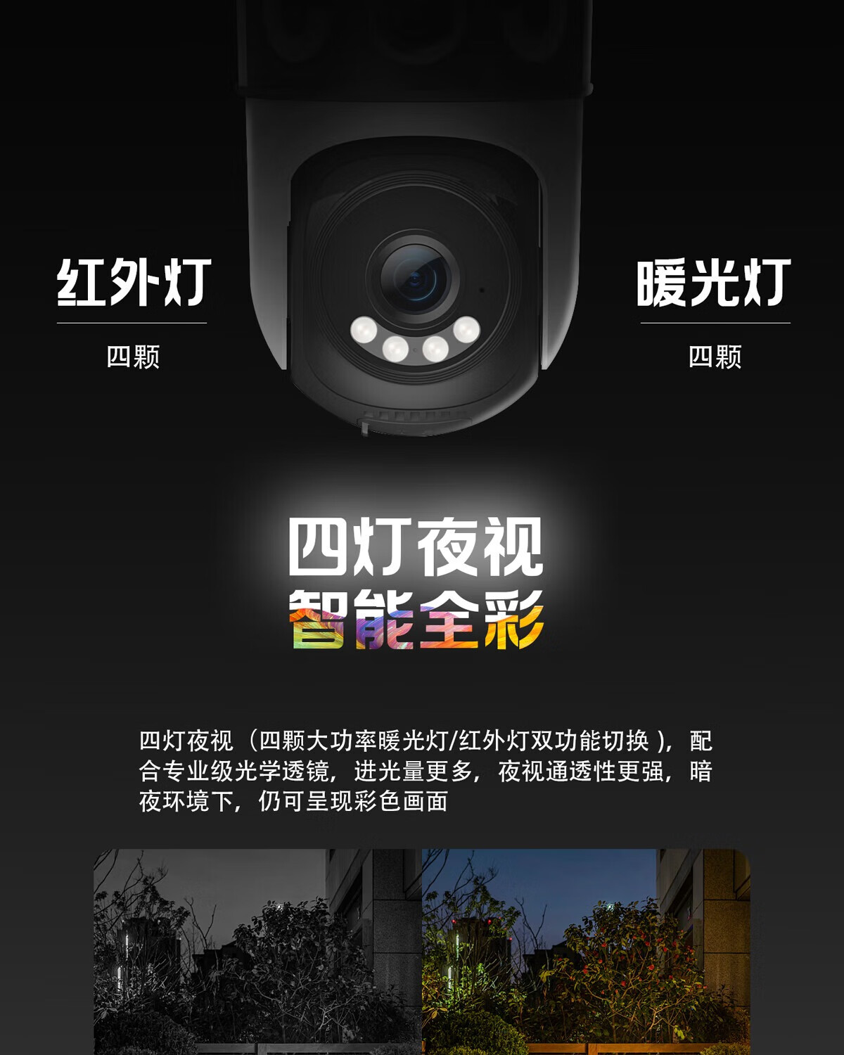 洛小嘉4G终身免流量监控器摄像头全彩带夜视家用室内外农村360度无死角旋转全景手机看高清语音对讲防水 【双镜头4G终身免费流量】插电即用+30天循环录像