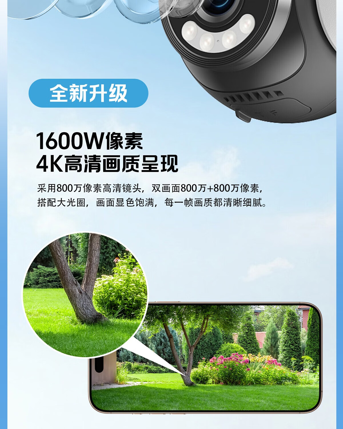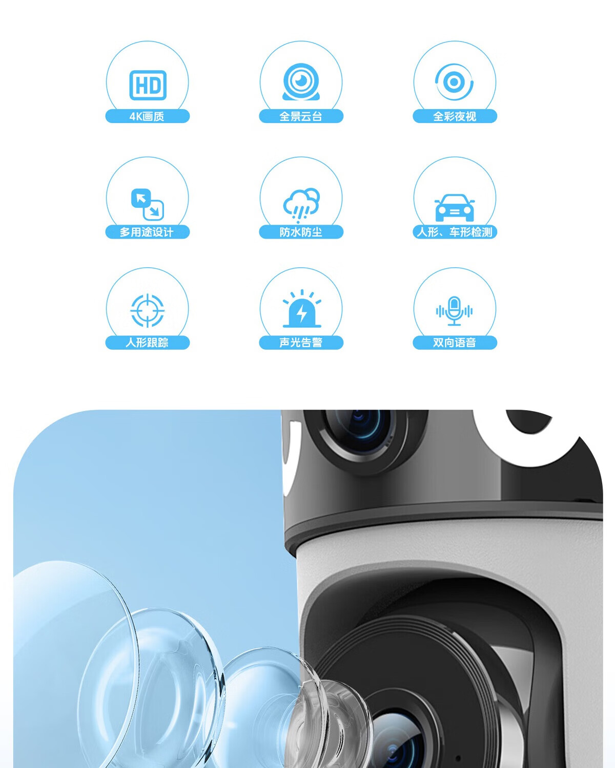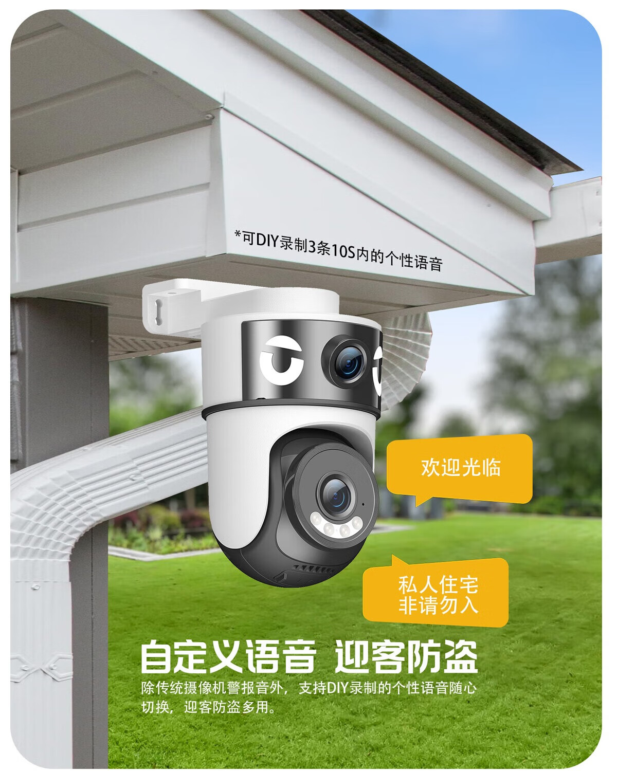 洛小嘉4G终身免流量监控器摄像头全彩带夜视家用室内外农村360度无死角旋转全景手机看高清语音对讲防水 【双镜头4G终身免费流量】插电即用+30天循环录像