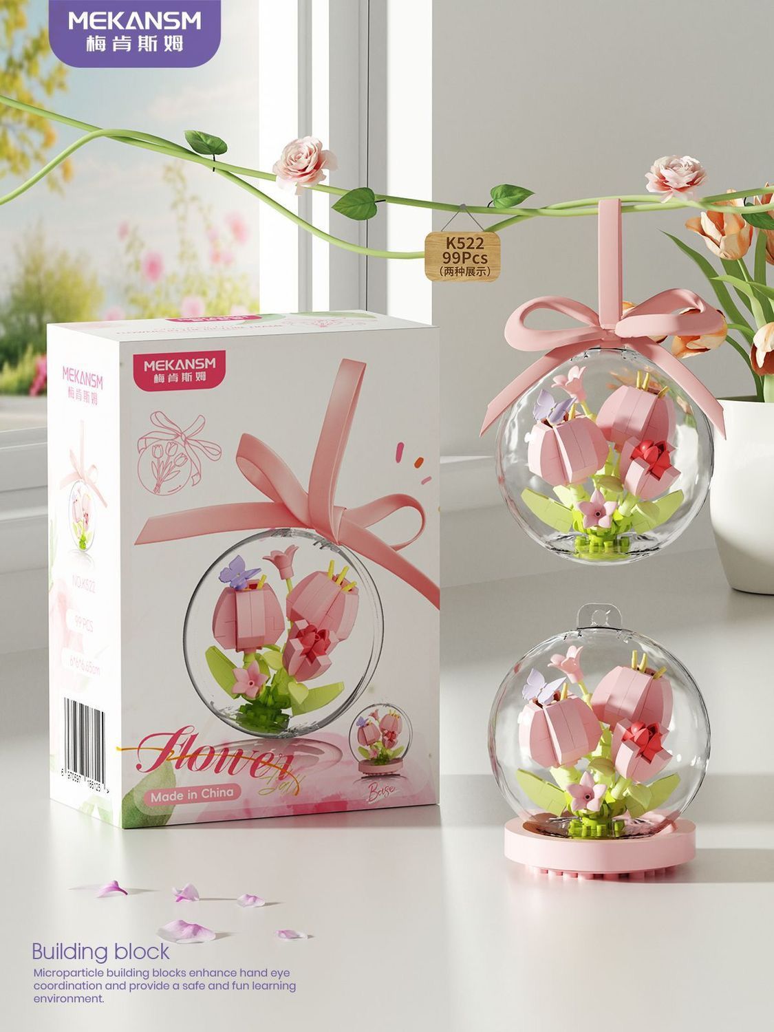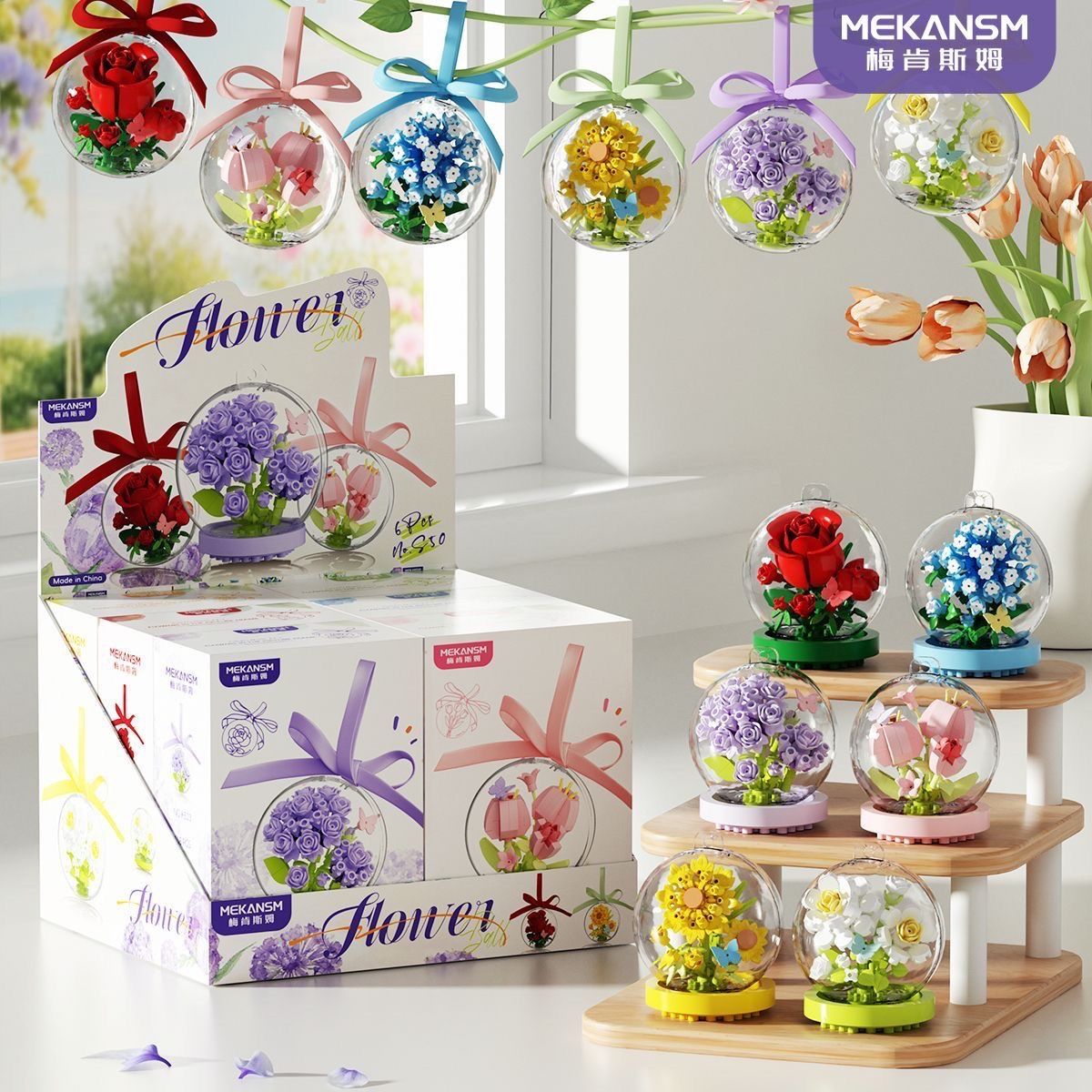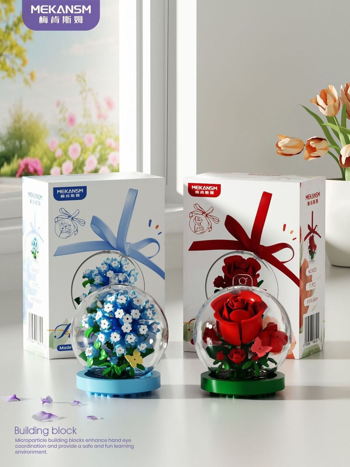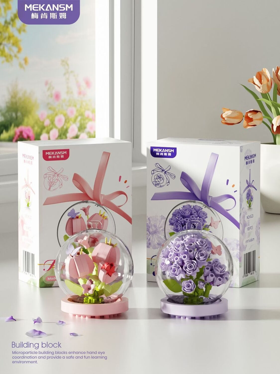 奇优宝永生花积木花束创意玩具 K525-星辰花愿-茉莉水晶球(两种展示)