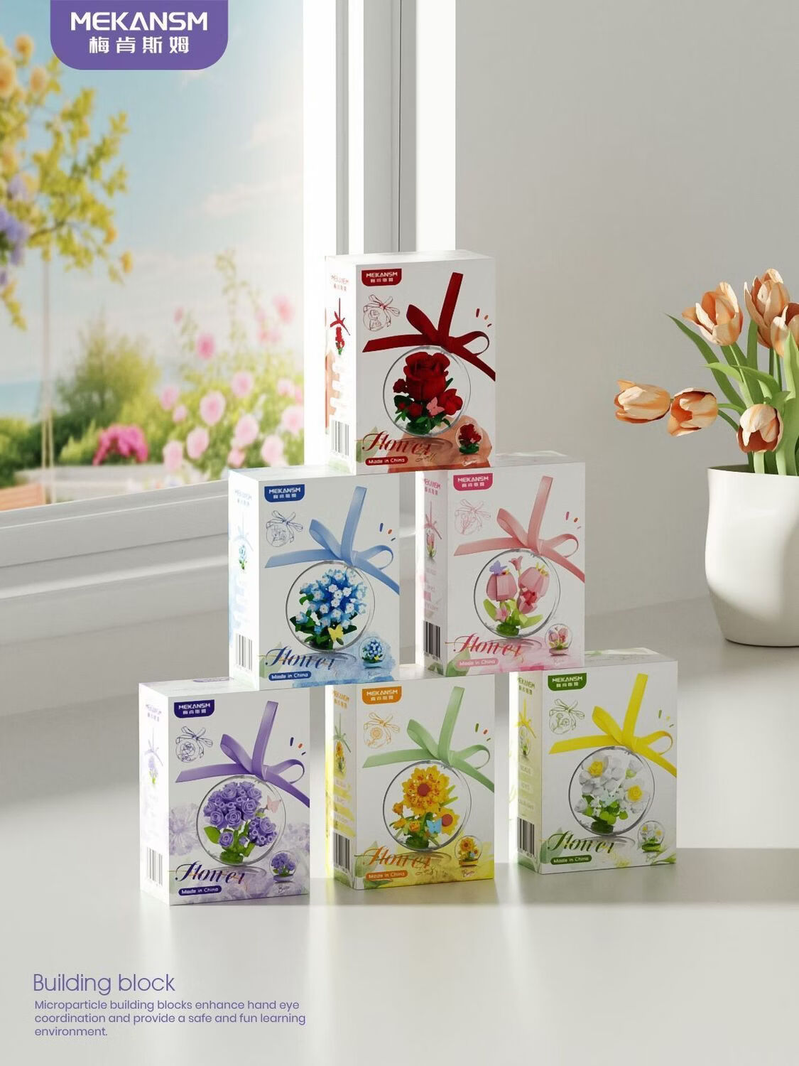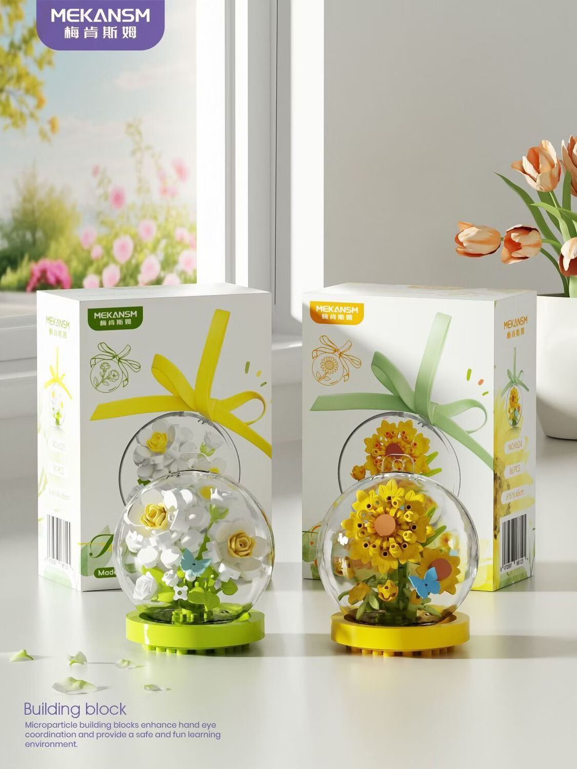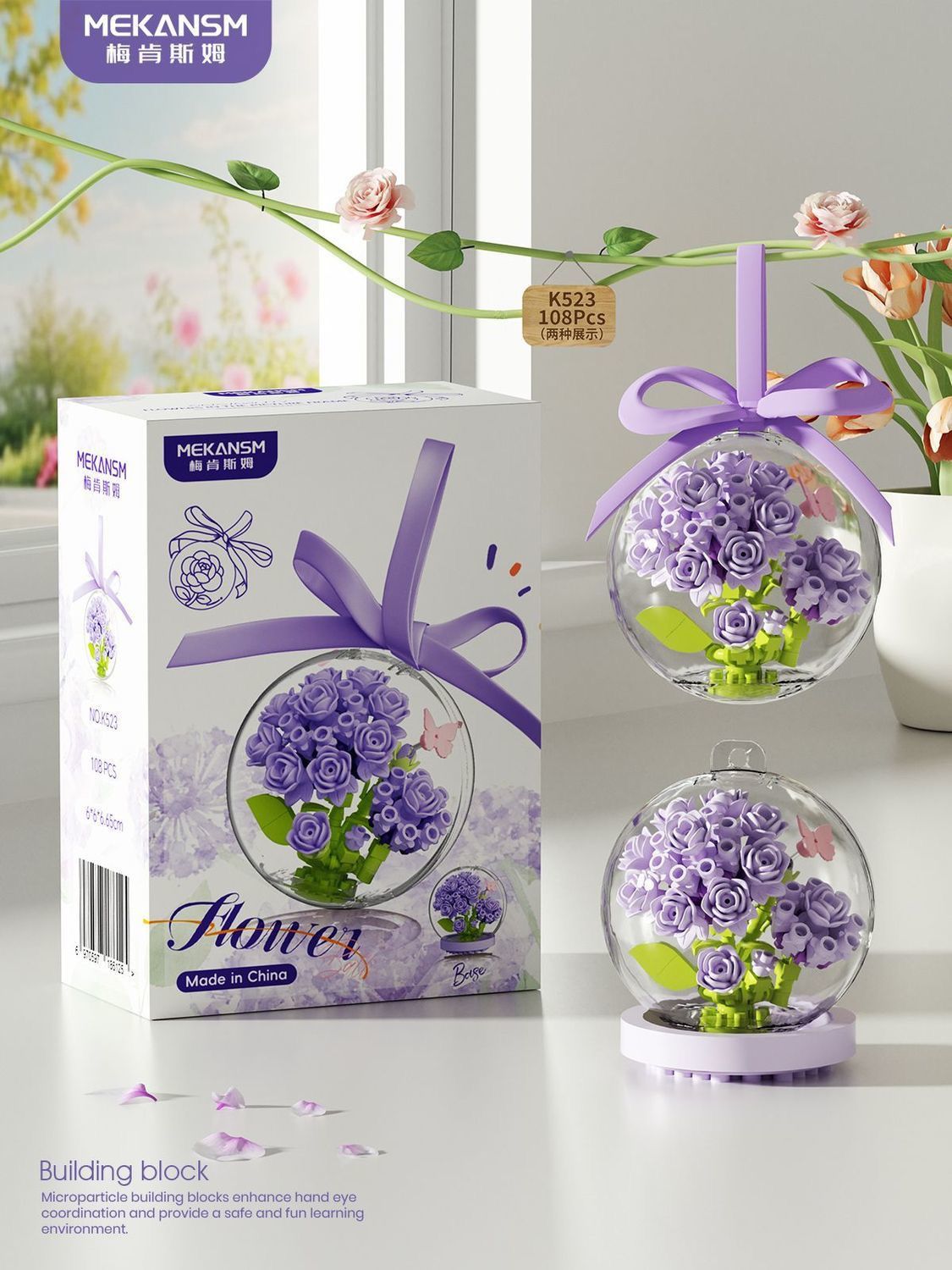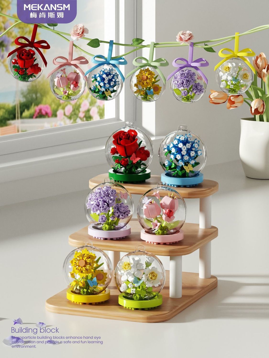 奇优宝永生花积木花束创意玩具 K525-星辰花愿-茉莉水晶球(两种展示)