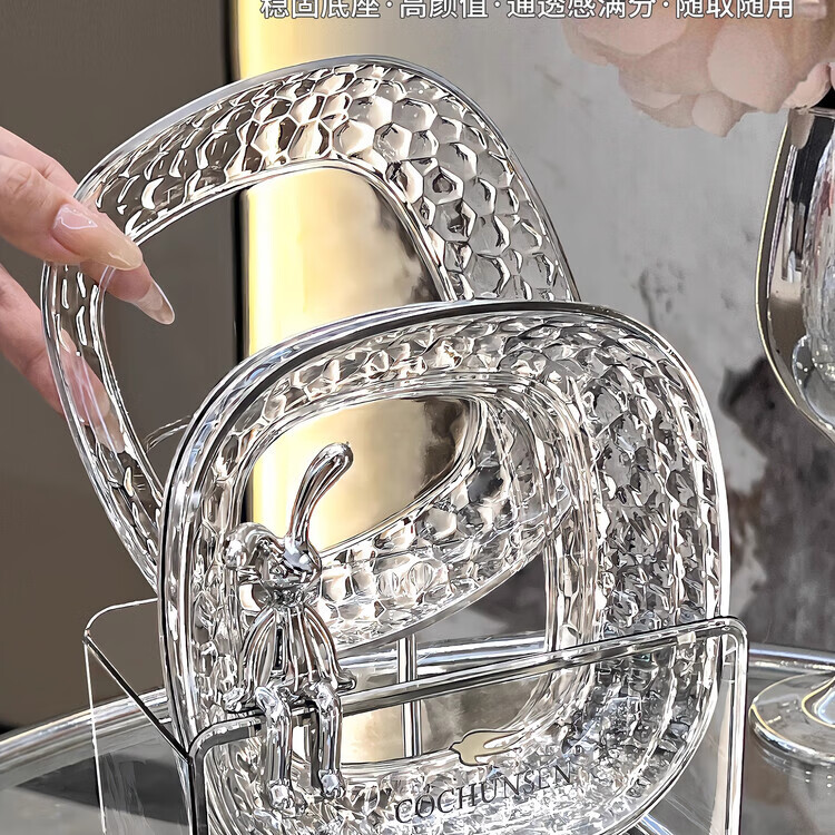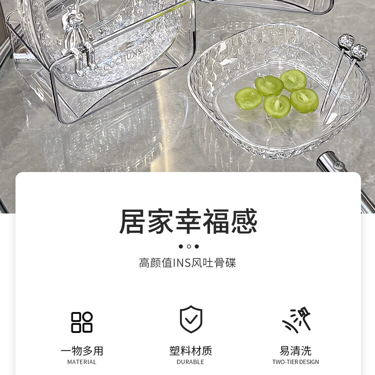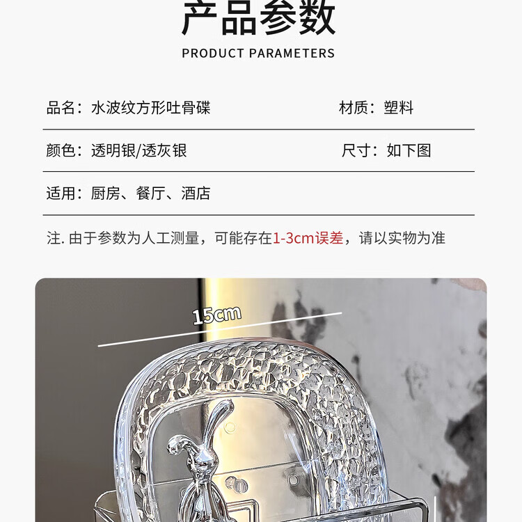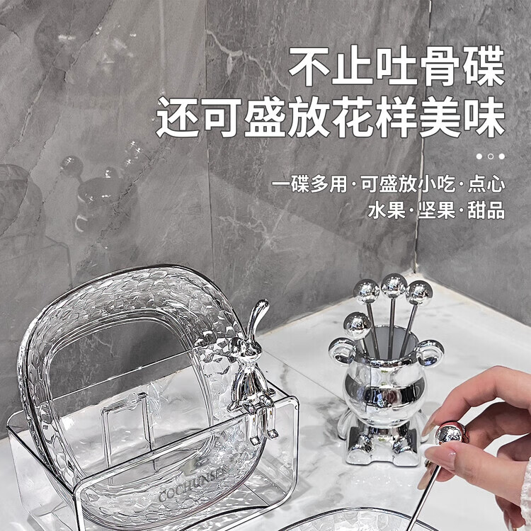 PWDDH德国吐骨碟餐桌垃圾盘碟吐骨碟家用骨碟骨头碟创意新款菜碟小盘子 15_15(4只装 透明银)