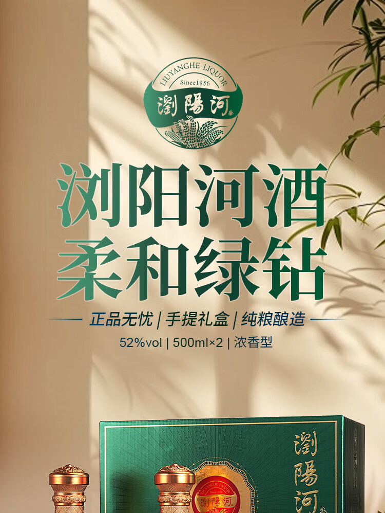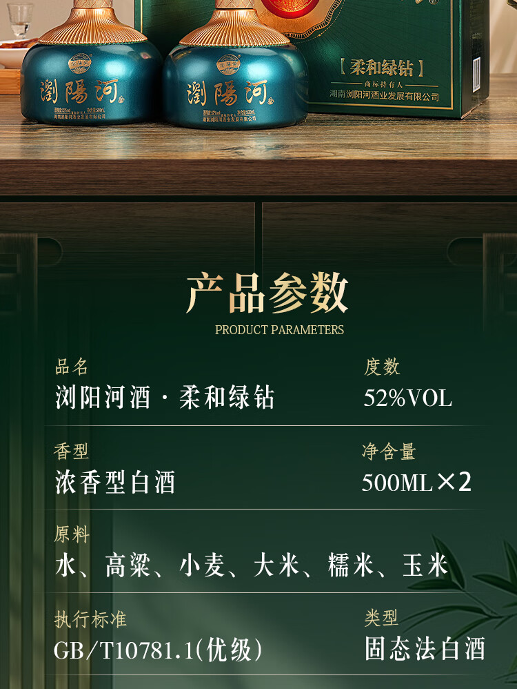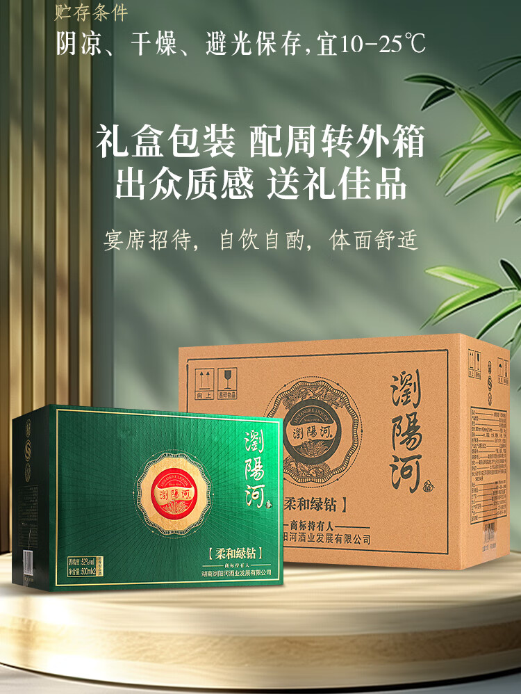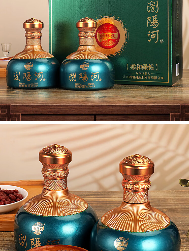 瀏陽河酒浏阳河酒柔和绿钻52度浓香型500ml*2瓶礼盒装请客送礼佳品 52度 500mL 2瓶