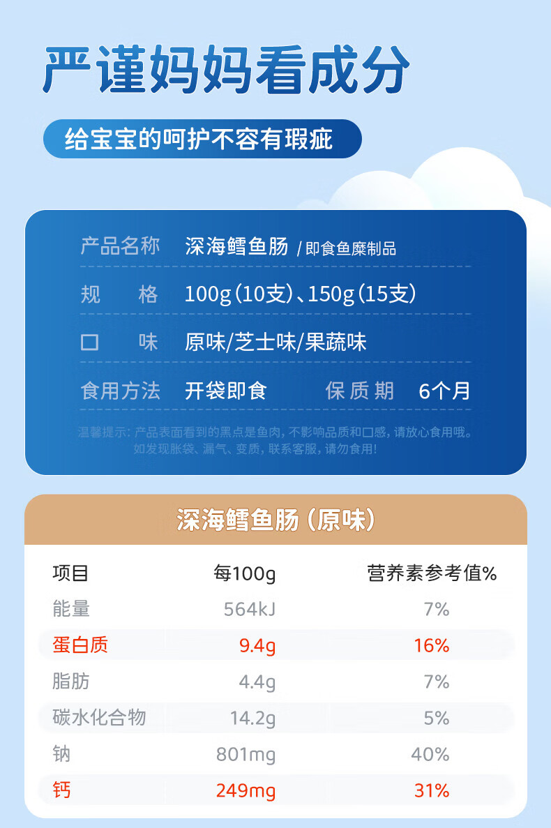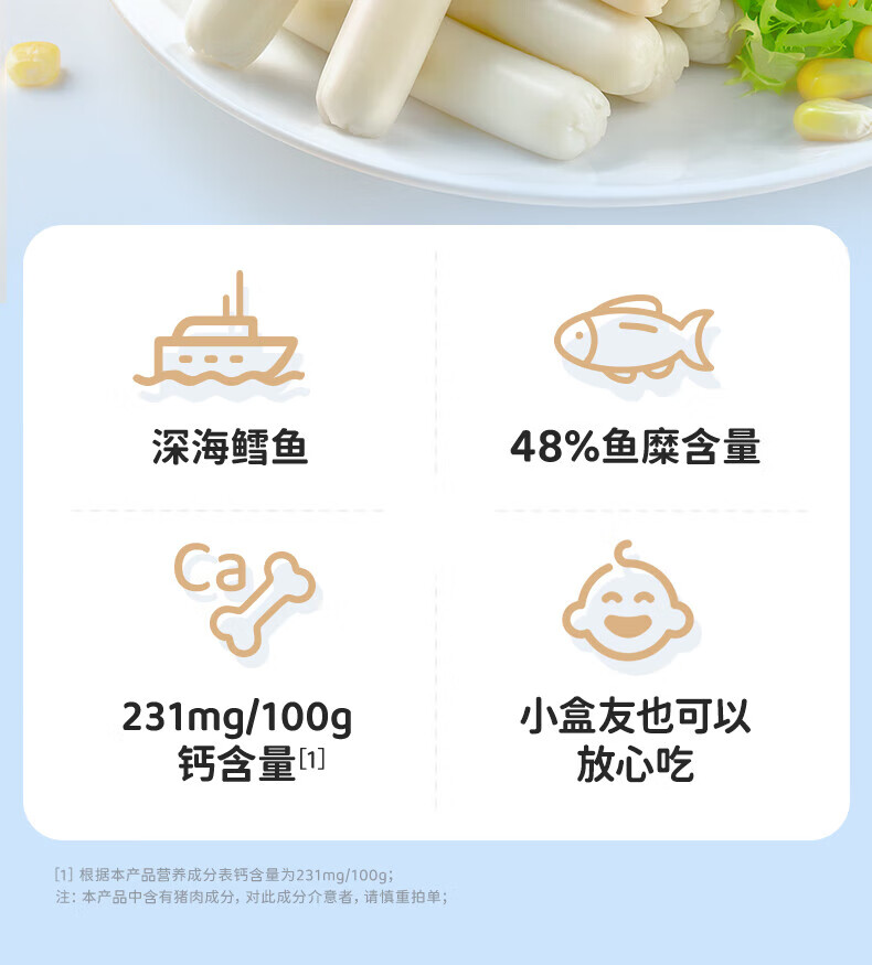 盐津铺子深海鳕鱼肠 健康即食蛋白鱼肉鱼肠儿童独立小包装儿童休闲零食 原味 100g约10支