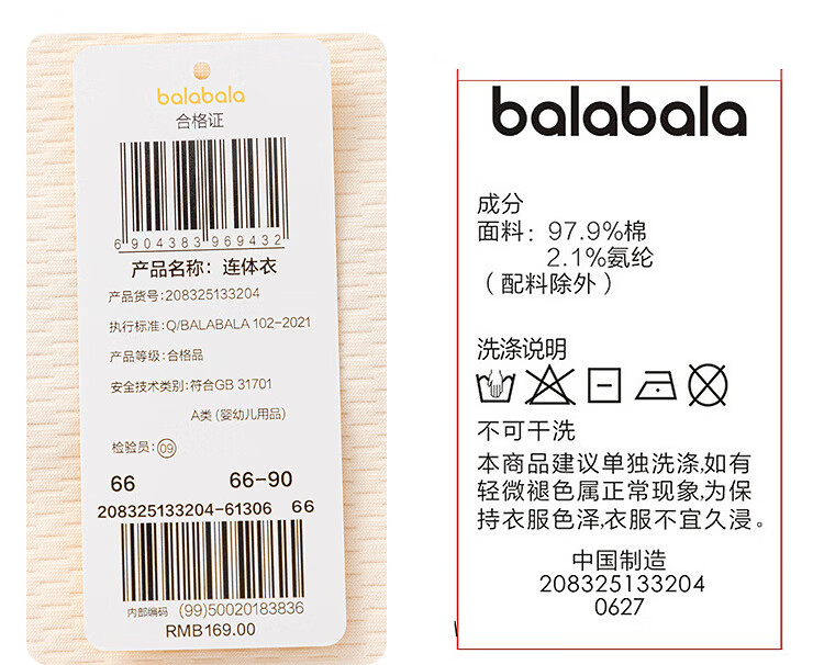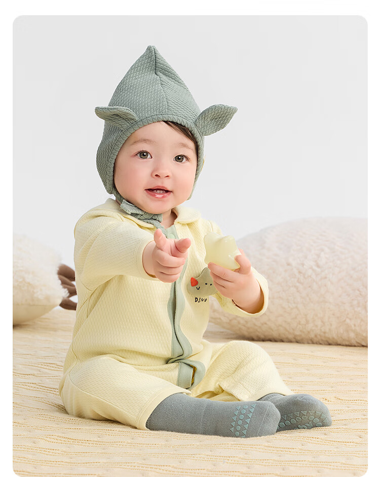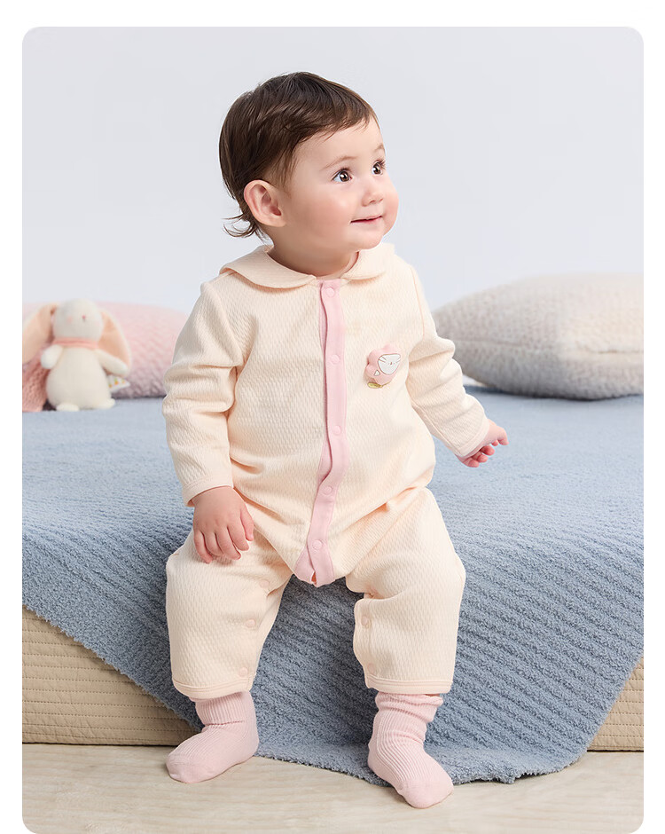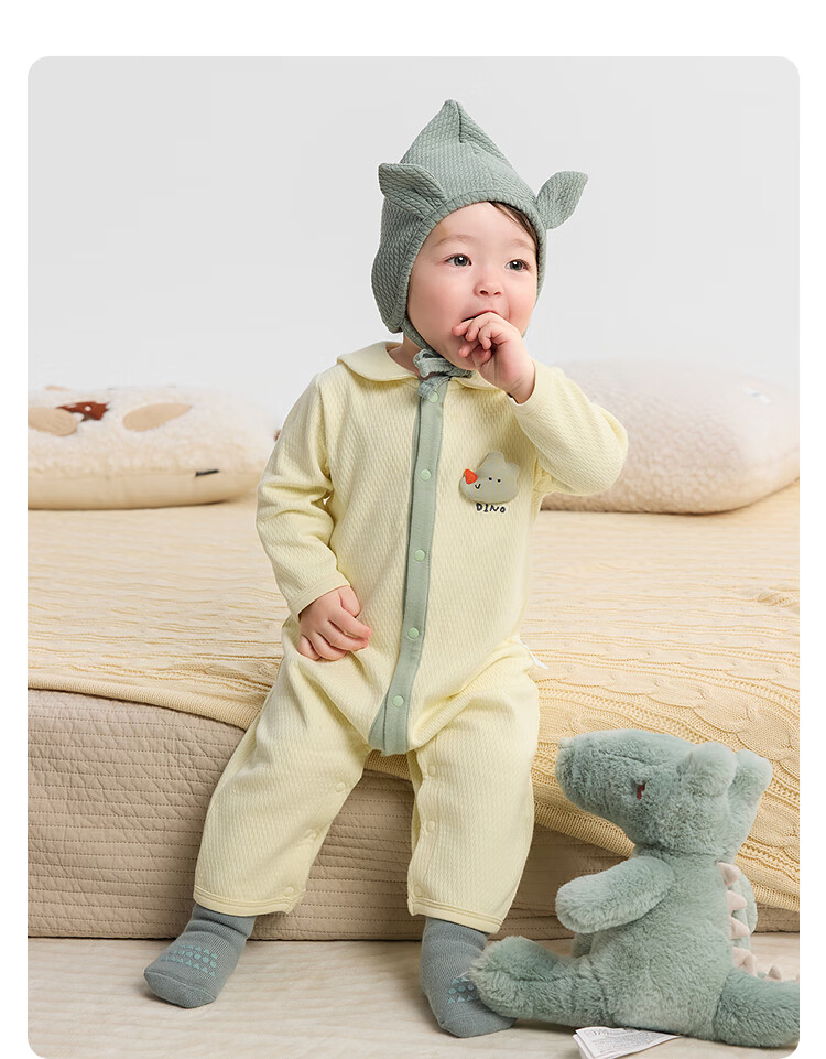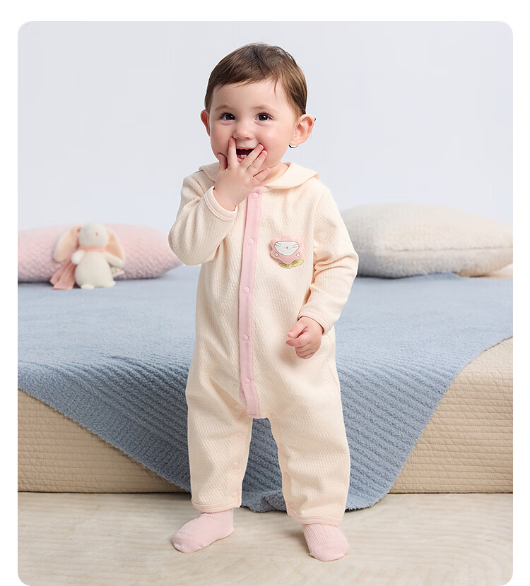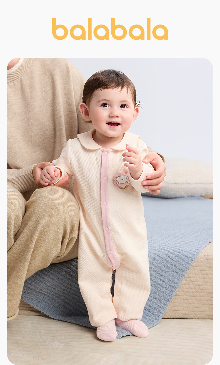 巴拉巴拉balaOne婴儿连体衣宝宝爬爬服哈衣可爱时尚萌趣 奶黄30198 80cm