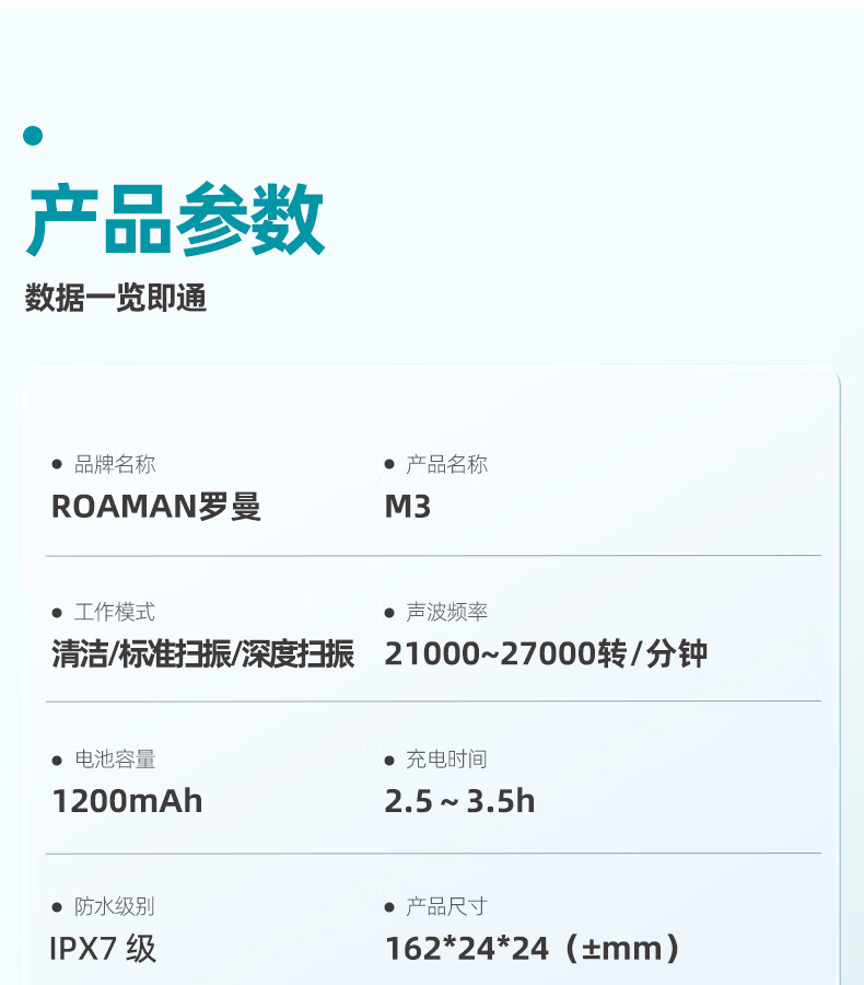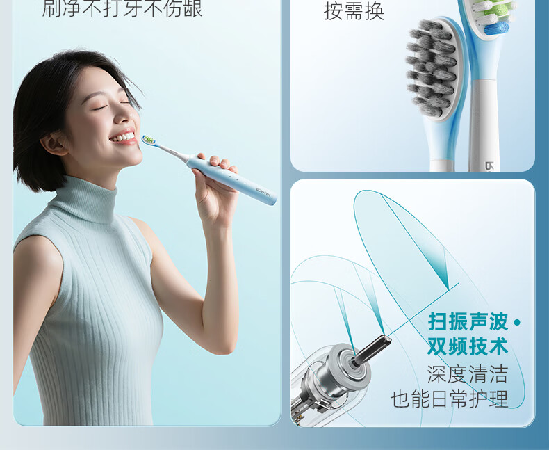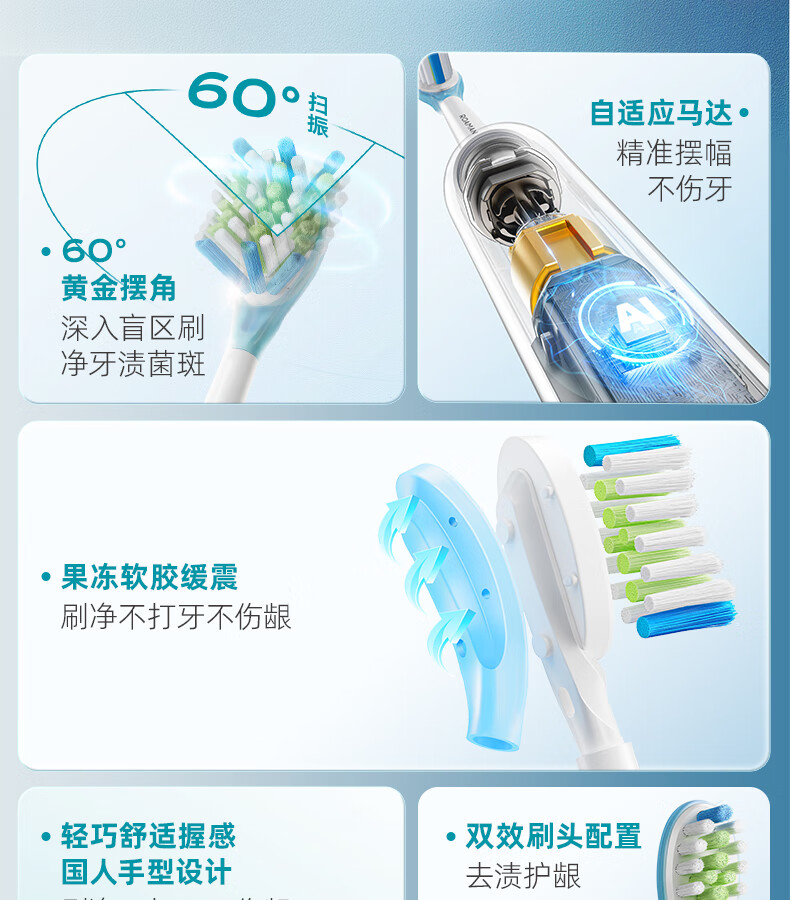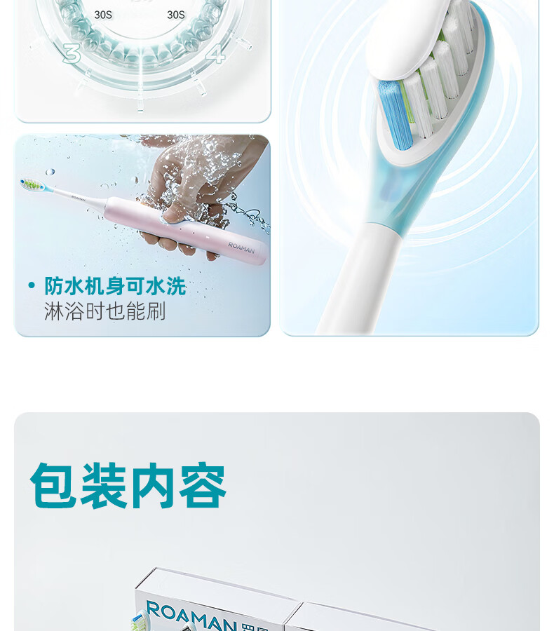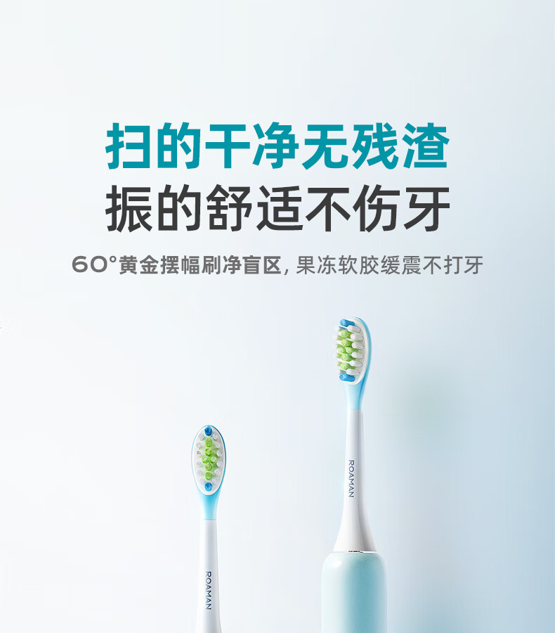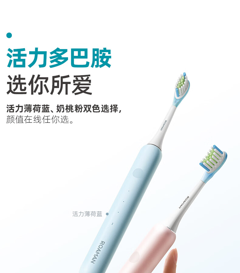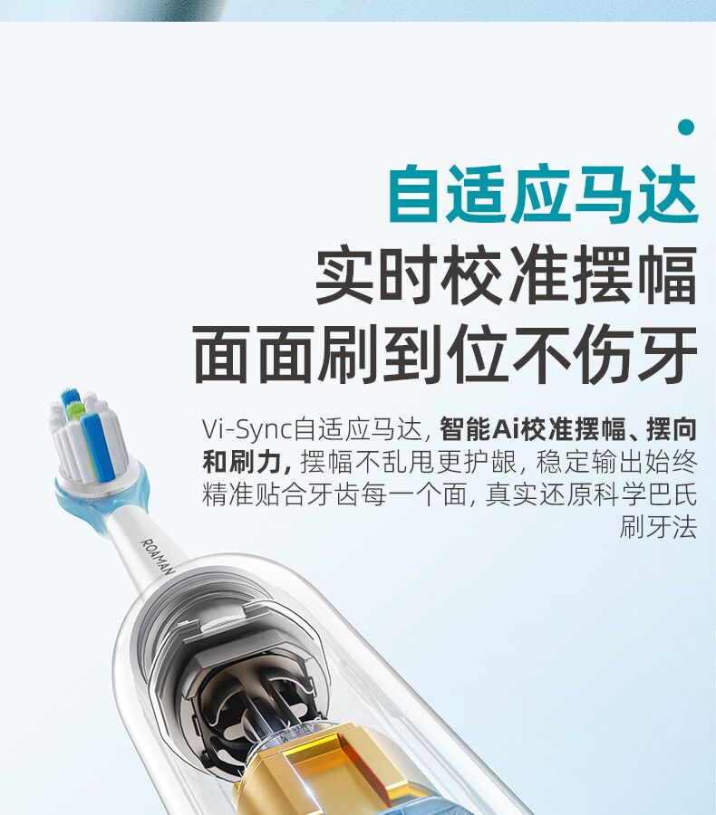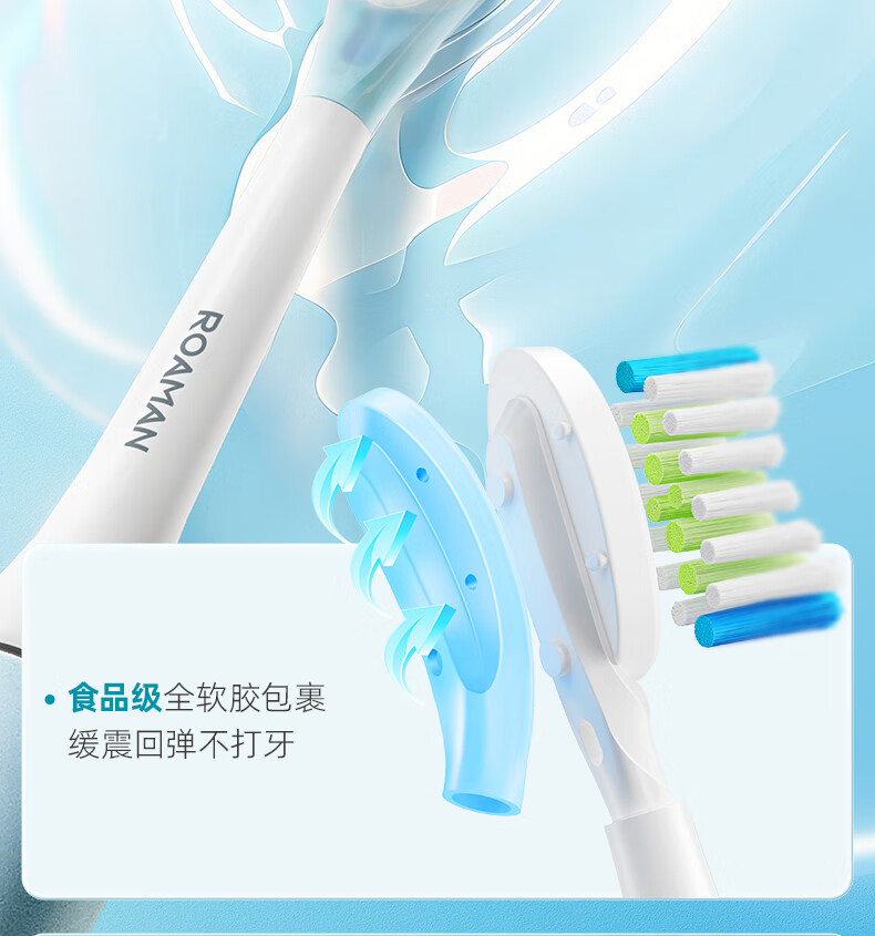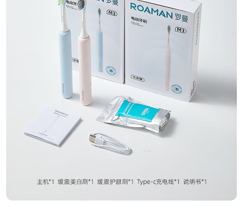 罗曼(ROAMAN)小熊电动牙刷声波大摆幅缓震抑菌99.9%刷头学生成人女男士生日礼物送朋友M3蓝色 智能双驱扫振一体