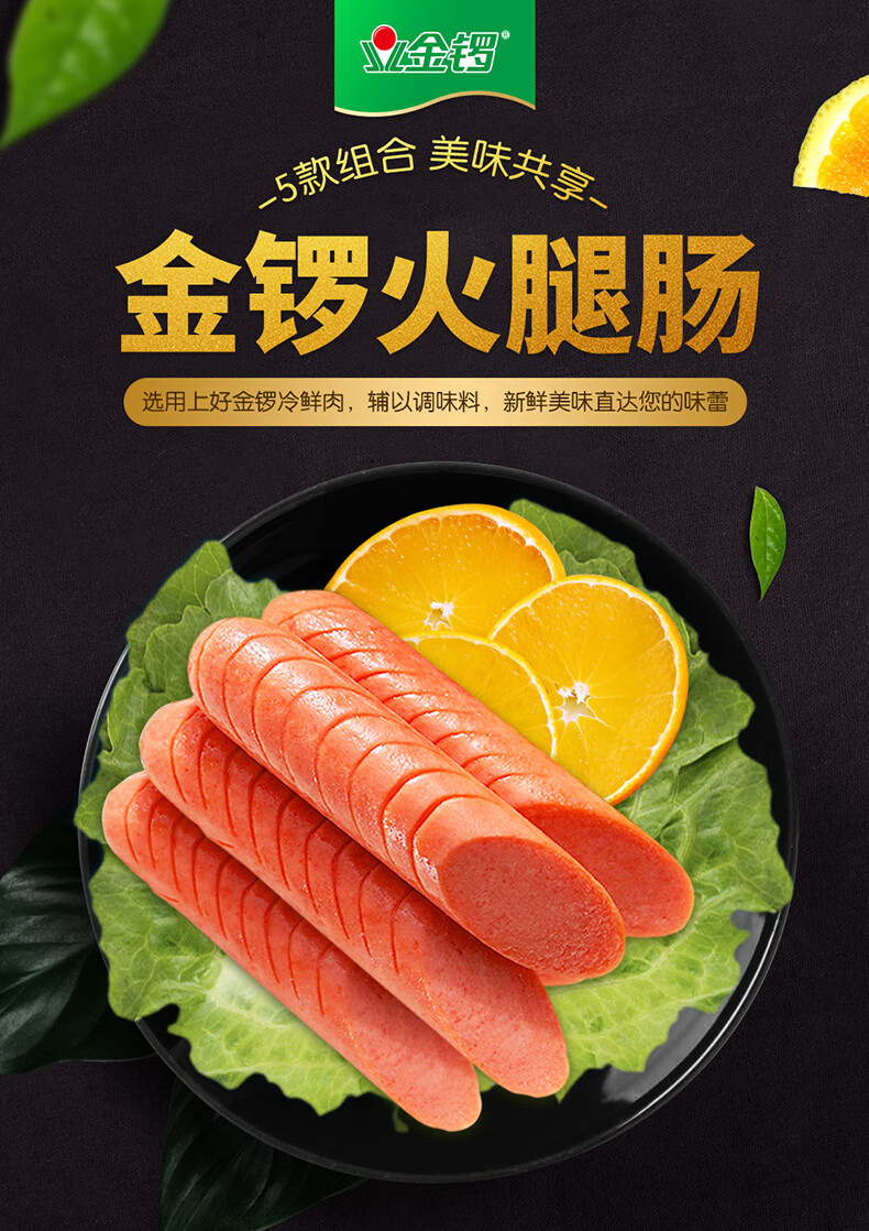 金锣畅享5袋组合装加钙金锣王玉米肠黑猪王美味王鸡肉香肠开袋即食