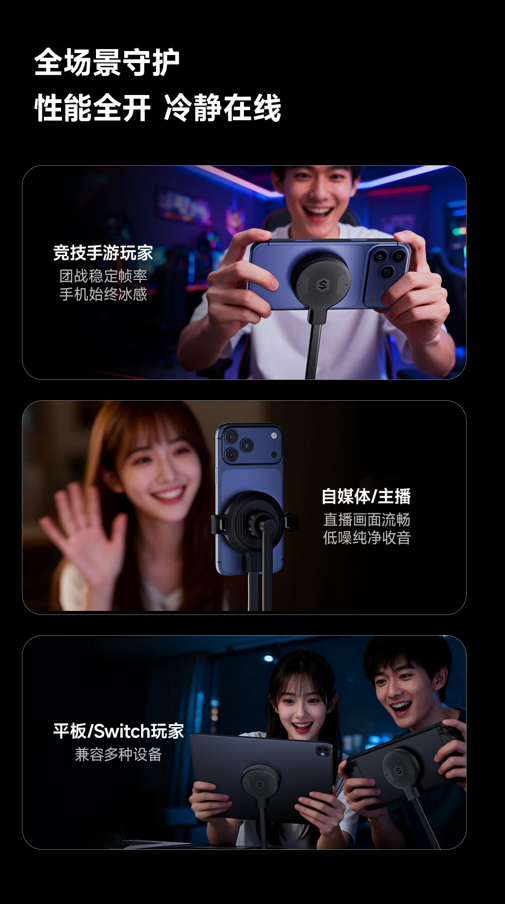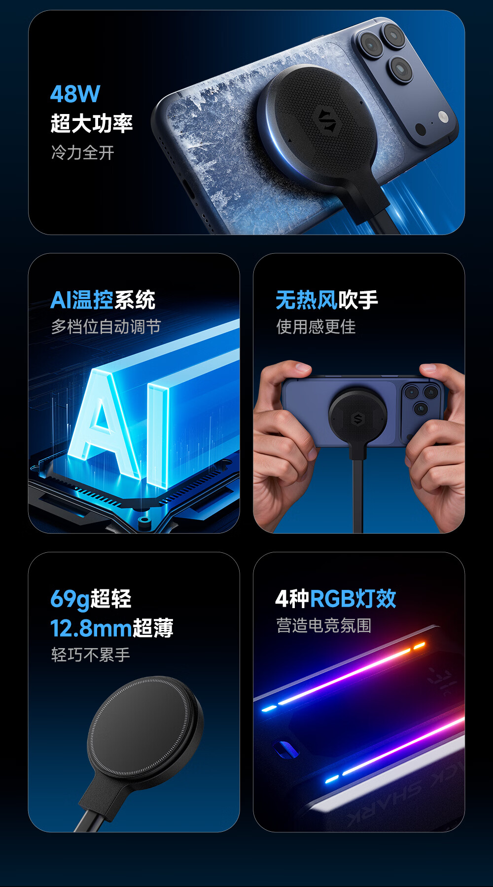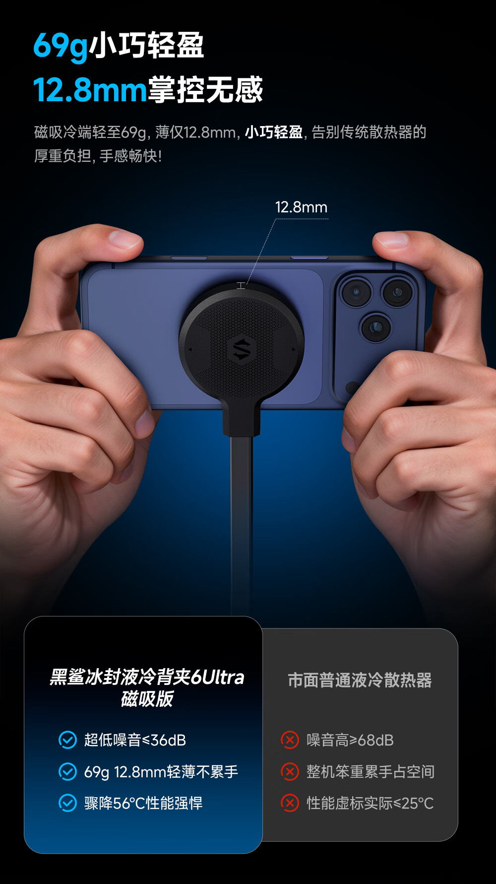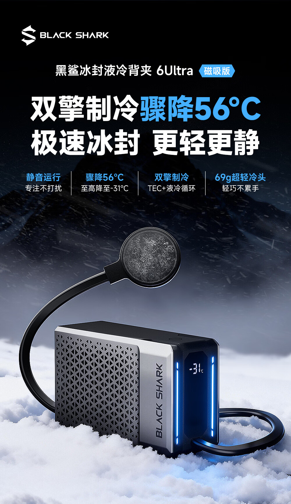 黑鲨6Ultra磁吸液冷手机散热器游戏直播半导体散热背夹降温神器平板苹果17iPad小米红魔iqoo一加绝区零