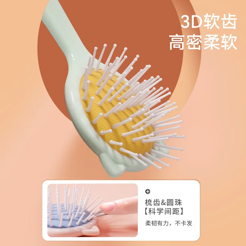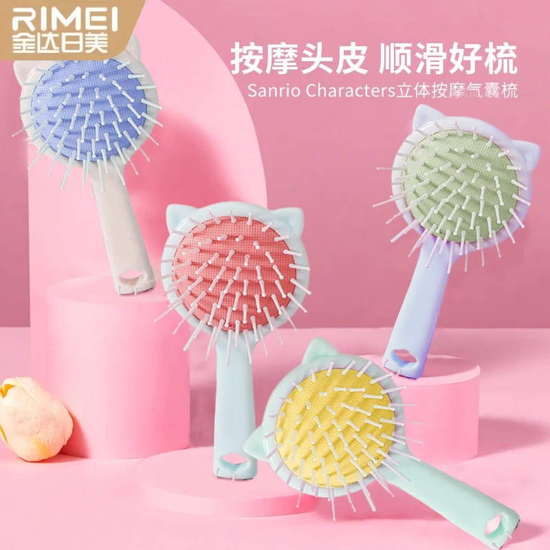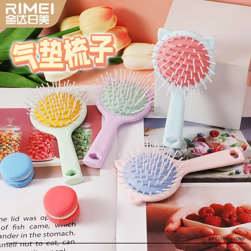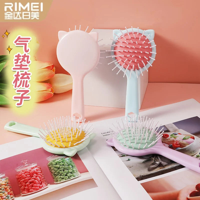 金达日美气垫梳小巧便携按摩头部气囊梳女学生宿舍蓬松神器美发卷发顺发梳 小猫气垫梳-蓝色