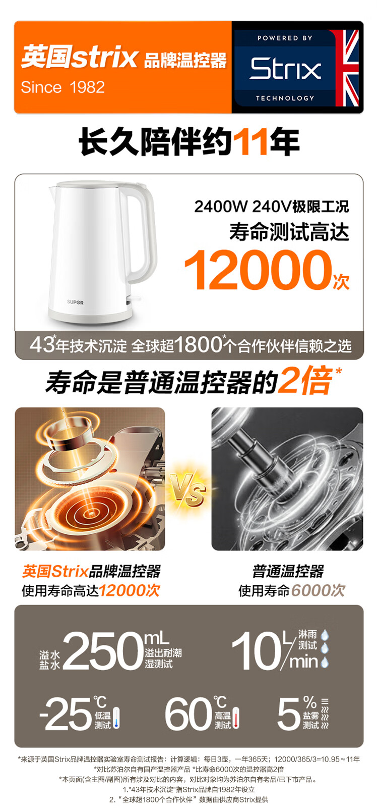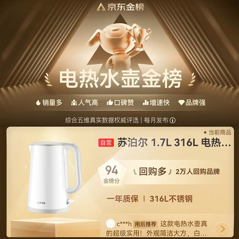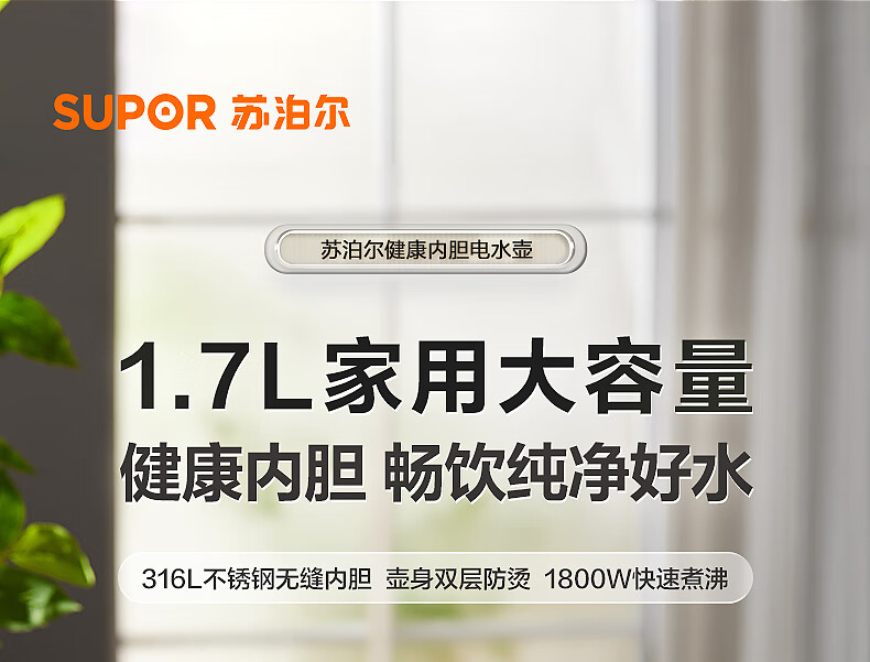 苏泊尔(SUPOR)1.7升大容量 电热水壶烧水壶开水壶电水壶煮水壶 家用智能多功能无缝内胆316L不锈钢 SW-17E05L