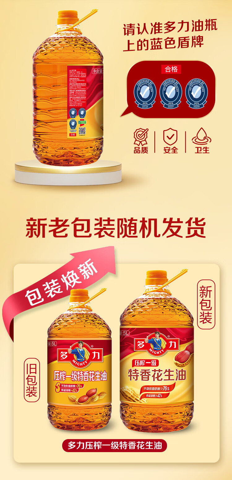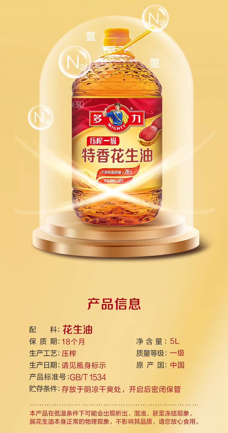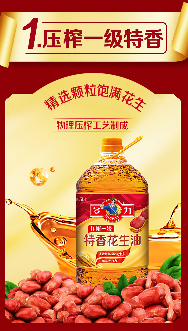 多力食用油 物理压榨 特香花生油 【双桶赠盐】特香花生油5L*2+盐400g*2