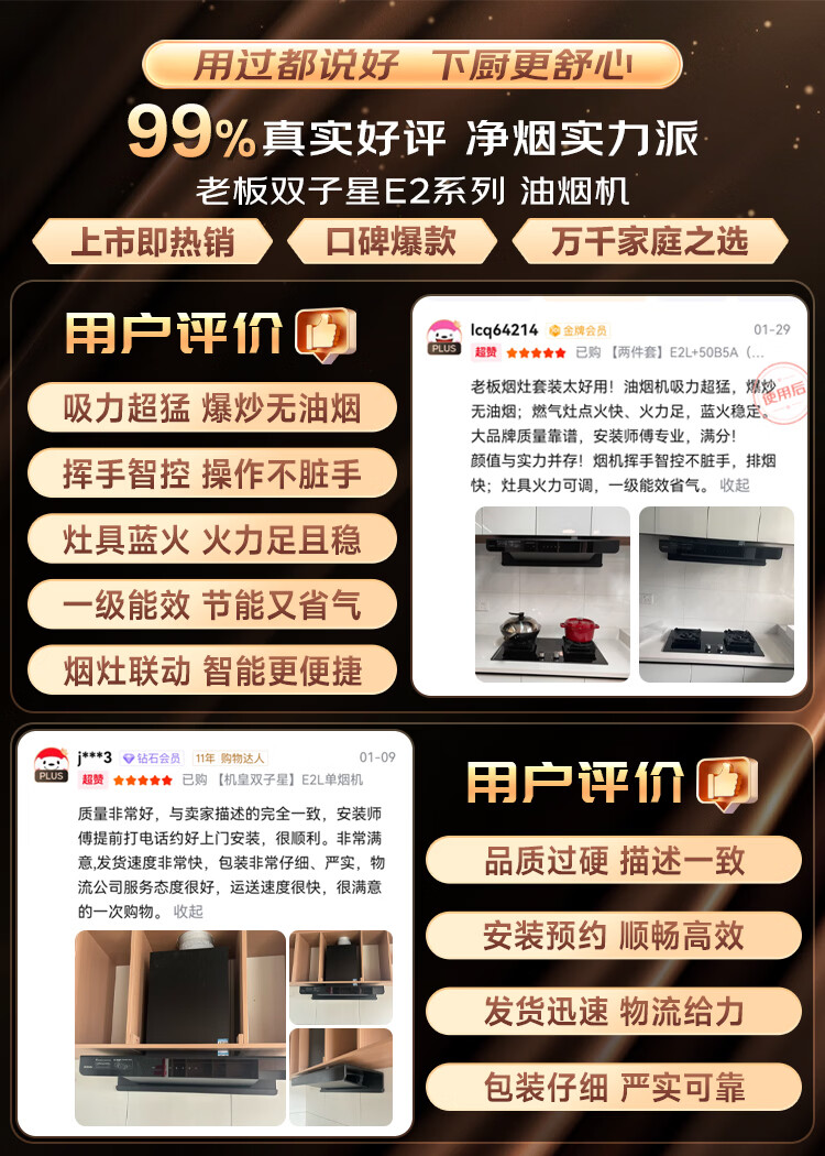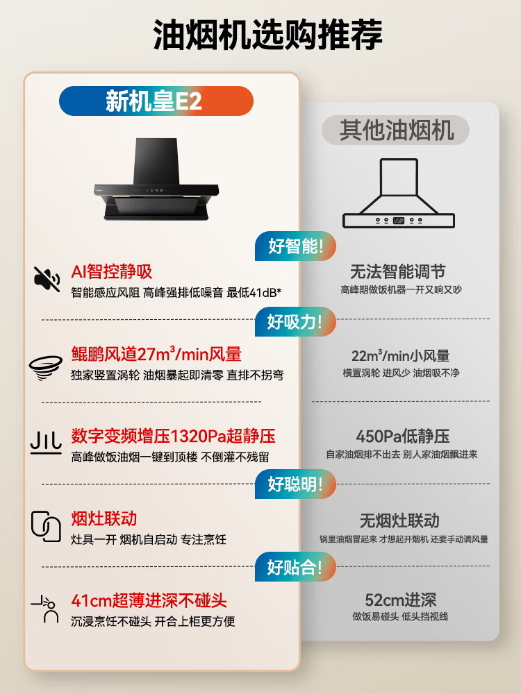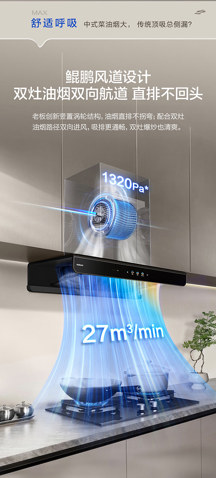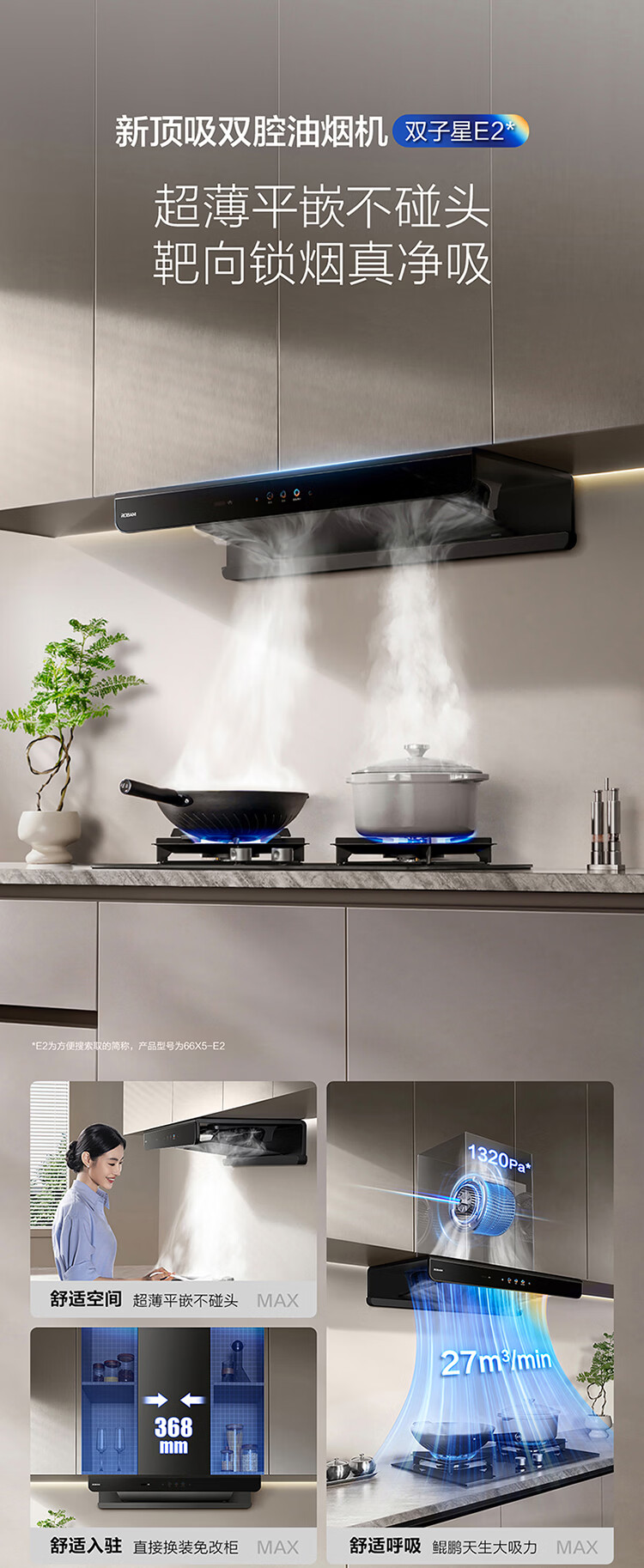 老板(Robam)【升级款E2机皇】抽吸油烟机家用欧式顶吸27风量吸力1320Pa静压变频一级能效挥手感应 【单烟机E2】27m³鲲鹏风道