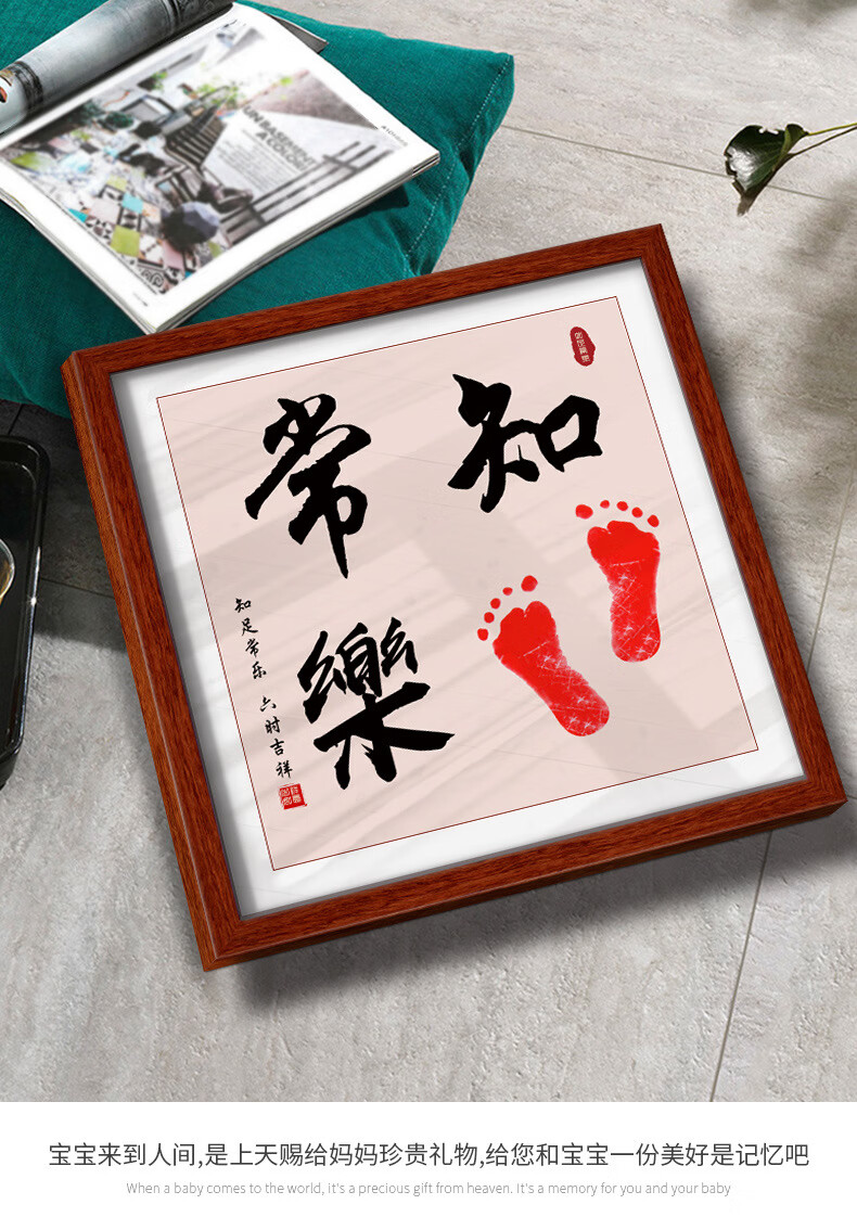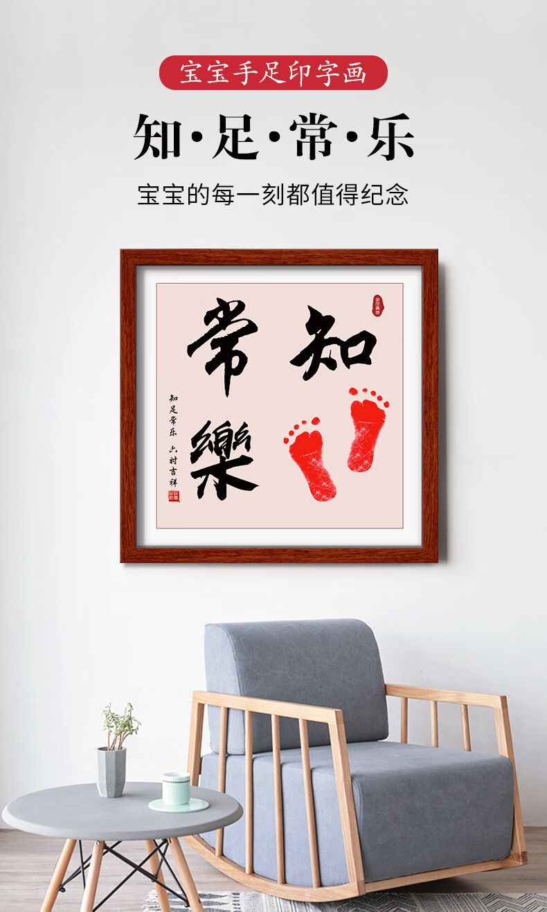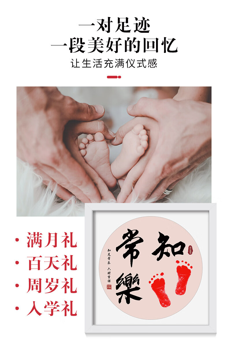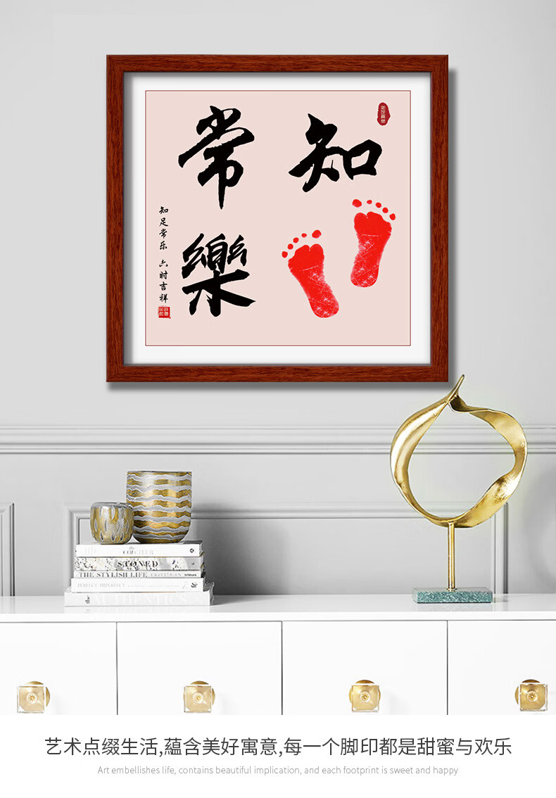 沃有家满月宝宝手足印周岁小脚丫纪念婴儿手足情深印DIY相框手脚印摆台 知足常乐白框