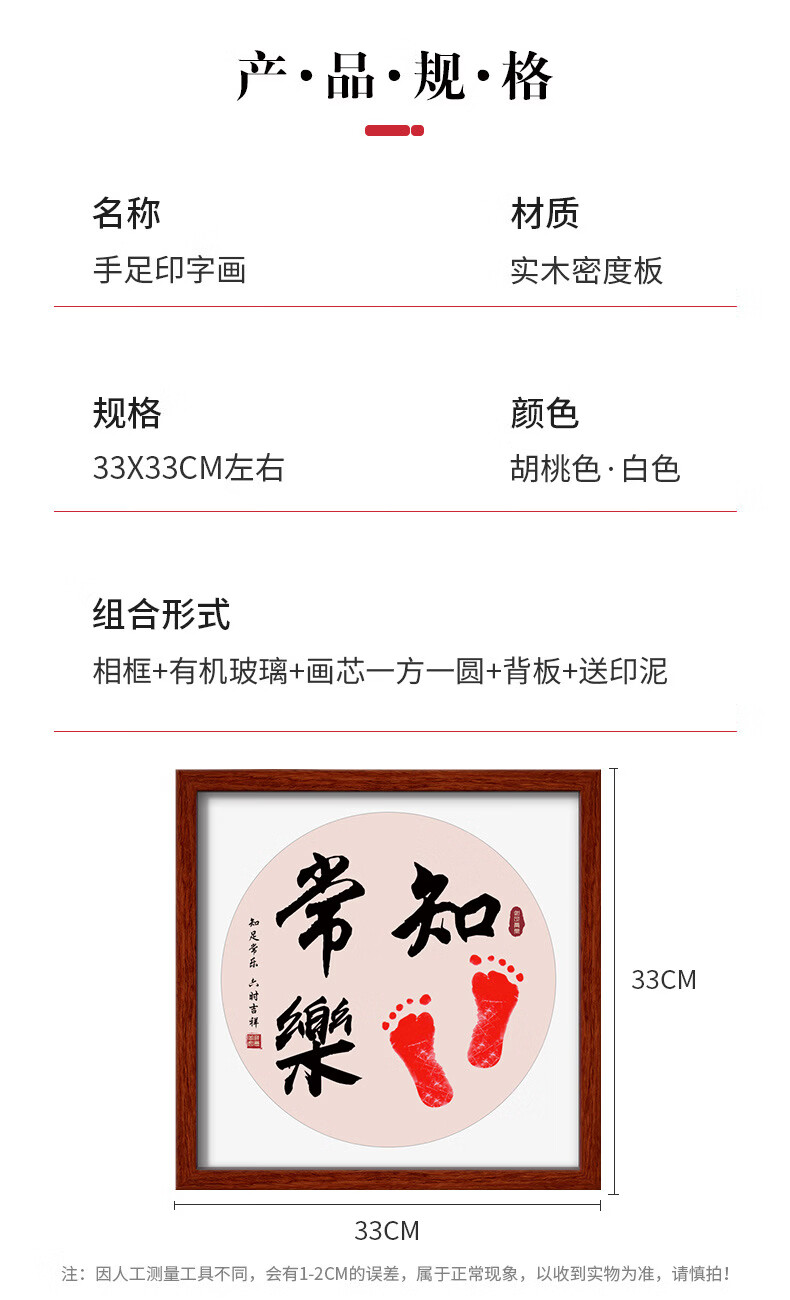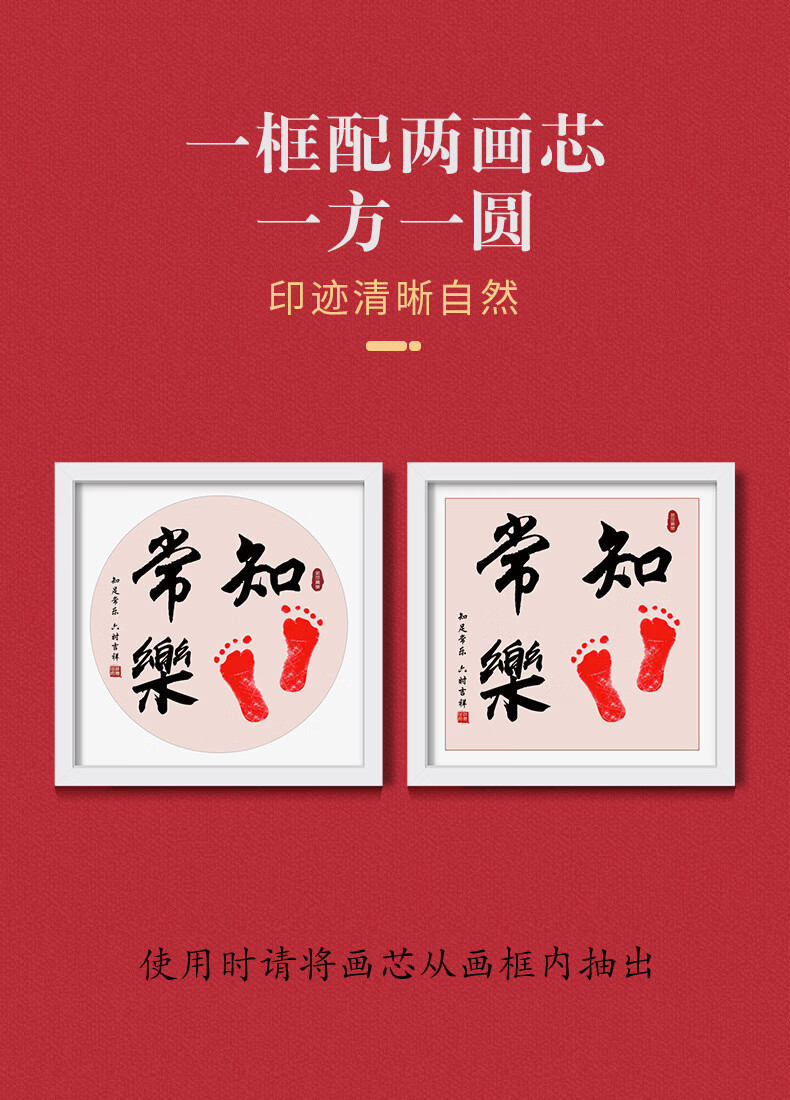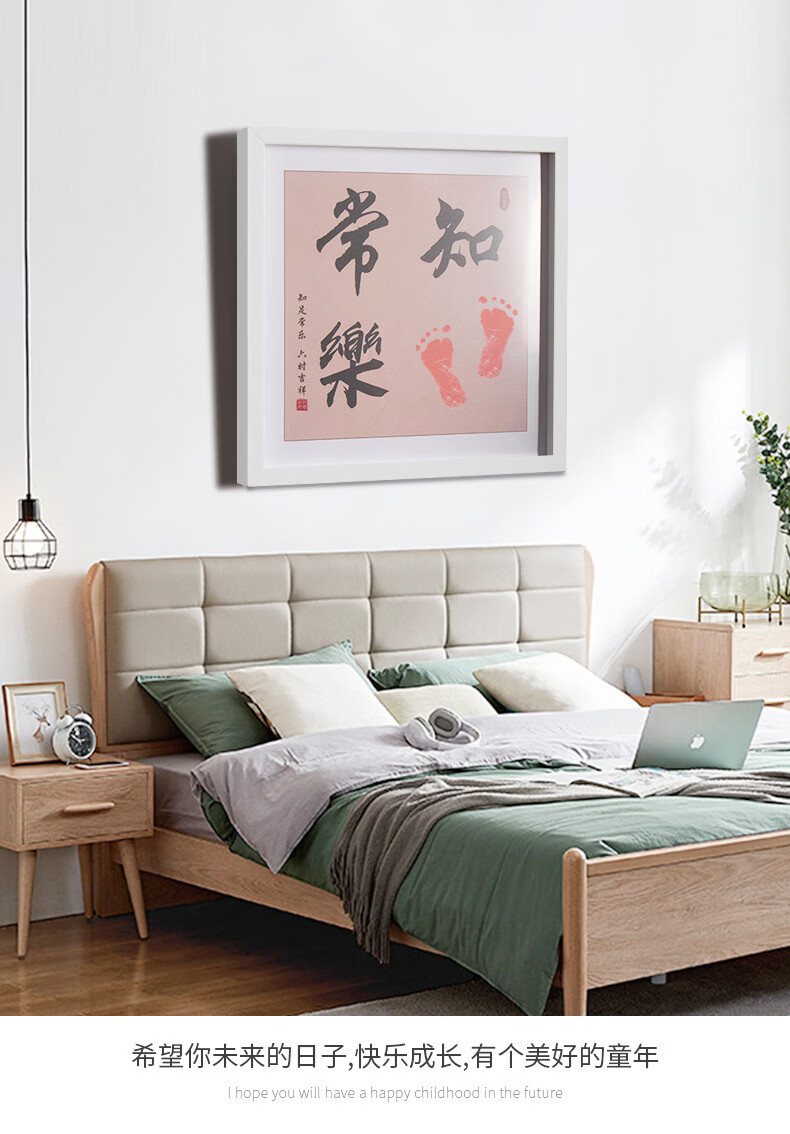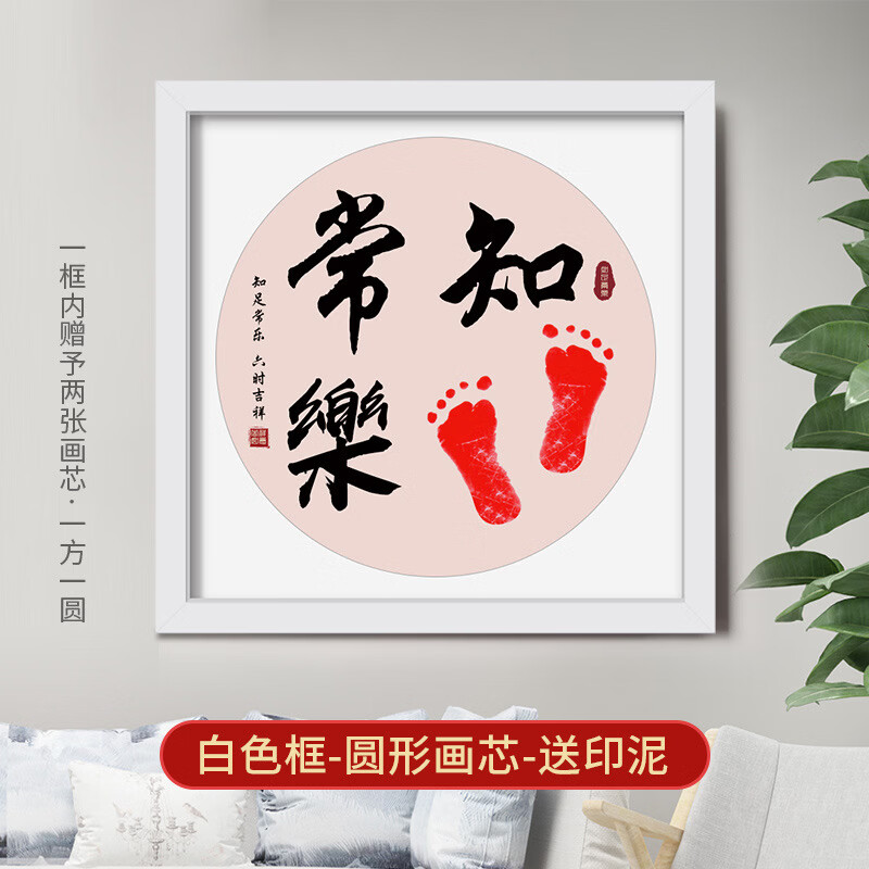 沃有家满月宝宝手足印周岁小脚丫纪念婴儿手足情深印DIY相框手脚印摆台 知足常乐白框