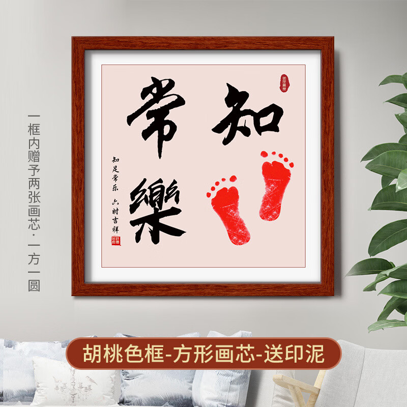沃有家满月宝宝手足印周岁小脚丫纪念婴儿手足情深印DIY相框手脚印摆台 知足常乐胡桃木框