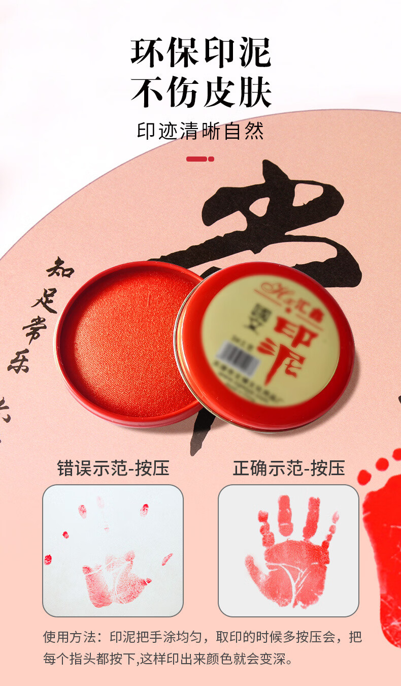 沃有家满月宝宝手足印周岁小脚丫纪念婴儿手足情深印DIY相框手脚印摆台 柿柿如意白框