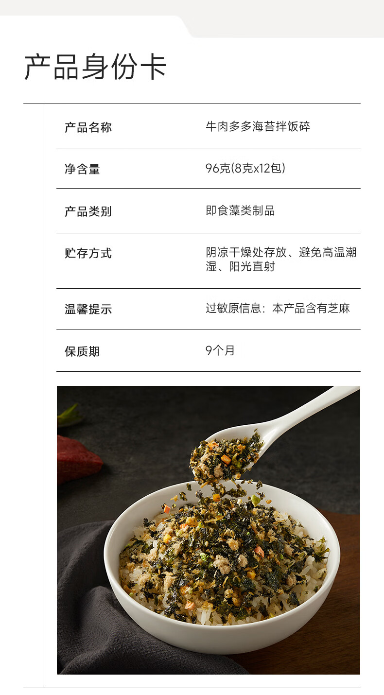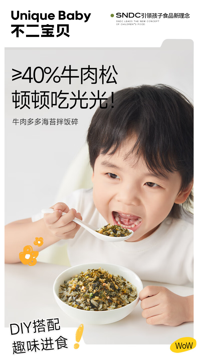 不二宝贝牛肉松海苔碎拌饭料搭无添加婴儿幼儿童宝宝寿司零食辅食 【1袋 | 牛肉松≥40%】牛肉海苔碎96g
