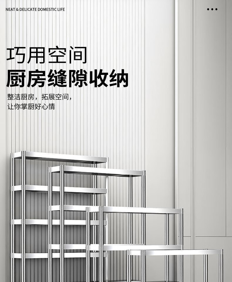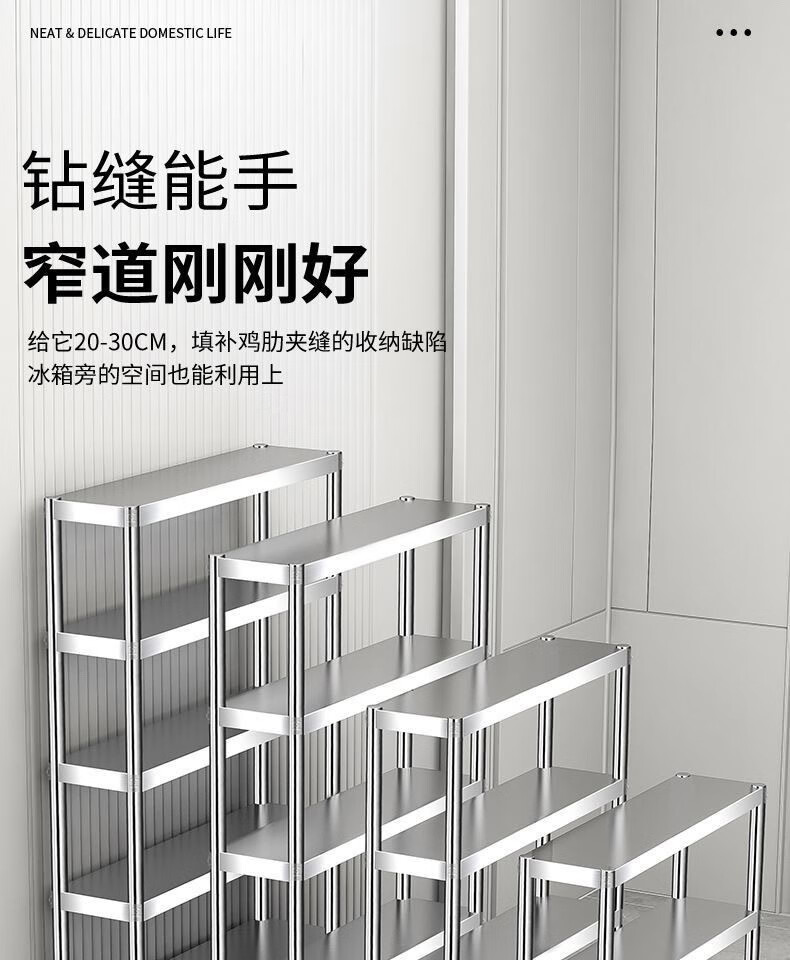 接运猫夹缝隙架子15厘米20cm不锈钢厨房阳台储物架置物架落地加厚可 四层高120厘米 长100宽15