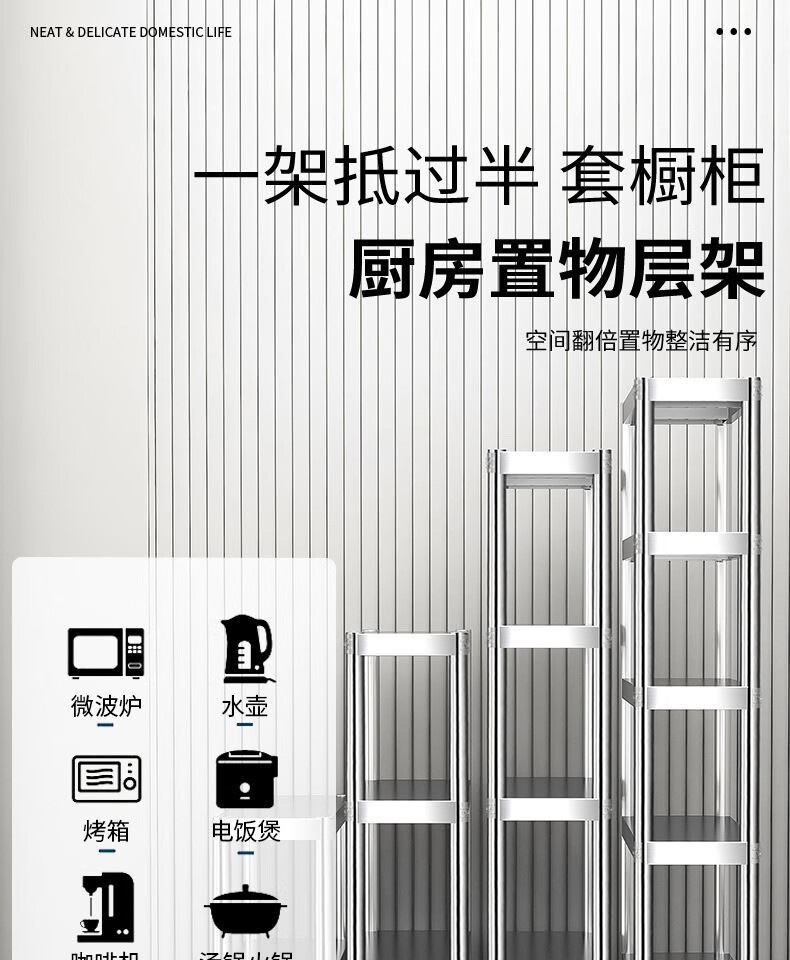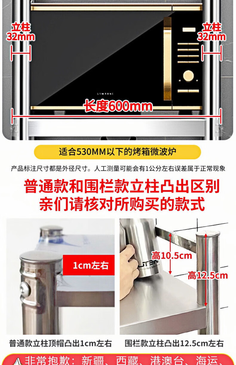 忆思减加厚厨房架子置物架落地多层收纳架锅架三层储物杂物架子微波炉架 两层70厘米高 长100*宽30【加厚防锈】