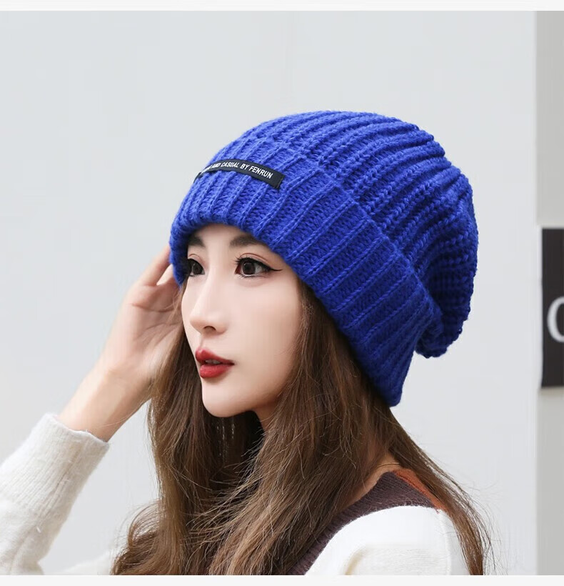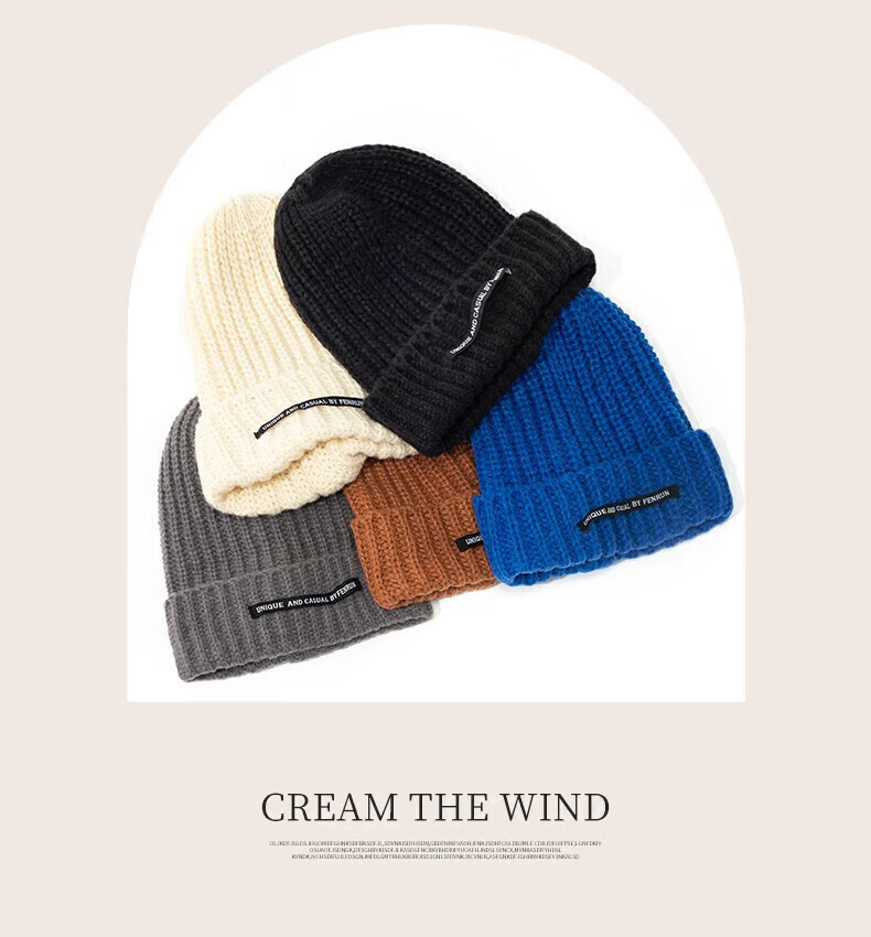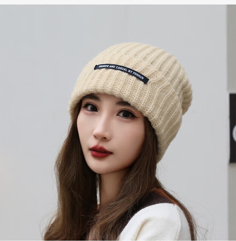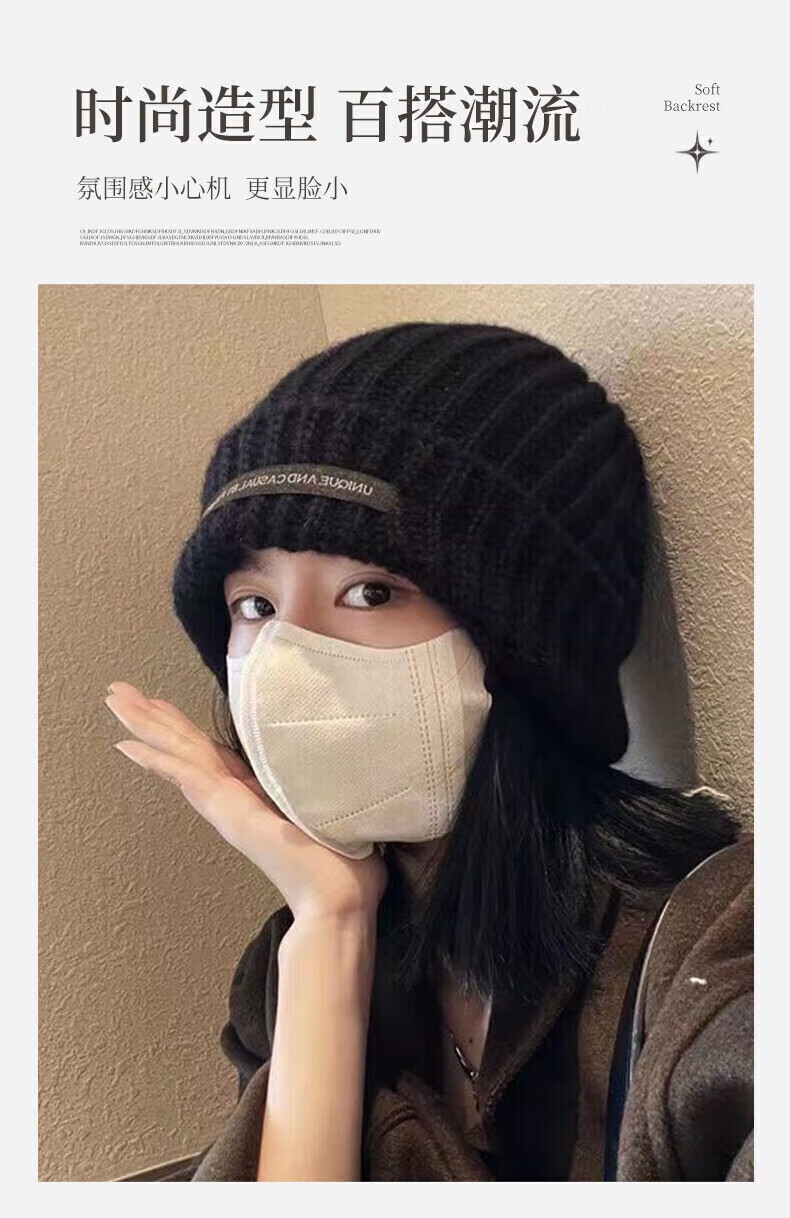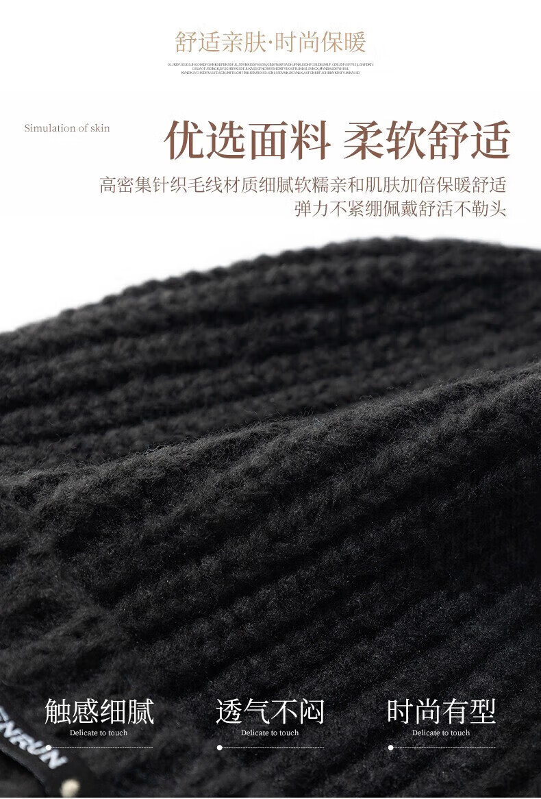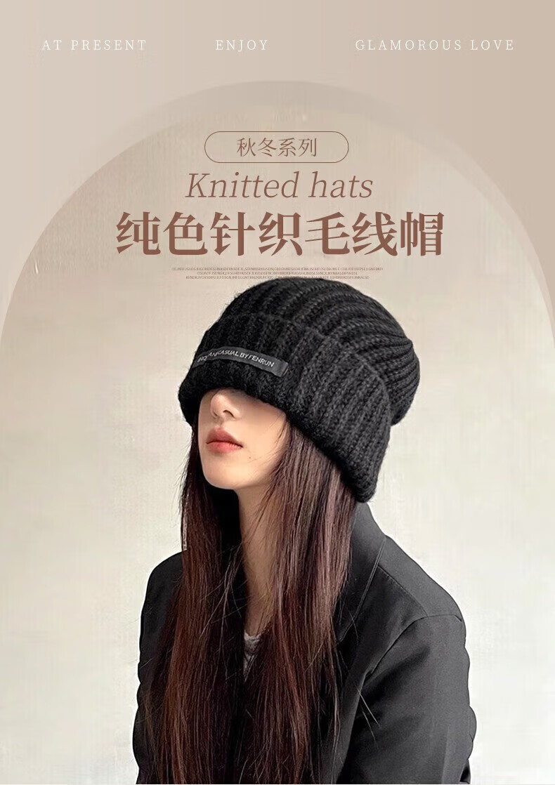 达芬奇密码秋冬保暖纯色针织毛线帽女士帽子防寒防风 黑色
