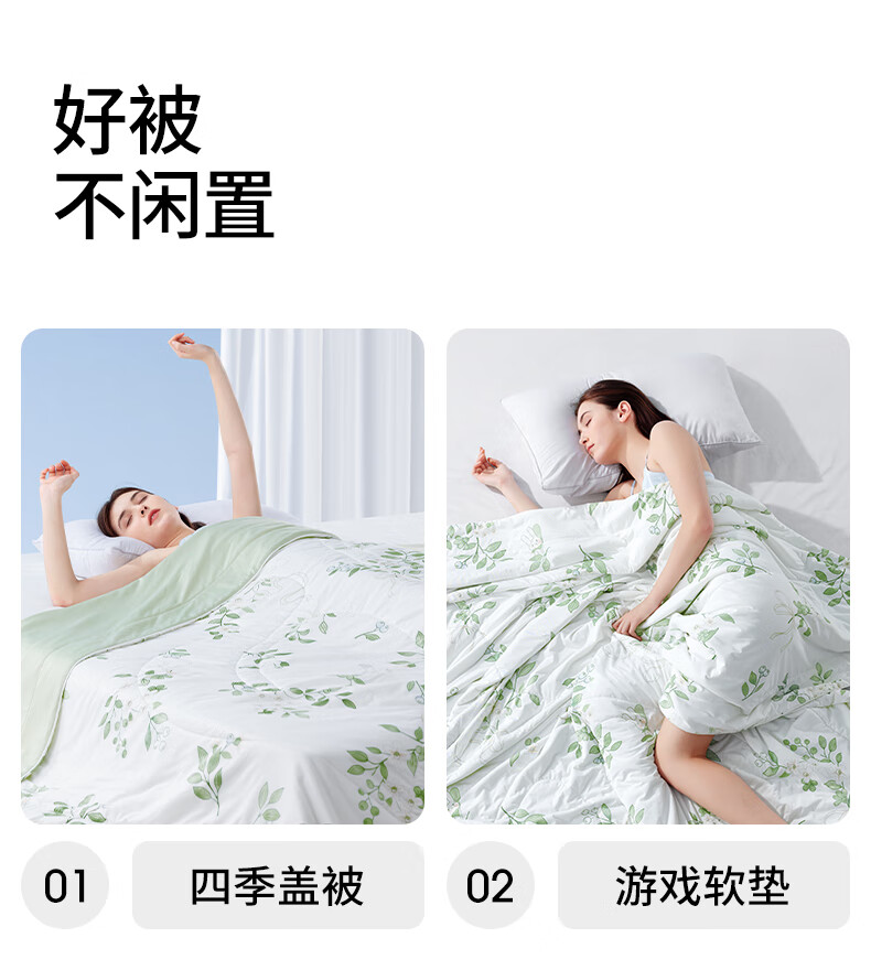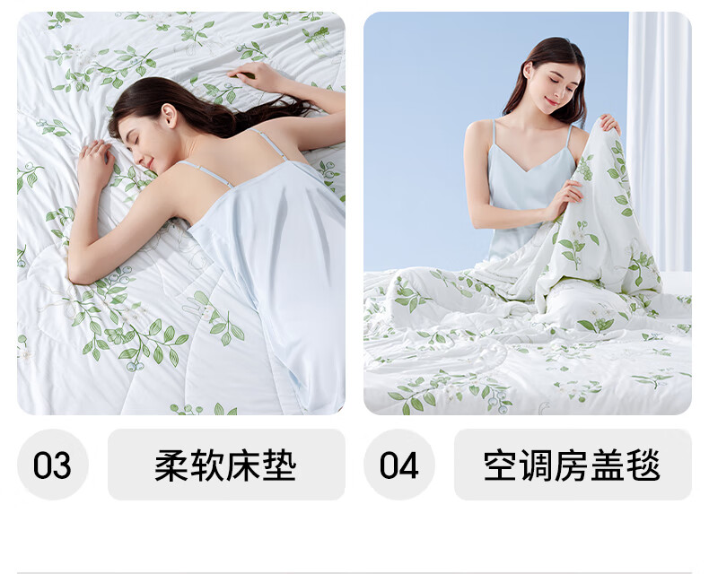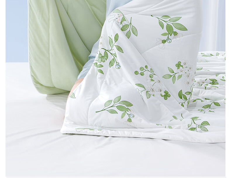 水星家纺夏凉被空调被水洗真丝夏被四件套夏季被子裸睡轻奢床单床笠 公主日记-白茶绿 床单款 夏被200*230cm++2枕套