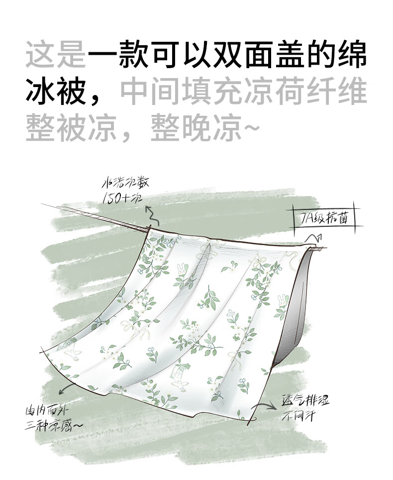 贝肽斯成人夏凉被春夏季母婴儿童空调被子薄款盖毯单双人可机洗抗菌被子 浅色思念【薄荷清凉 可机洗】 150cm*200cm