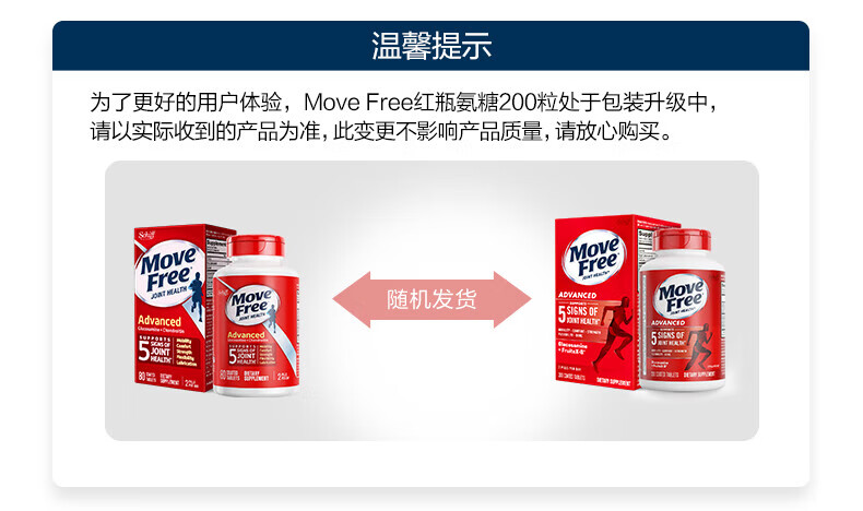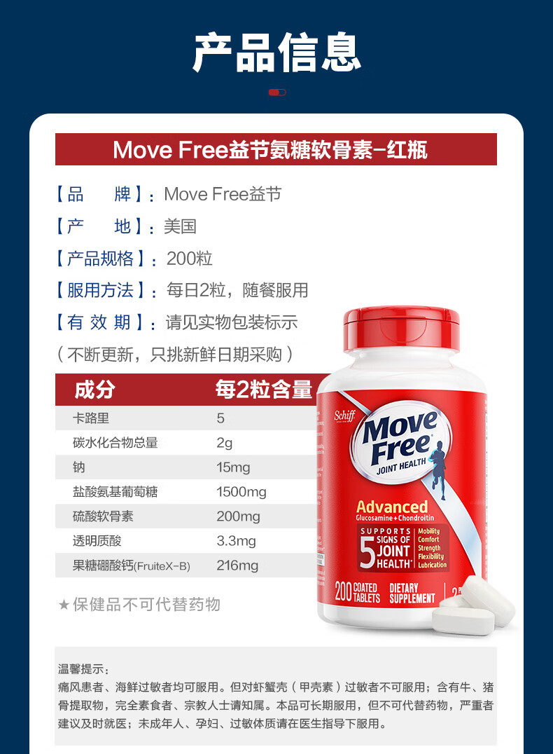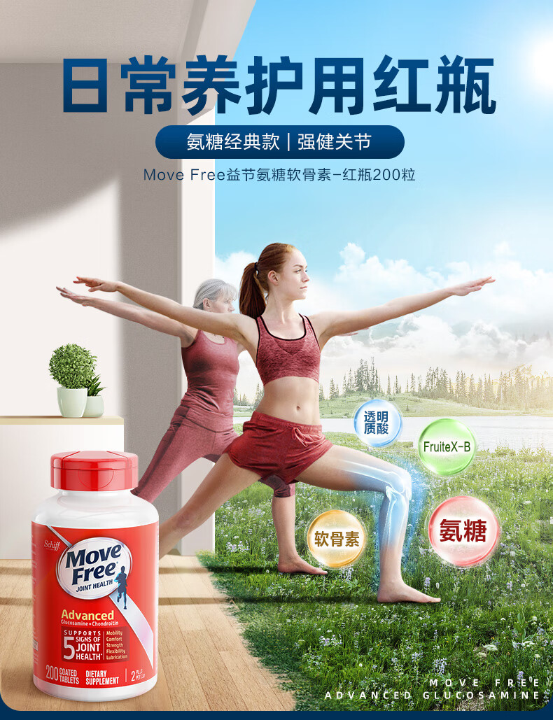 益节(Move Free)氨糖软骨素钙片氨基葡萄糖 维骨力中老年成人关节保健品 美国进口 【性价比优选】红瓶氨糖 200粒*1瓶