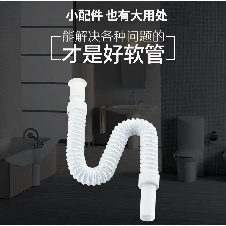 山头林村【甄选直发】洗脸盆下水管排水管防臭管道配件落水管拖把池加长软 2根装加强钢丝胶头款