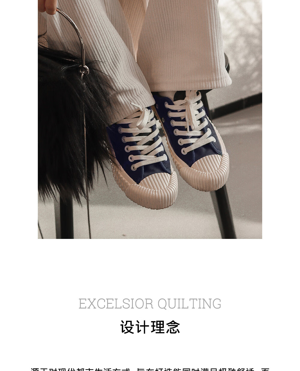 Excelsior饼干鞋官方 秋冬女鞋运动加棉板鞋男低帮增高休闲鞋厚底帆布鞋女 海军蓝 41 (260mm)