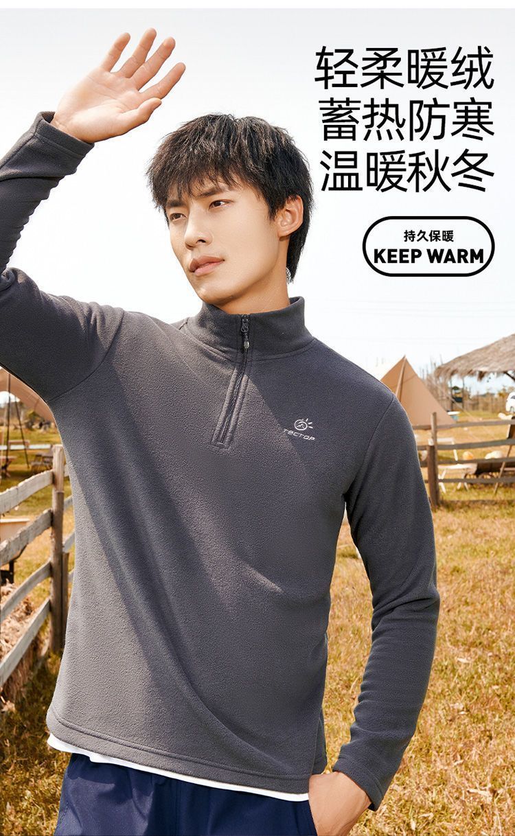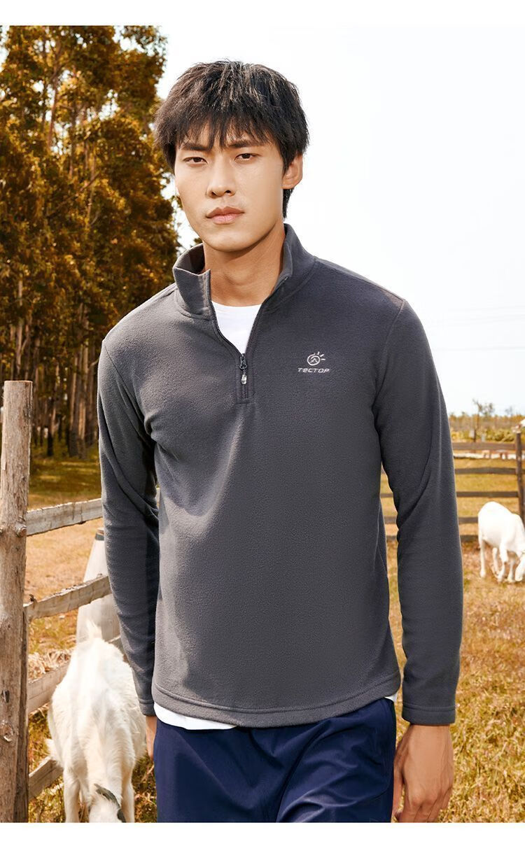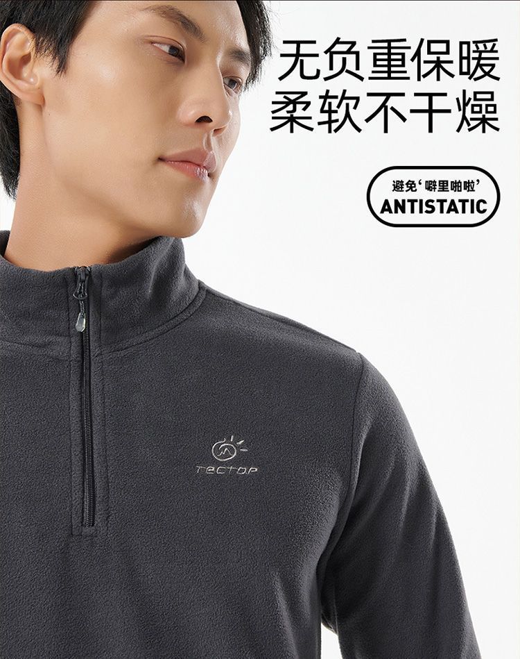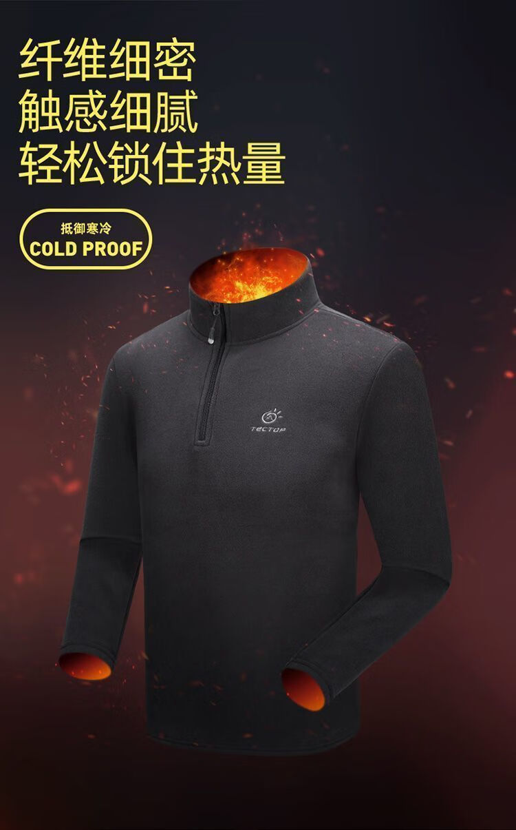 探拓(TECTOP)加绒抓绒衣冬季保暖户外登山徒步运动内搭衣摇粒绒打底衫立领 墨染色-男款【加绒抓绒衣保暖 XL