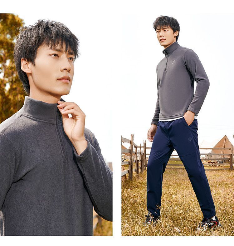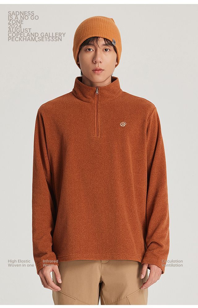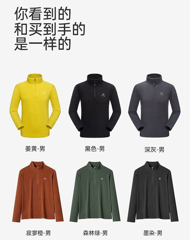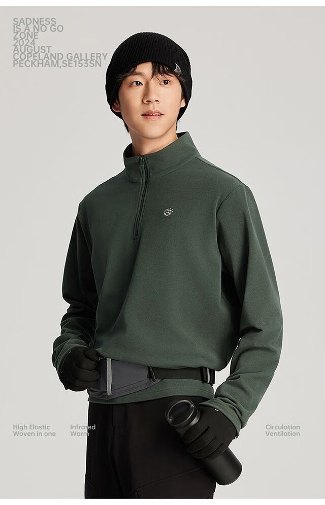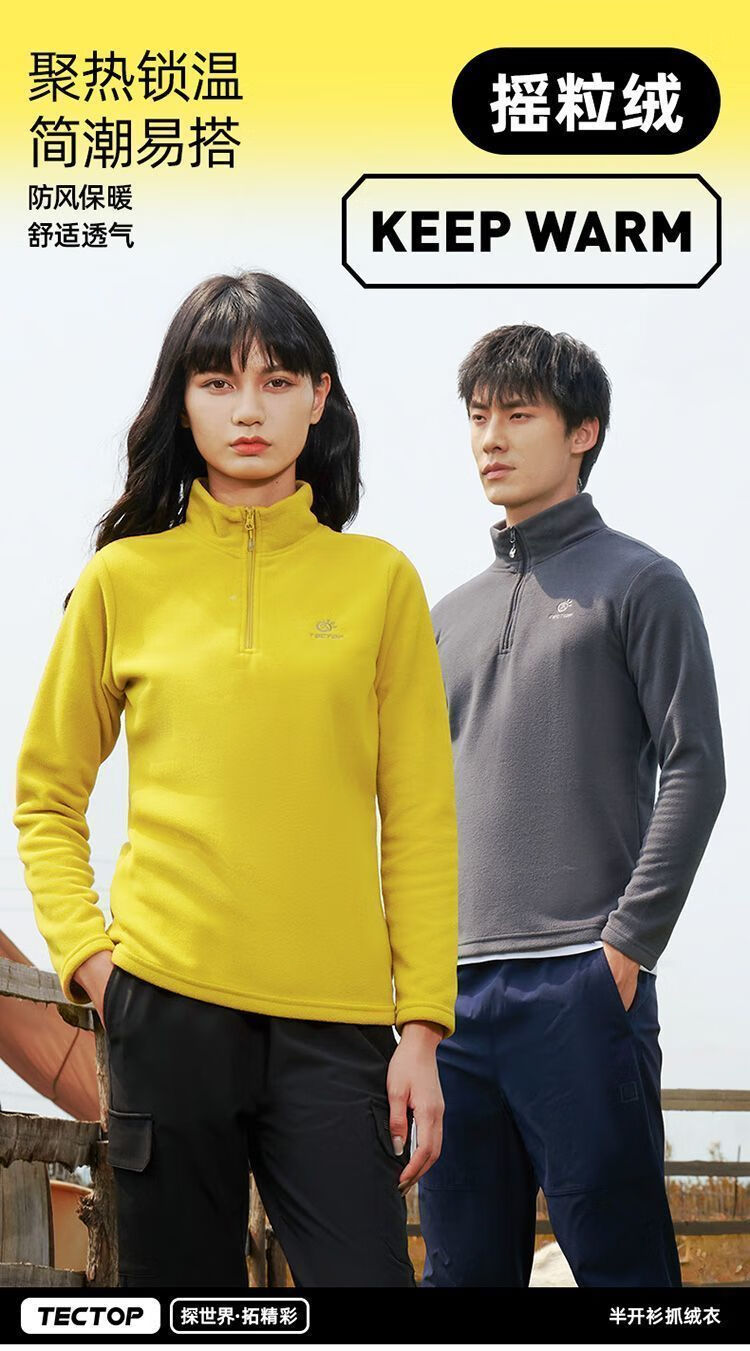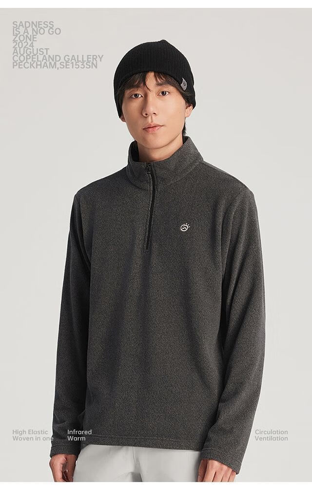 探拓(TECTOP)加绒抓绒衣冬季保暖户外登山徒步运动内搭衣摇粒绒打底衫立领 墨染色-男款【加绒抓绒衣保暖 XL