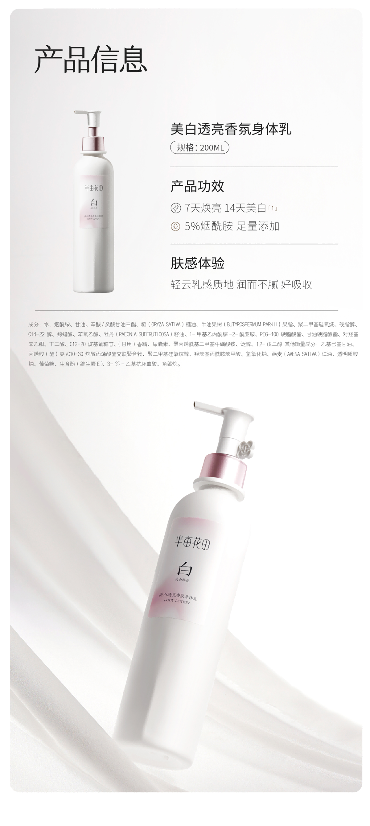 半亩花田热巴同款养白瓶烟酰胺美白身体乳美白焕亮保湿润肤乳 200ml+30ml