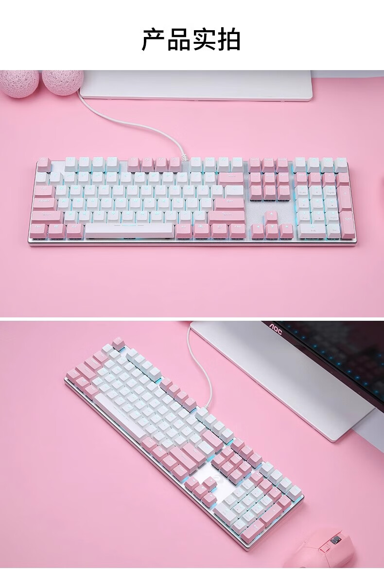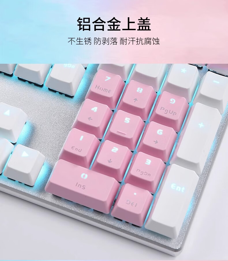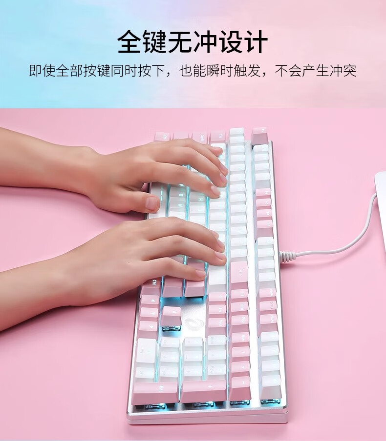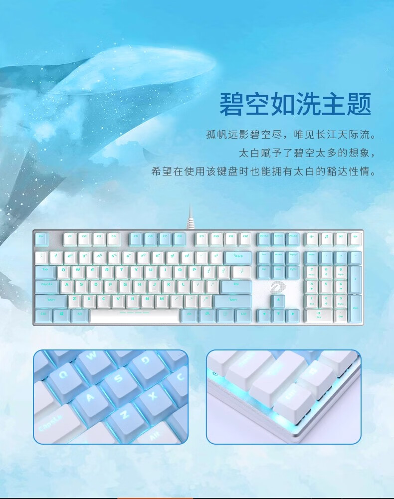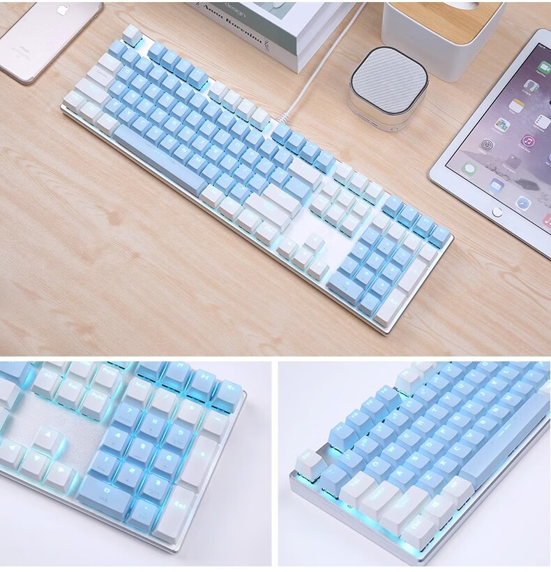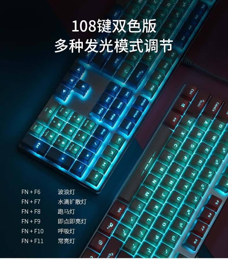 达尔优EK815机械键盘合金青红茶黑轴电竞游戏办公键盘学生宿舍网吧专用打瓦吃鸡三角洲麻将音键盘 108键-白蓝 黑轴
