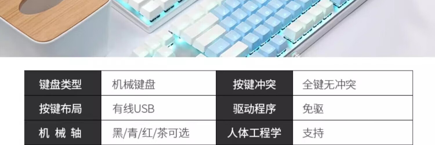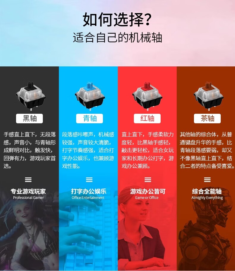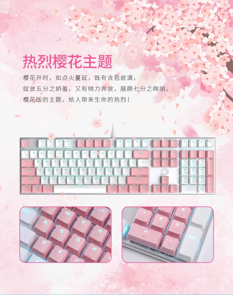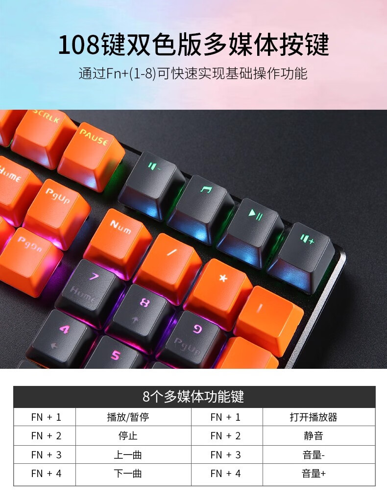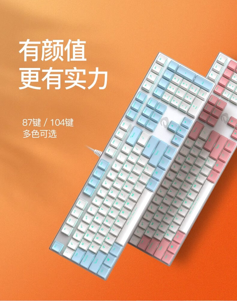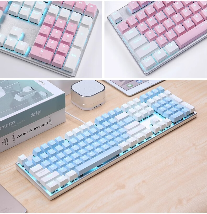 达尔优EK815机械键盘合金青红茶黑轴电竞游戏办公键盘学生宿舍网吧专用打瓦吃鸡三角洲麻将音键盘 108键-白蓝 黑轴