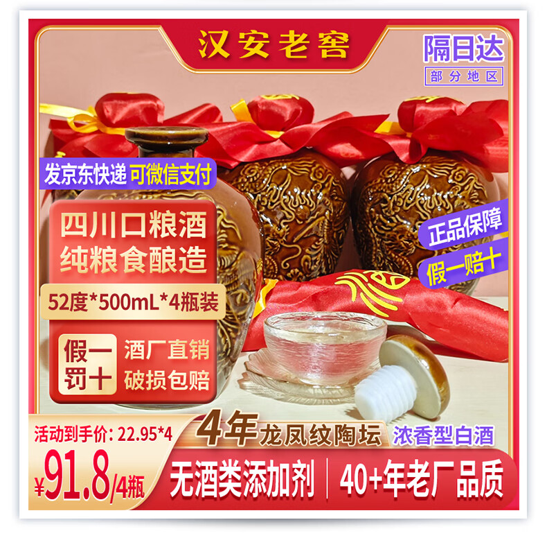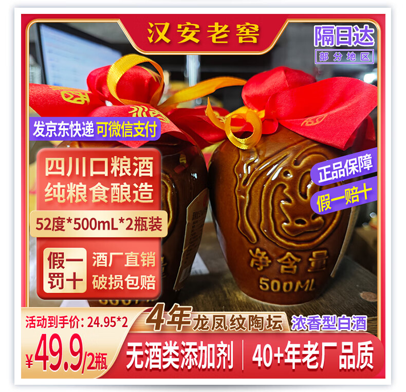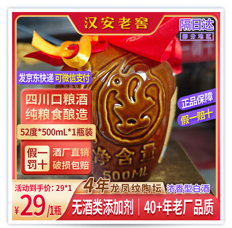 汉安老窖四川宜宾52度浓香型坛装白酒500ml纯粮食原浆酒窖藏封坛老酒 52度 500mL 1坛 【五粮浓香型】
