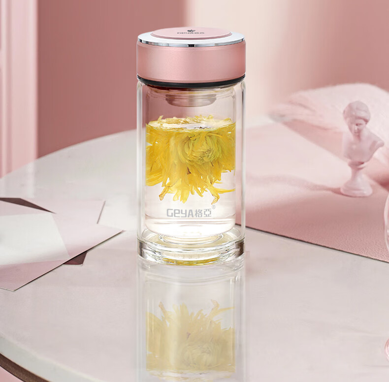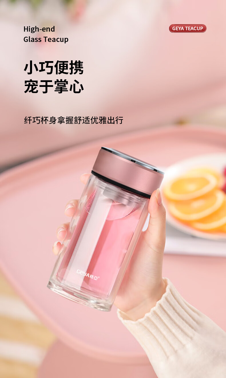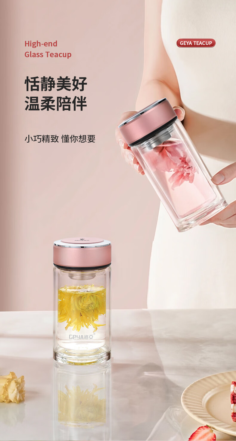 格亚(GEYA)高档双层玻璃杯茶杯女清新花茶女神水杯泡茶杯子小巧家用礼盒装 玫瑰金色【礼盒装】 260ml 260ml