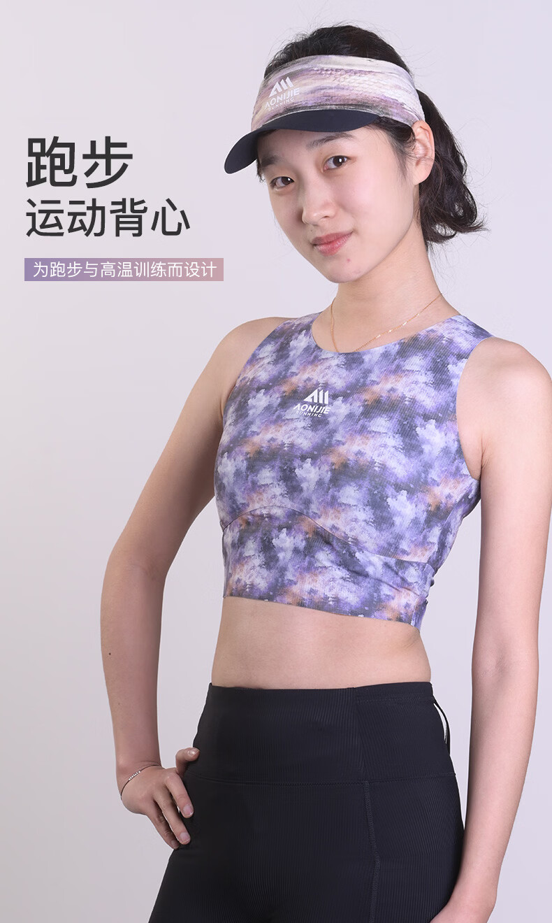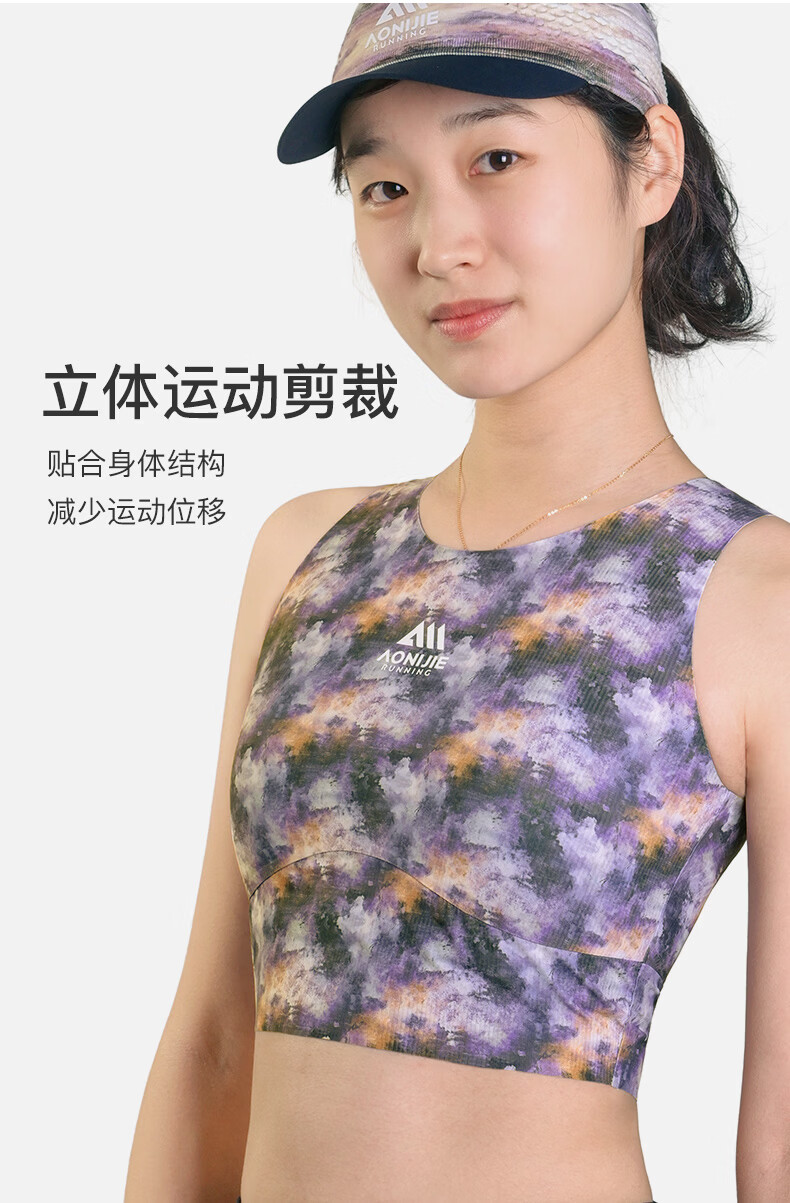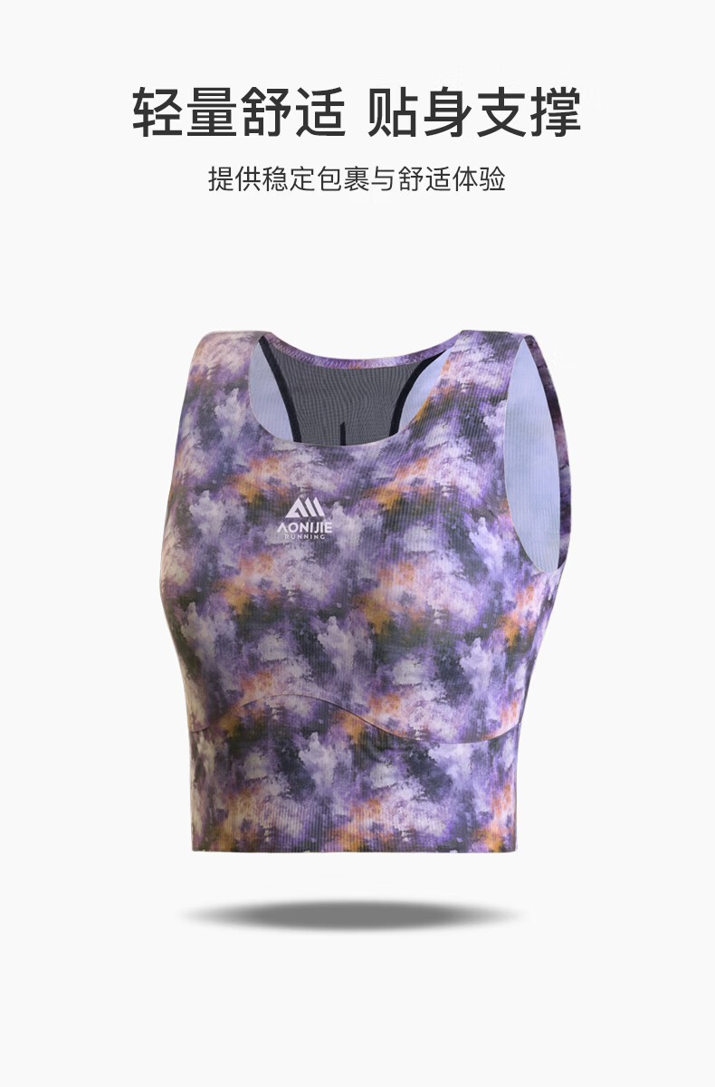 奥尼捷运动背心女夏季专业马拉松跑步健身上衣吸湿排汗速干训练服 印花紫 M