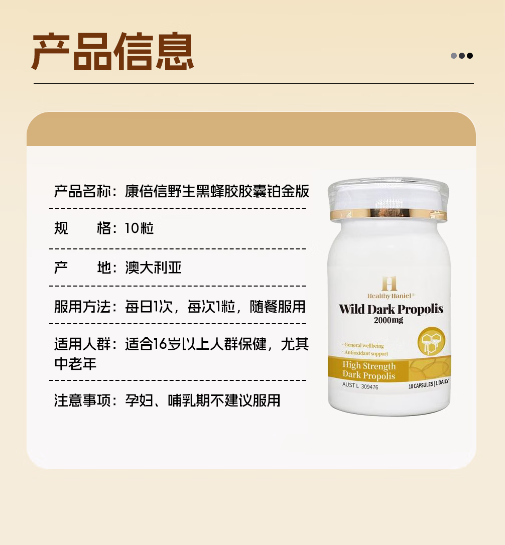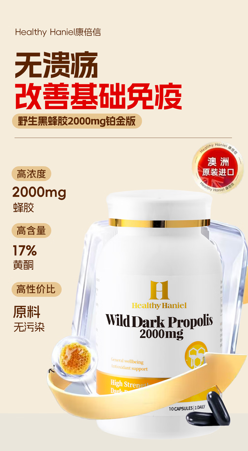 Healthy Haniel澳洲进口2000mg黑蜂胶17%黄酮免疫力抵抗力血糖血脂三高口腔溃疡