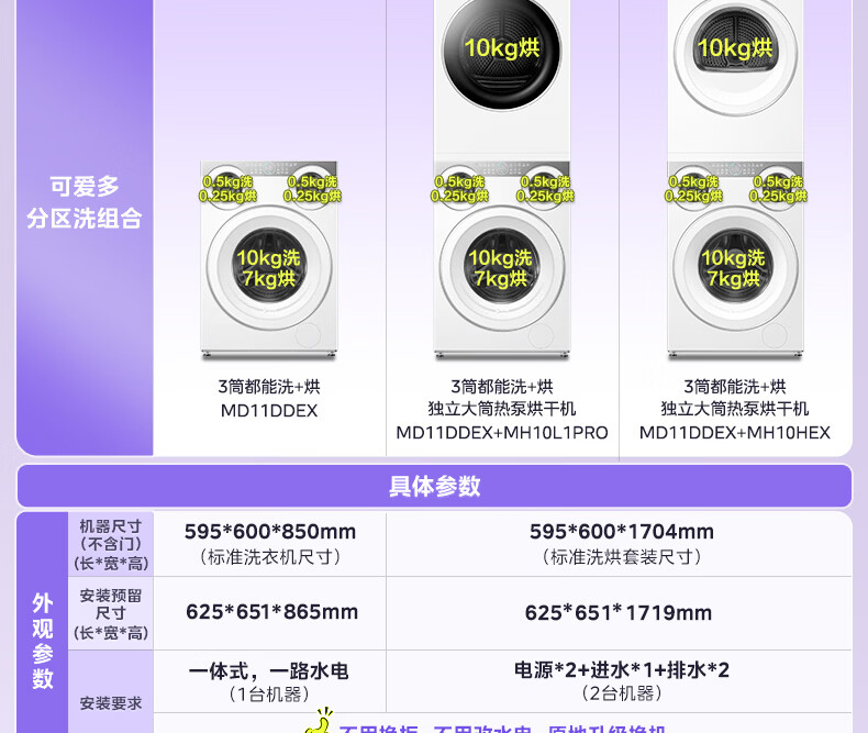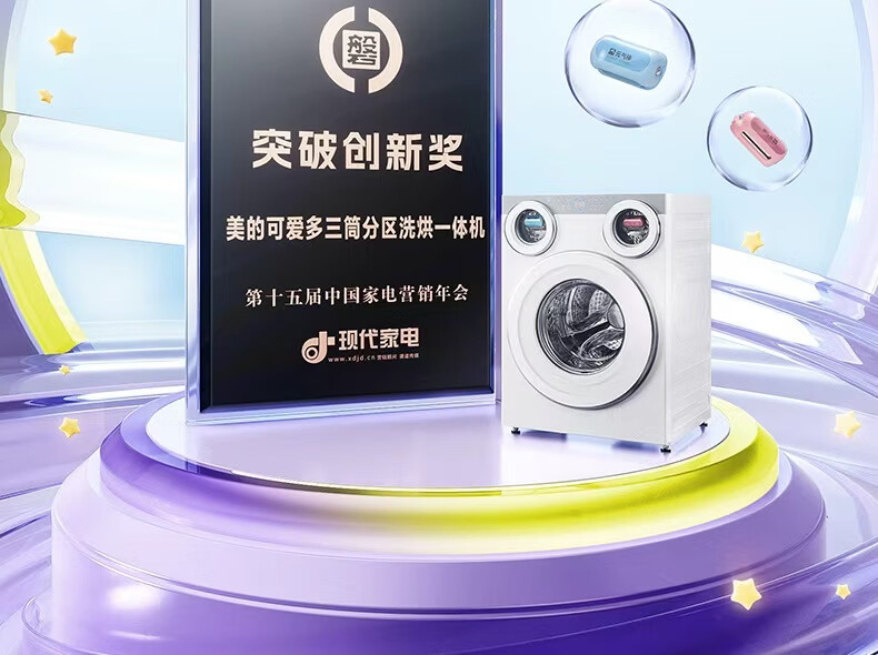 美的(Midea)三筒洗衣机洗烘一体全自动分区洗除菌净血渍三桶智能投放850mm标准高度国家补贴20% 【可爱多MD11DDEX】