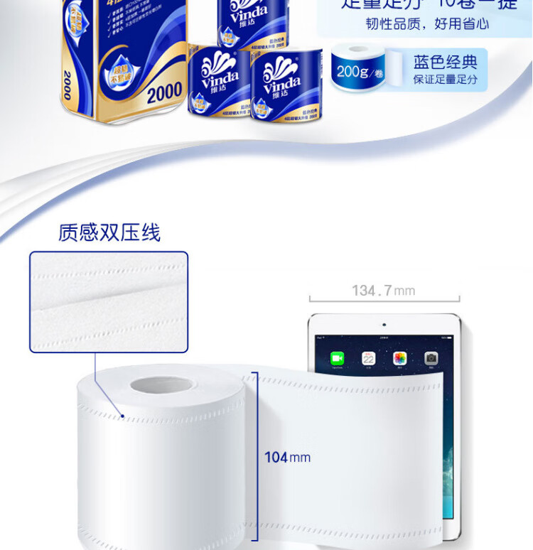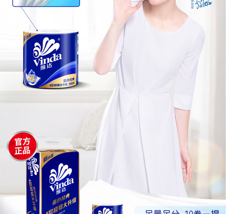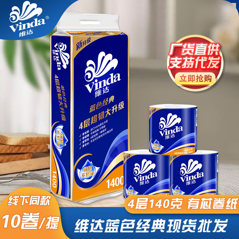 维达【优选】有芯卷纸蓝色经典V4073一提10卷2000g整提家用 4层10卷200g/卷