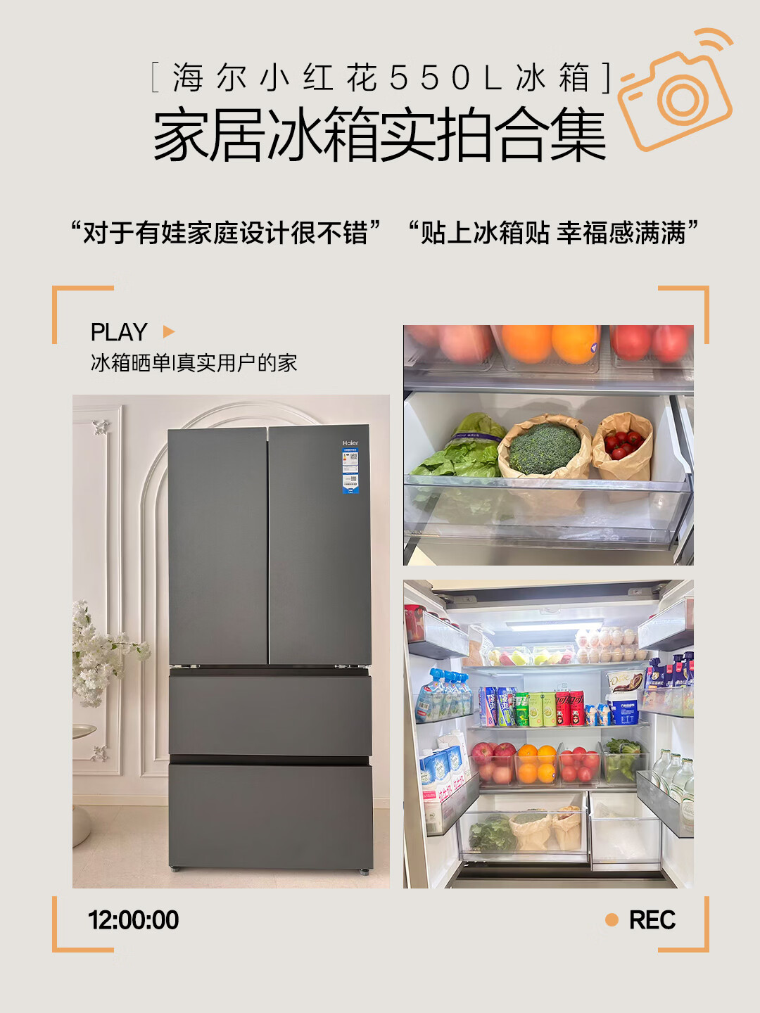 海尔(Haier)「小红花系列」550L法式多门母婴冰箱双系统双净化0串味除菌变温BCD-550WGHFDC9GYU1国家补贴
